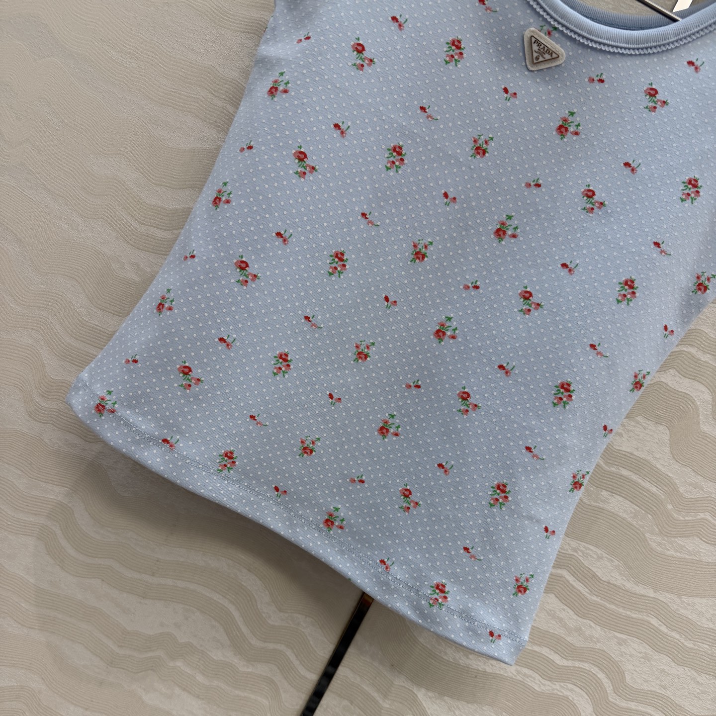 这款衣服是AAAAA 1:1 质量 (非常棒). 使用了和原版一模一样的材料. 商标部分也保持了和普拉达/Prada一样. 图片拍摄是实物衣服拍摄, 您所收到的实物保证和我们图片一模一样.