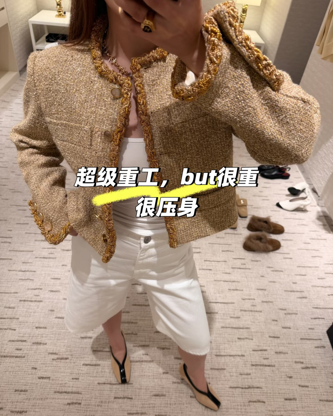 这款衣服是AAAAA 1:1 质量 (非常棒). 使用了和原版一模一样的材料. 商标部分也保持了和香奈儿/Chanel一样. 图片拍摄是实物衣服拍摄, 您所收到的实物保证和我们图片一模一样.