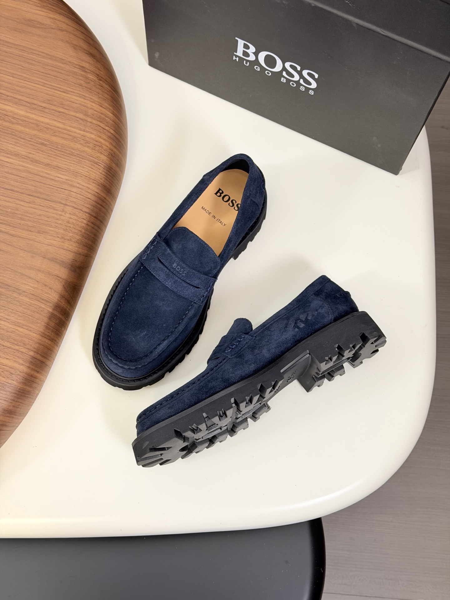 这款鞋子是AAAAA 1:1 质量 (非常棒). 使用了和原版一模一样的材料. 商标部分也保持了和BOSS一样. 图片拍摄是实物鞋子拍摄, 您所收到的实物保证和我们图片一模一样.