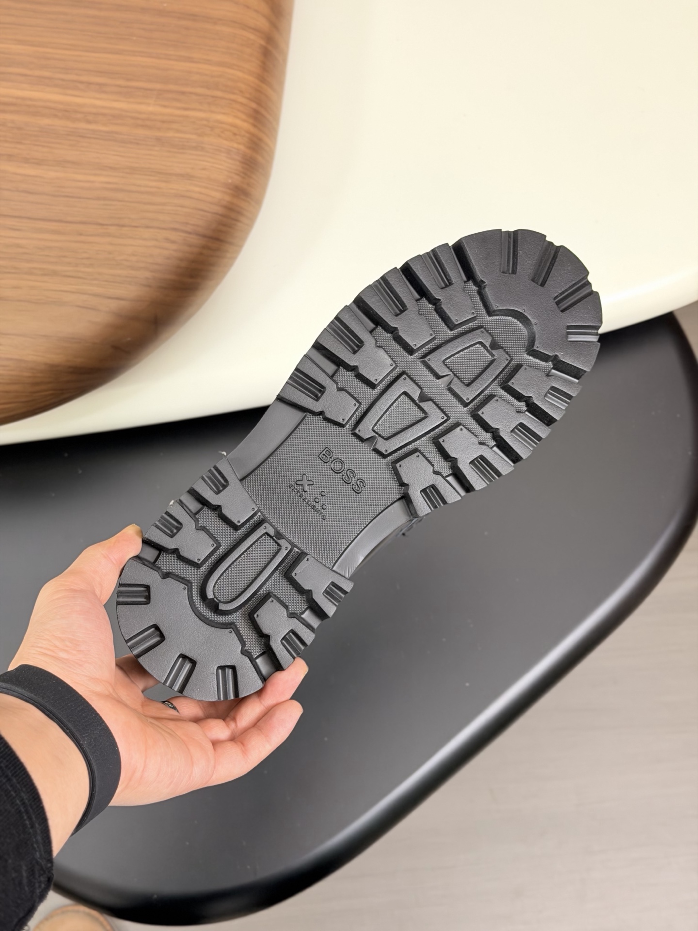这款鞋子是AAAAA 1:1 质量 (非常棒). 使用了和原版一模一样的材料. 商标部分也保持了和BOSS一样. 图片拍摄是实物鞋子拍摄, 您所收到的实物保证和我们图片一模一样.
