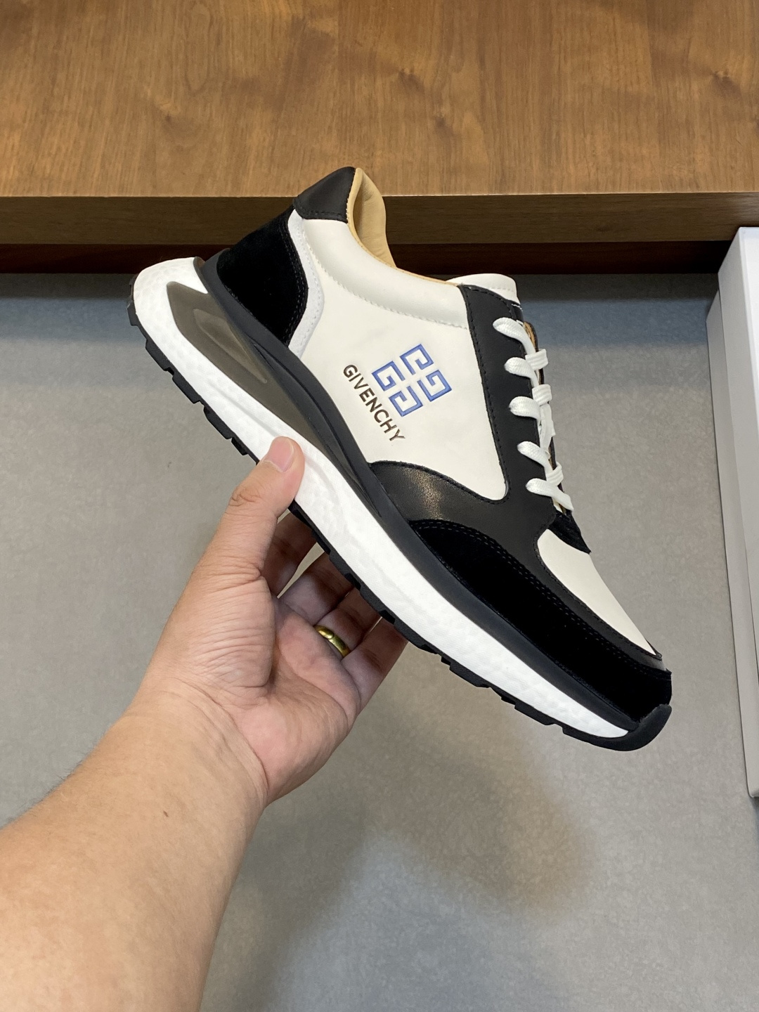 这款鞋子是AAAAA 1:1 质量 (非常棒). 使用了和原版一模一样的材料. 商标部分也保持了和纪梵希/Givenchy一样. 图片拍摄是实物鞋子拍摄, 您所收到的实物保证和我们图片一模一样.