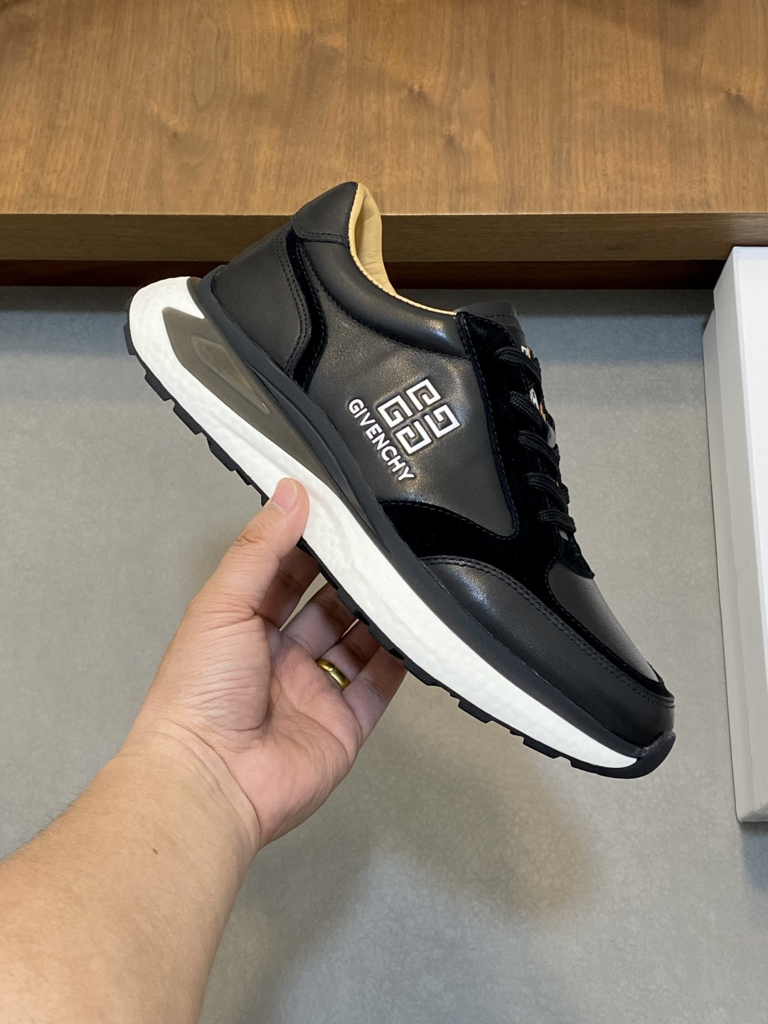 这款鞋子是AAAAA 1:1 质量 (非常棒). 使用了和原版一模一样的材料. 商标部分也保持了和纪梵希/Givenchy一样. 图片拍摄是实物鞋子拍摄, 您所收到的实物保证和我们图片一模一样.