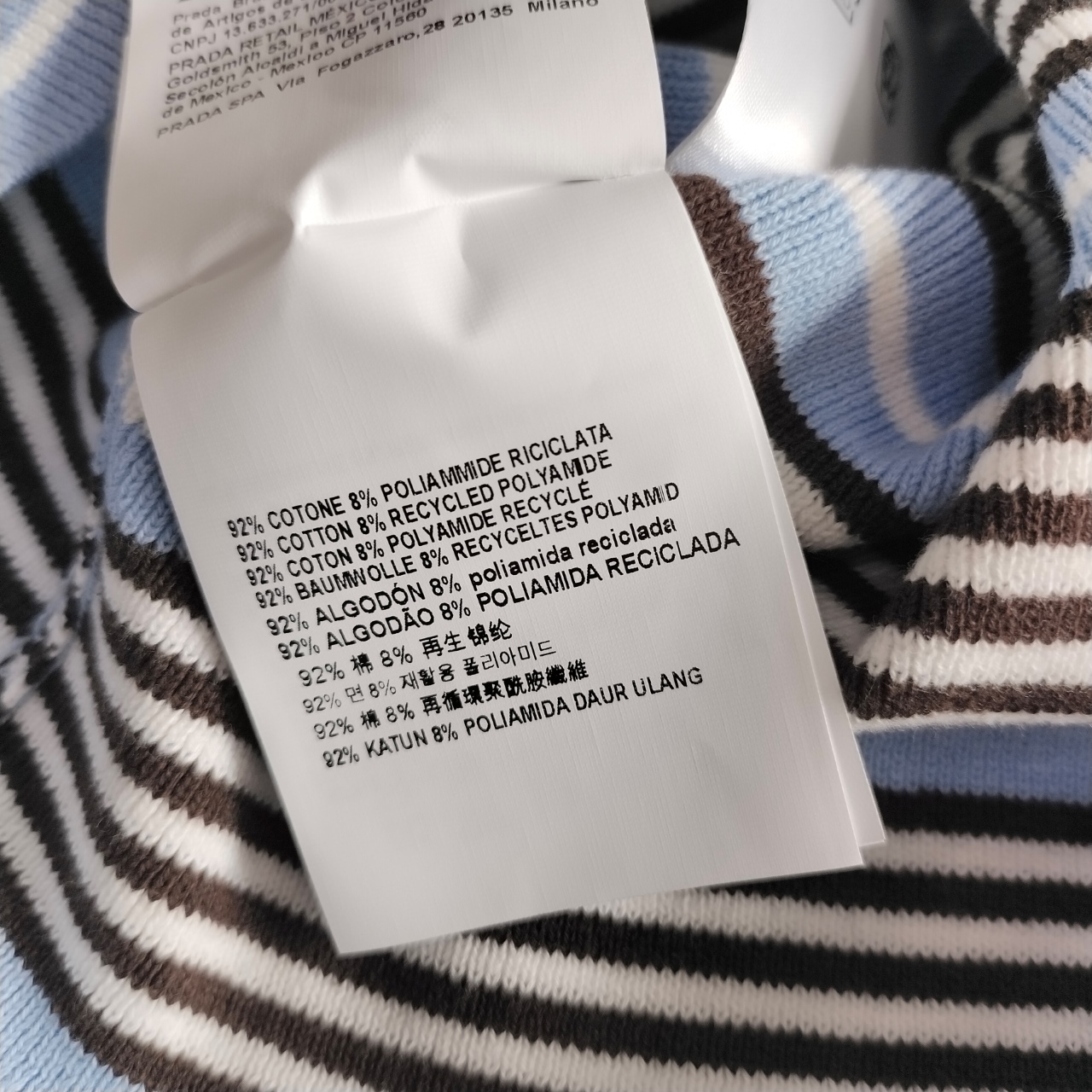 这款衣服是AAAAA 1:1 质量 (非常棒). 使用了和原版一模一样的材料. 商标部分也保持了和普拉达/Prada一样. 图片拍摄是实物衣服拍摄, 您所收到的实物保证和我们图片一模一样.