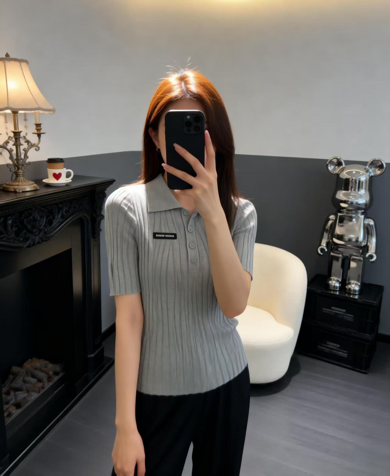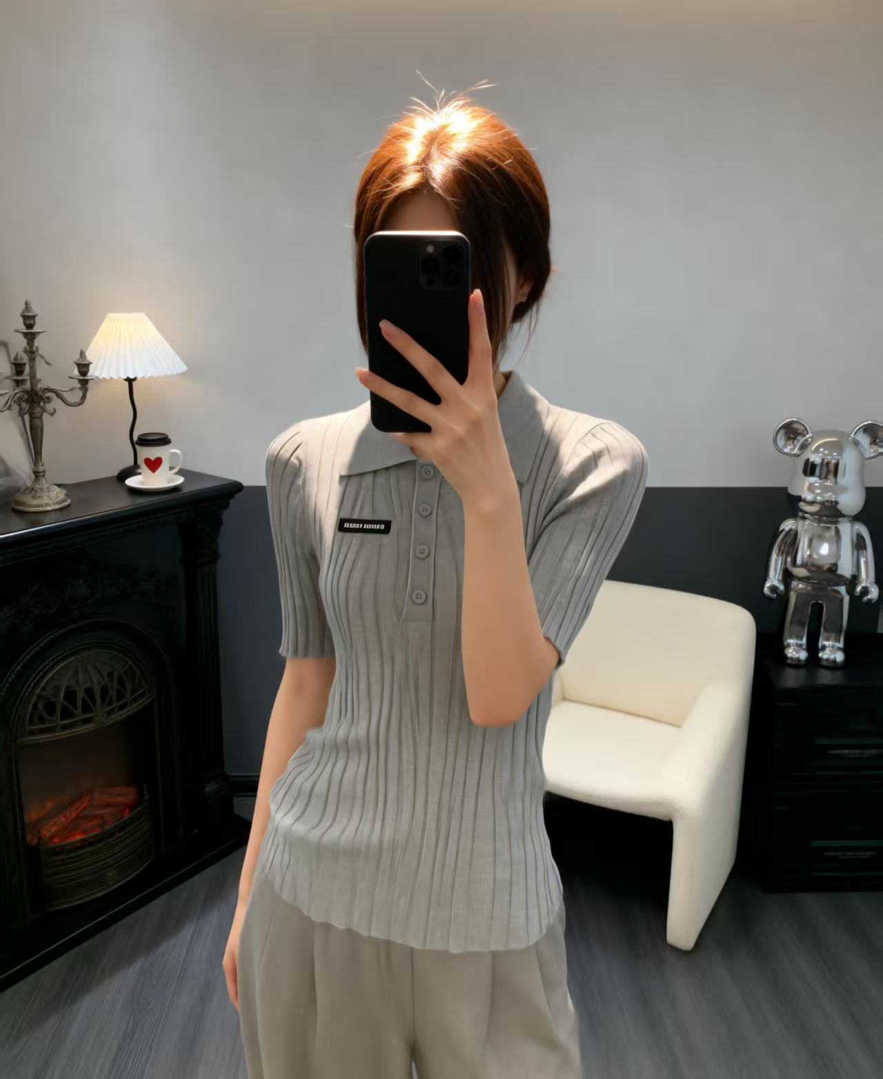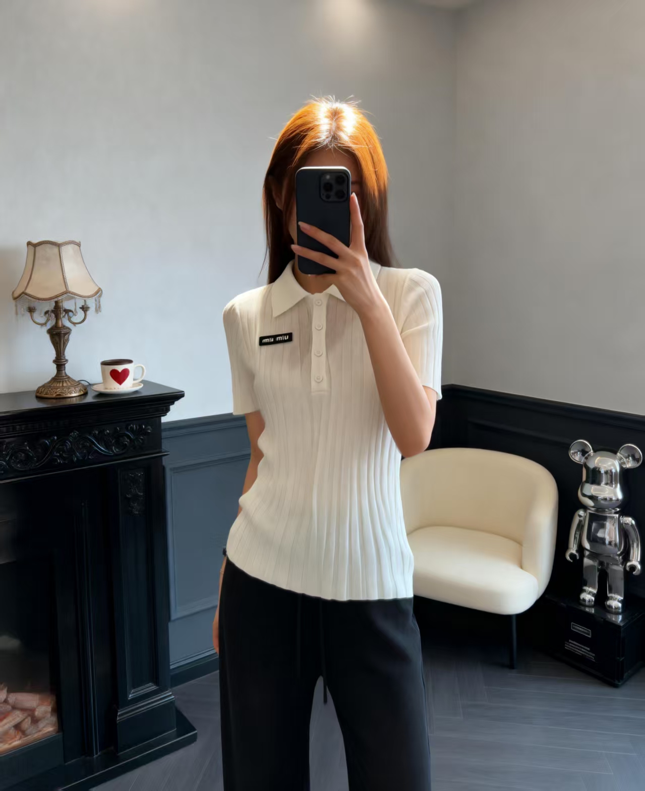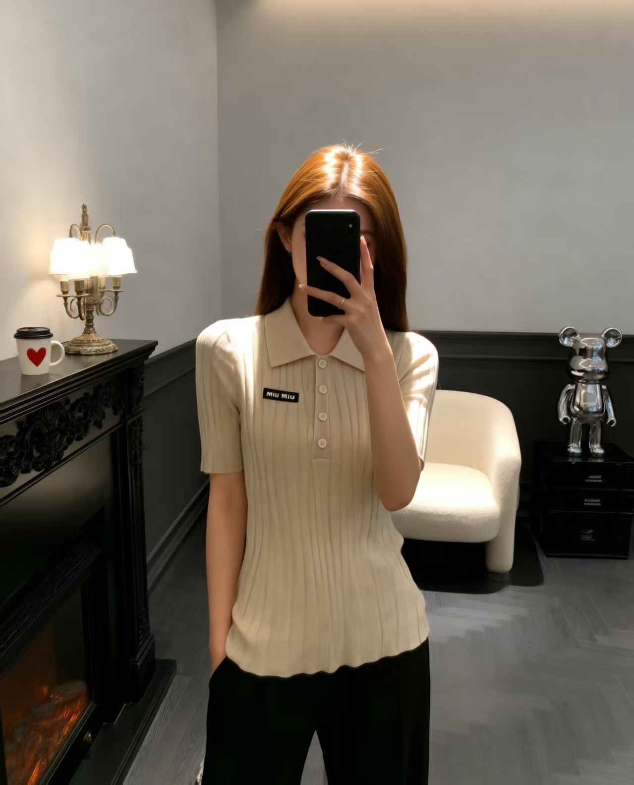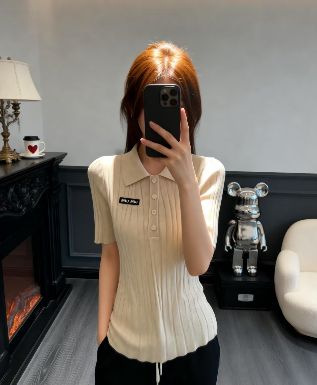 这款衣服是AAAAA 1:1 质量 (非常棒). 使用了和原版一模一样的材料. 商标部分也保持了和缪缪/Miu Miu一样. 图片拍摄是实物衣服拍摄, 您所收到的实物保证和我们图片一模一样.