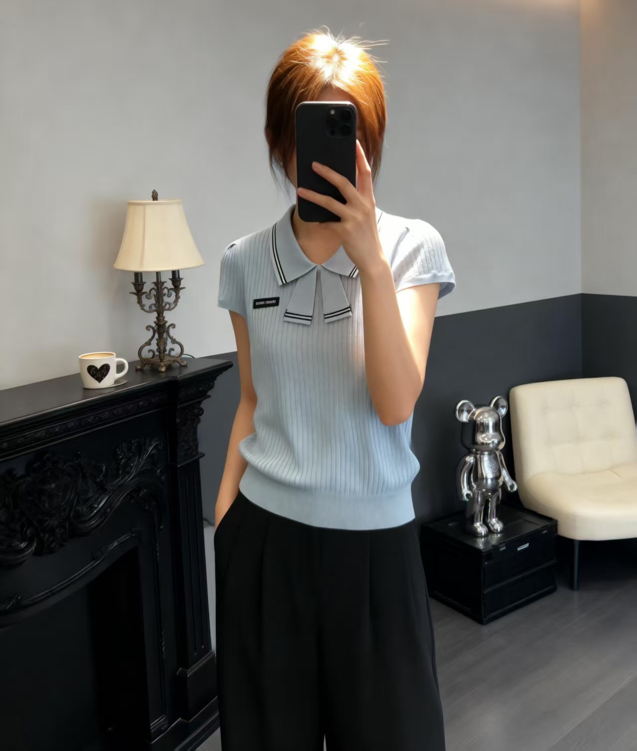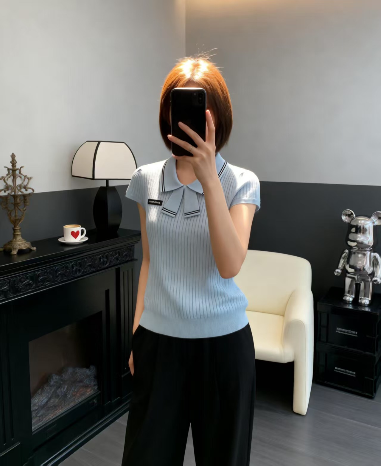 这款衣服是AAAAA 1:1 质量 (非常棒). 使用了和原版一模一样的材料. 商标部分也保持了和缪缪/Miu Miu一样. 图片拍摄是实物衣服拍摄, 您所收到的实物保证和我们图片一模一样.