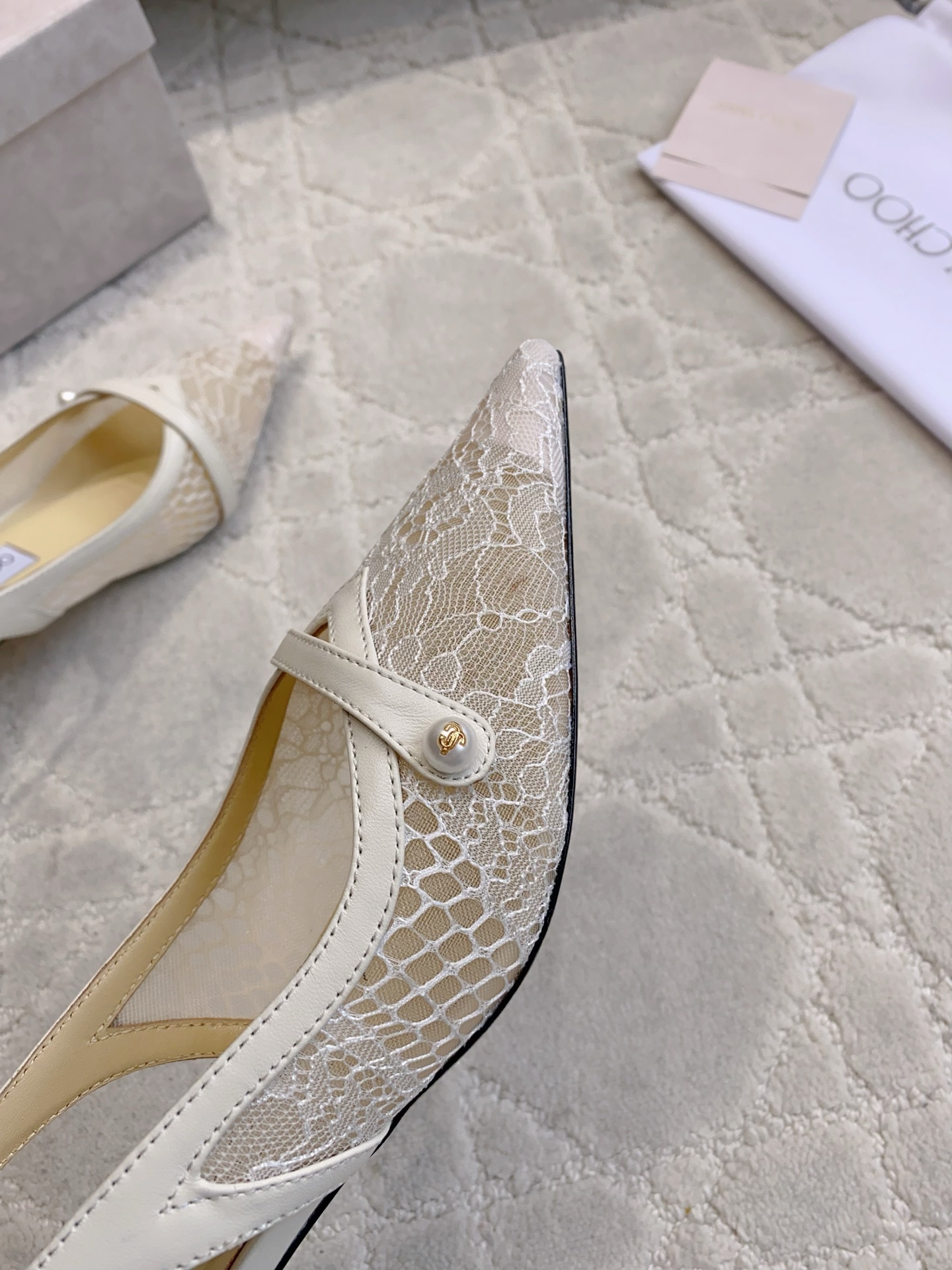 这款鞋子是AAAAA 1:1 质量 (非常棒). 使用了和原版一模一样的材料. 商标部分也保持了和吉米乔/JIMMY CHOO一样. 图片拍摄是实物鞋子拍摄, 您所收到的实物保证和我们图片一模一样.