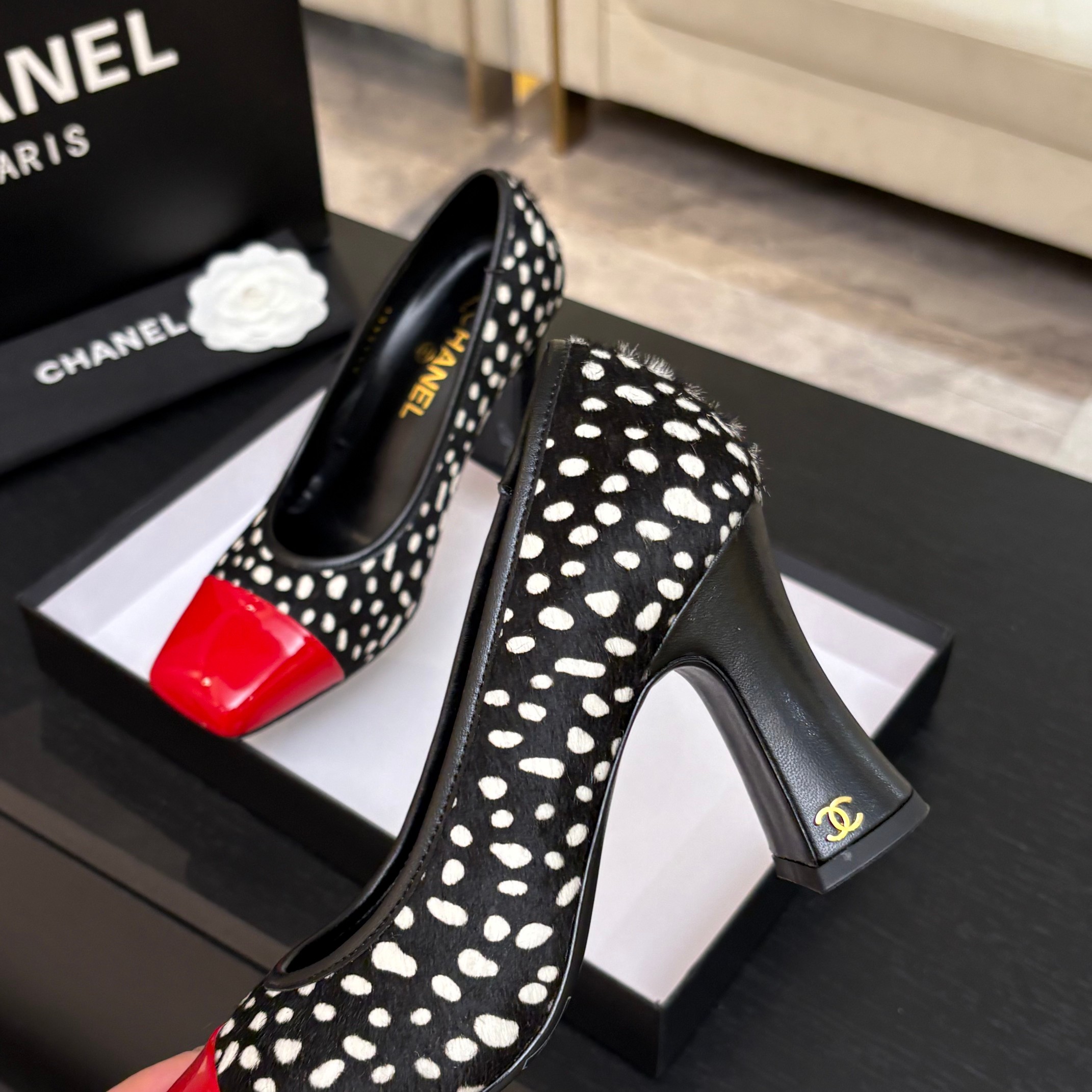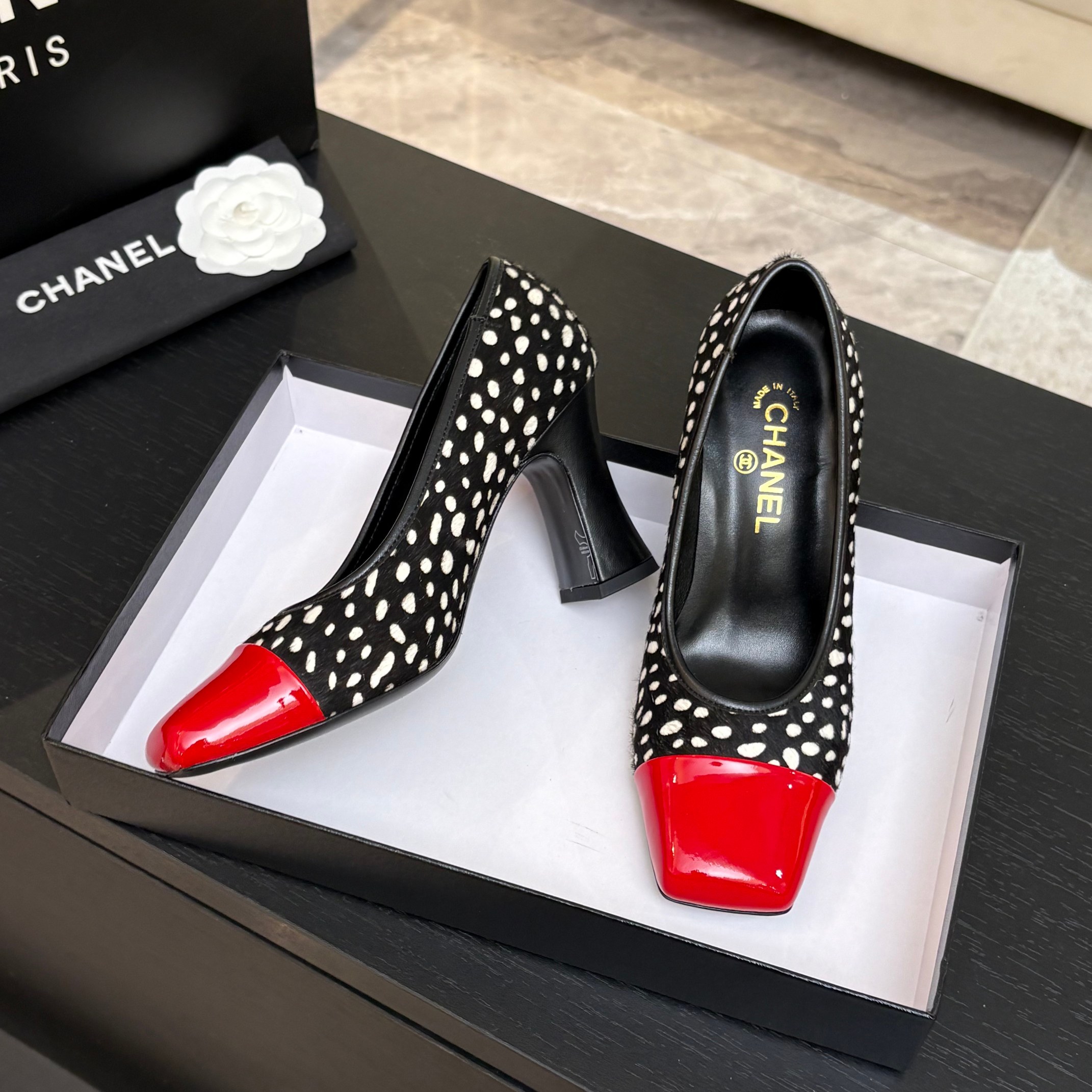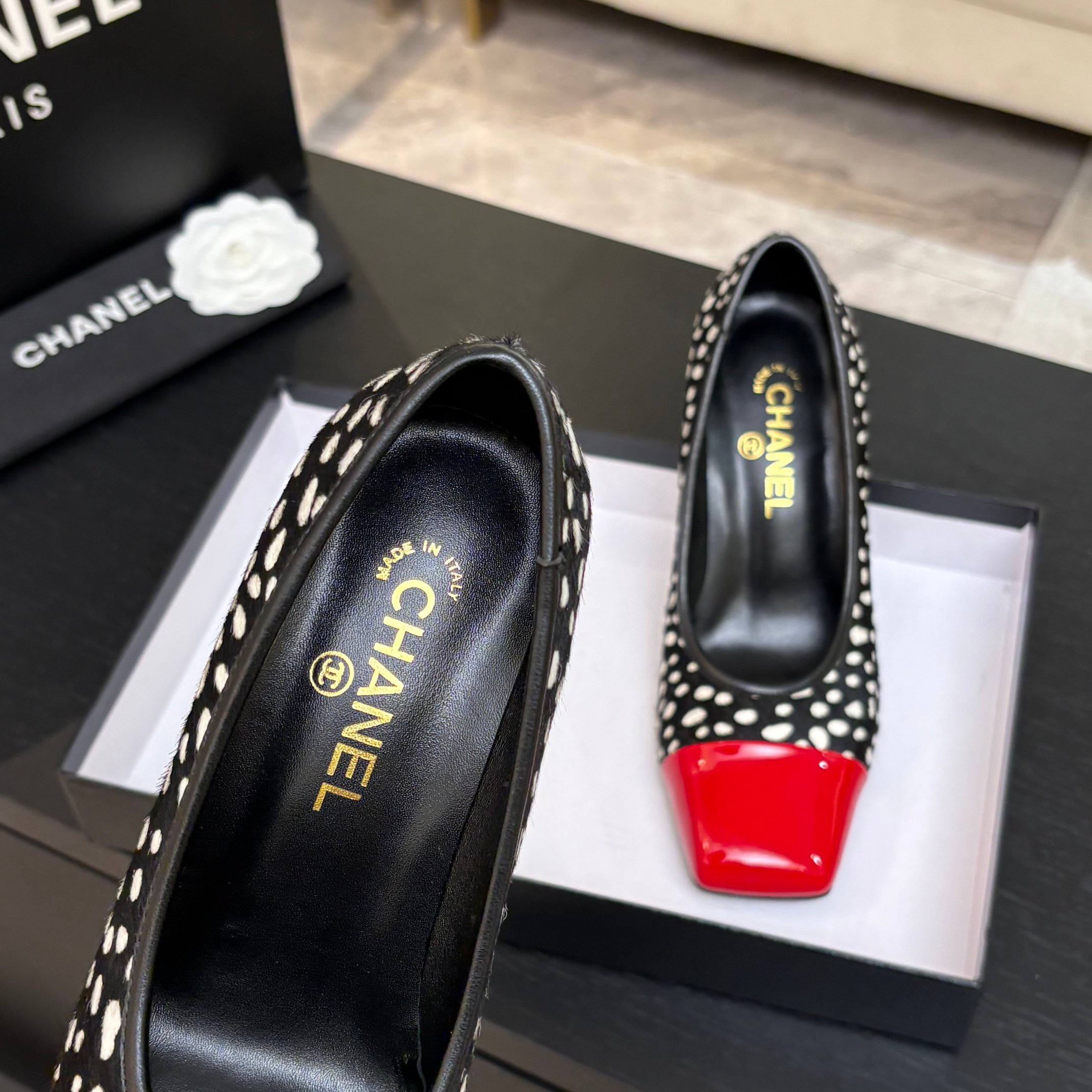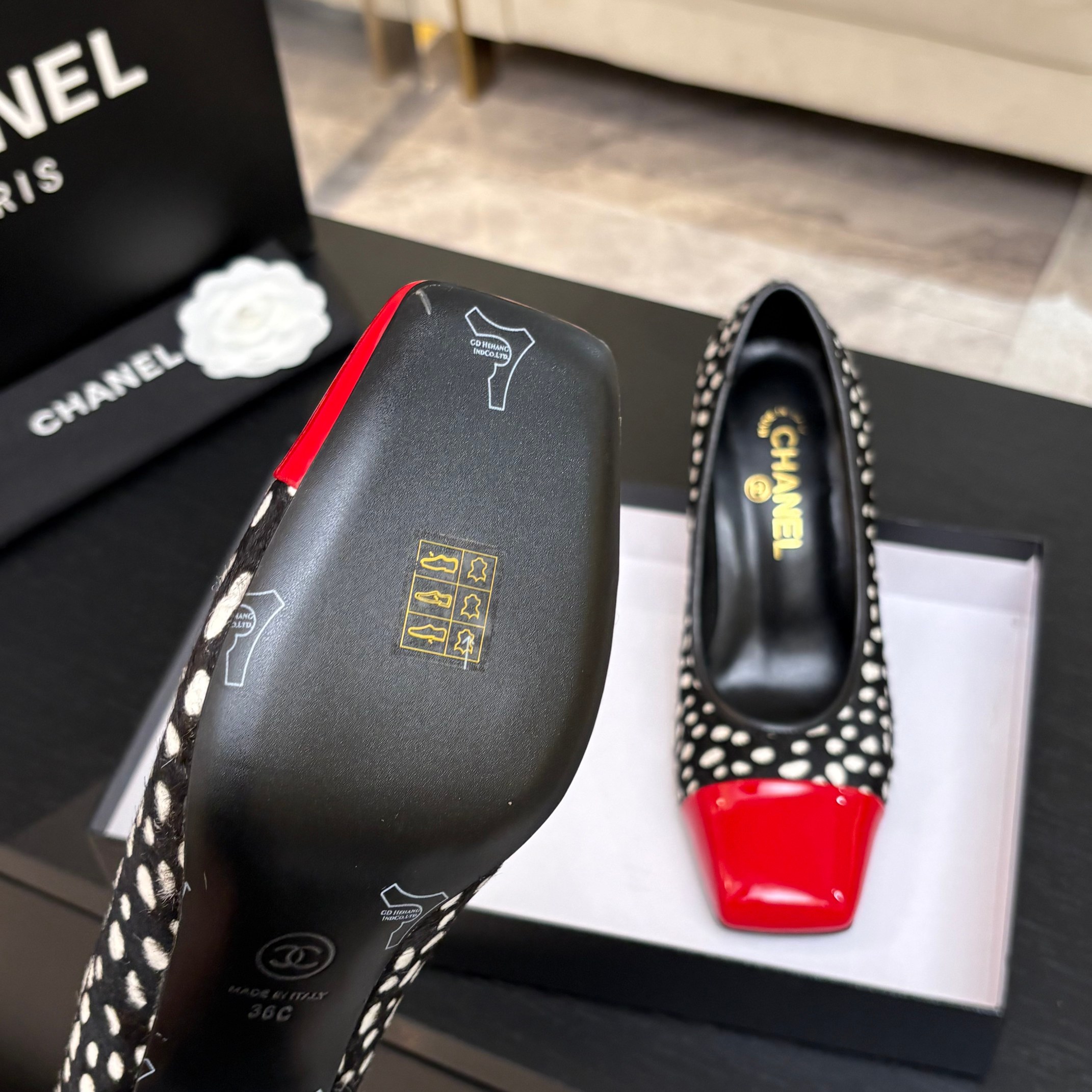 这款鞋子是AAAAA 1:1 质量 (非常棒). 使用了和原版一模一样的材料. 商标部分也保持了和香奈儿/Chanel一样. 图片拍摄是实物鞋子拍摄, 您所收到的实物保证和我们图片一模一样.