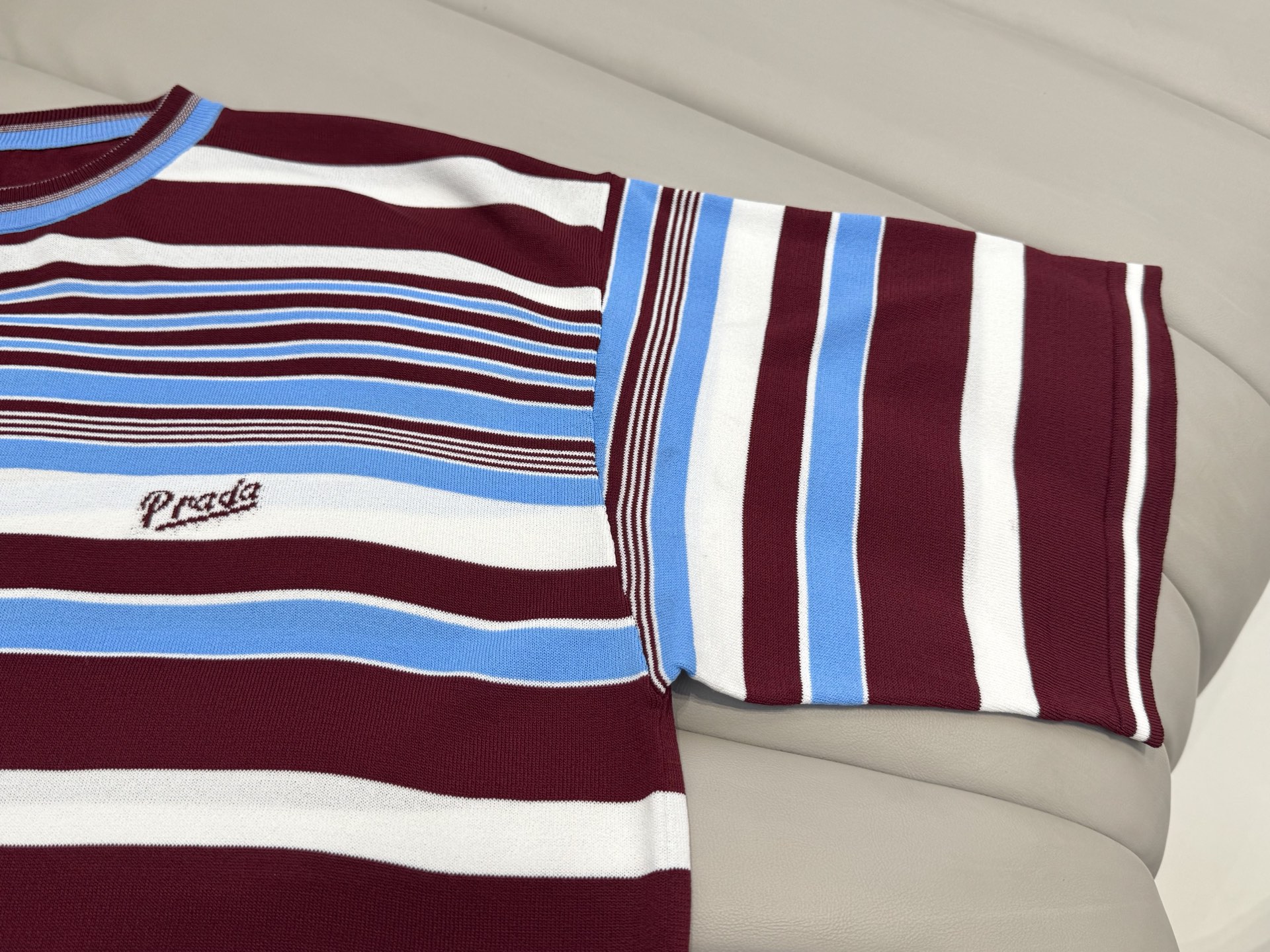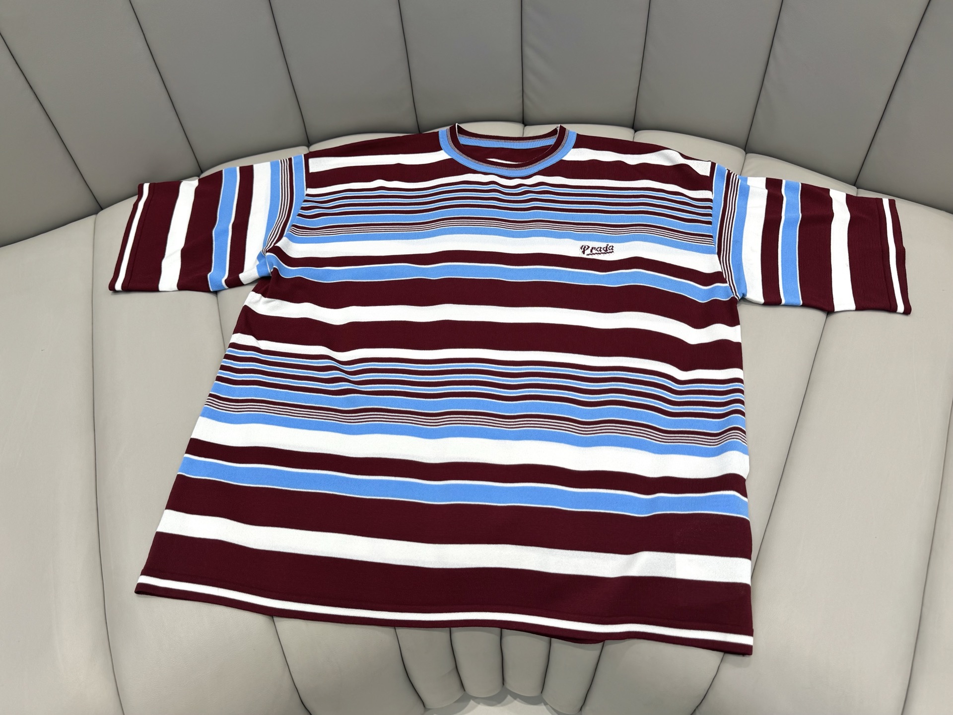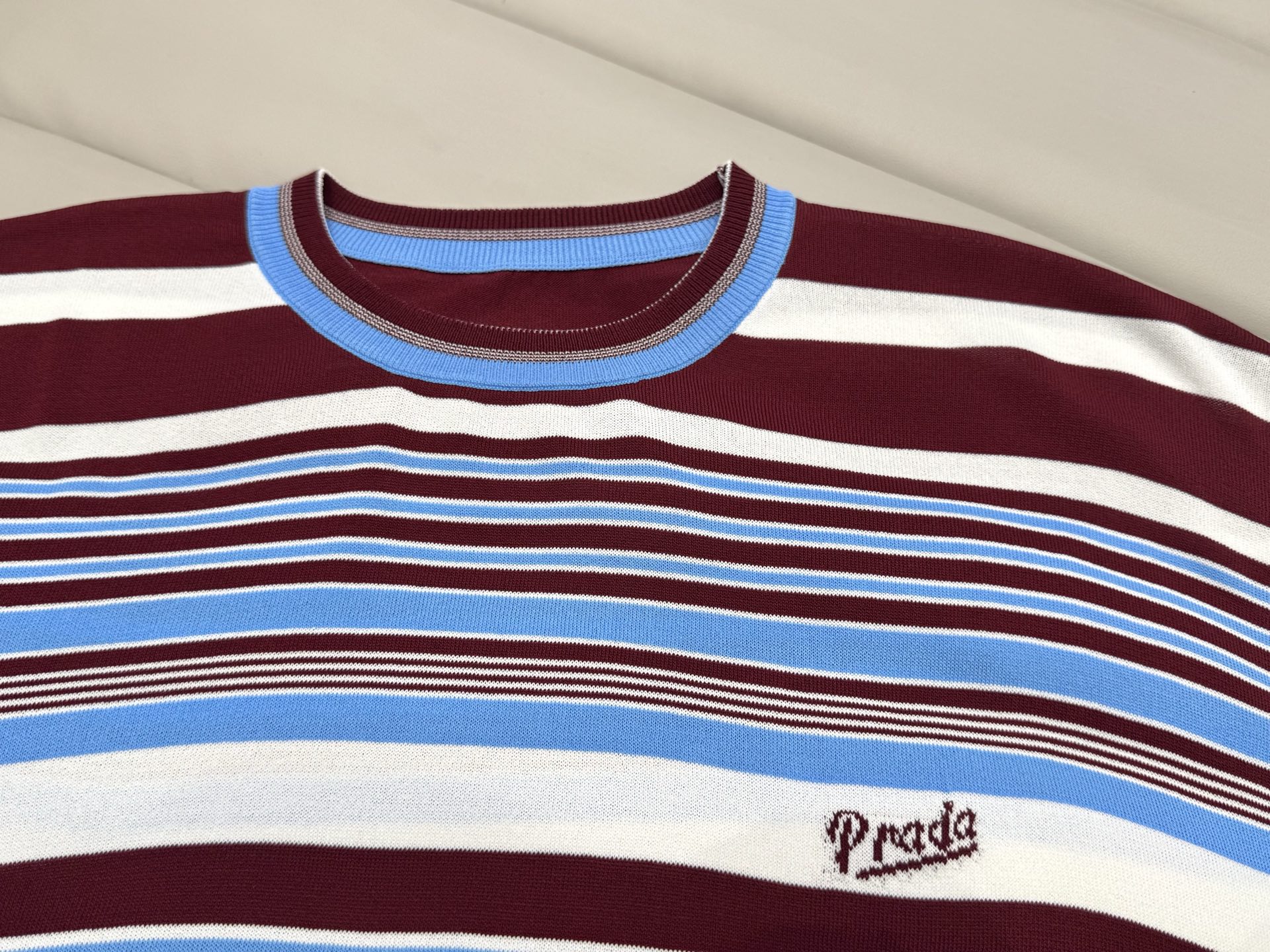 这款衣服是AAAAA 1:1 质量 (非常棒). 使用了和原版一模一样的材料. 商标部分也保持了和普拉达/Prada一样. 图片拍摄是实物衣服拍摄, 您所收到的实物保证和我们图片一模一样.