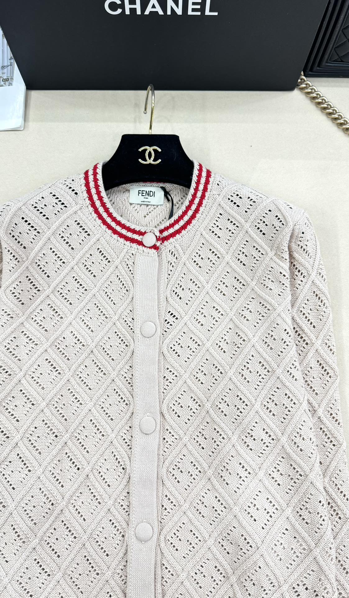 这款衣服是AAAAA 1:1 质量 (非常棒). 使用了和原版一模一样的材料. 商标部分也保持了和芬迪/Fendi一样. 图片拍摄是实物衣服拍摄, 您所收到的实物保证和我们图片一模一样.
