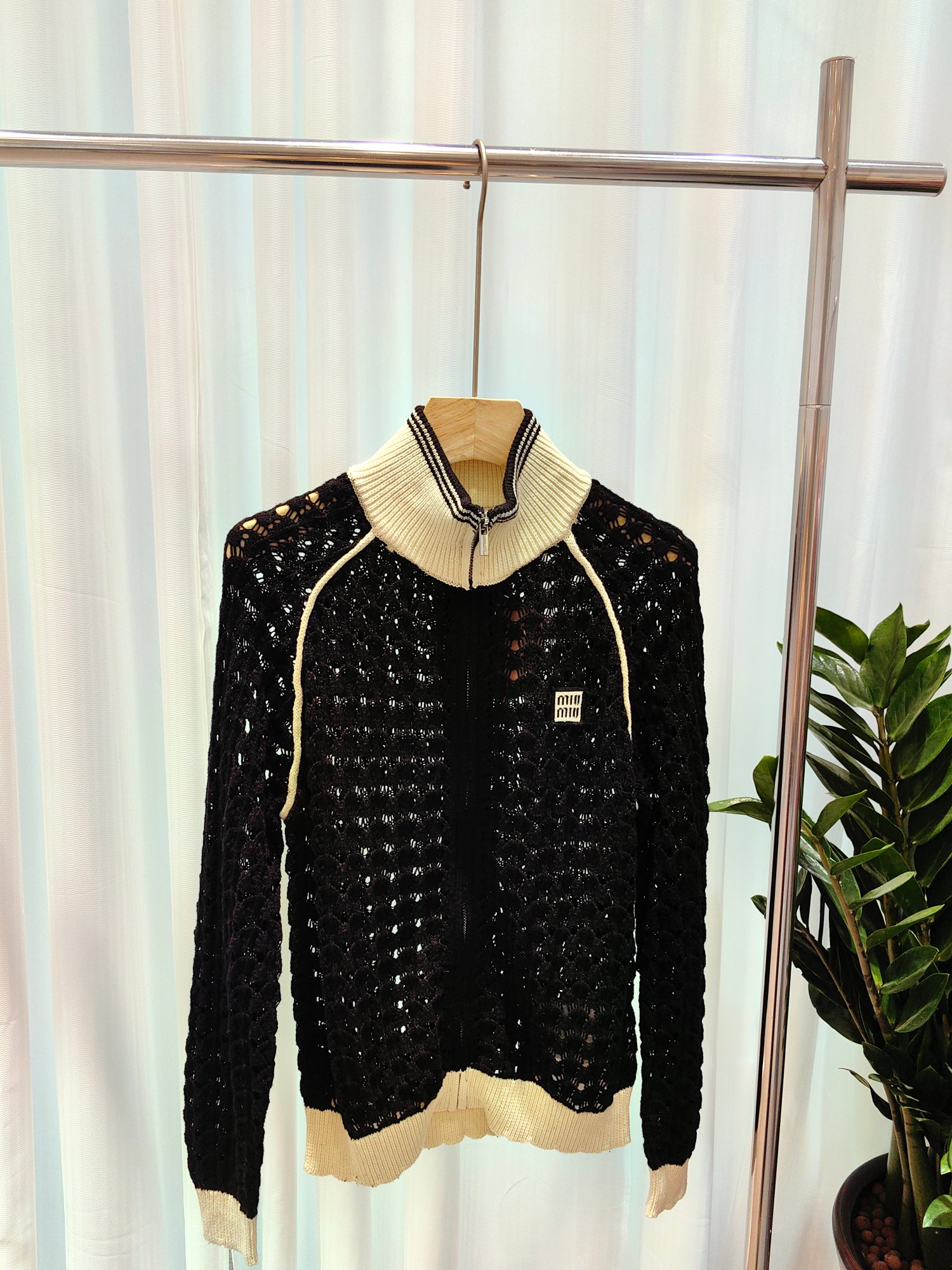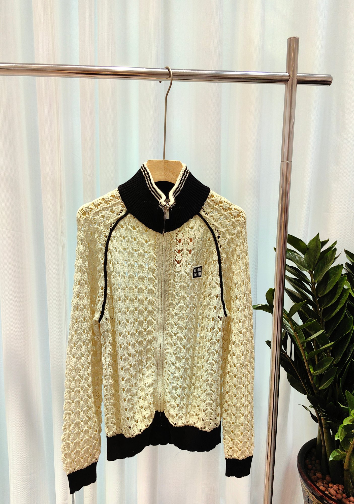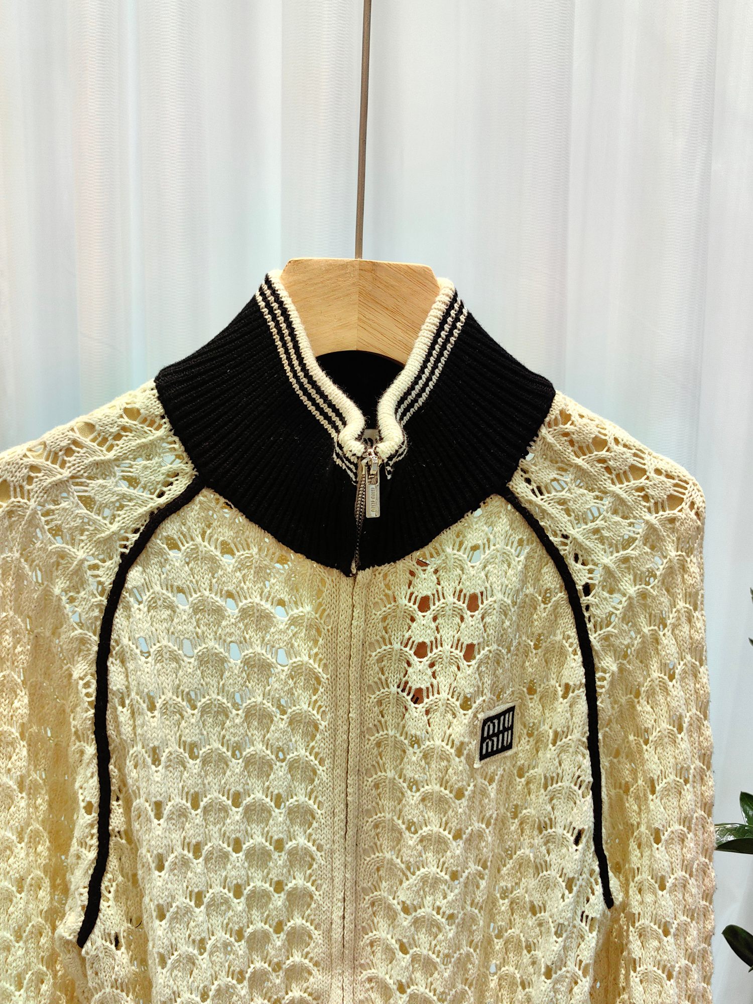 这款衣服是AAAAA 1:1 质量 (非常棒). 使用了和原版一模一样的材料. 商标部分也保持了和缪缪/Miu Miu一样. 图片拍摄是实物衣服拍摄, 您所收到的实物保证和我们图片一模一样.