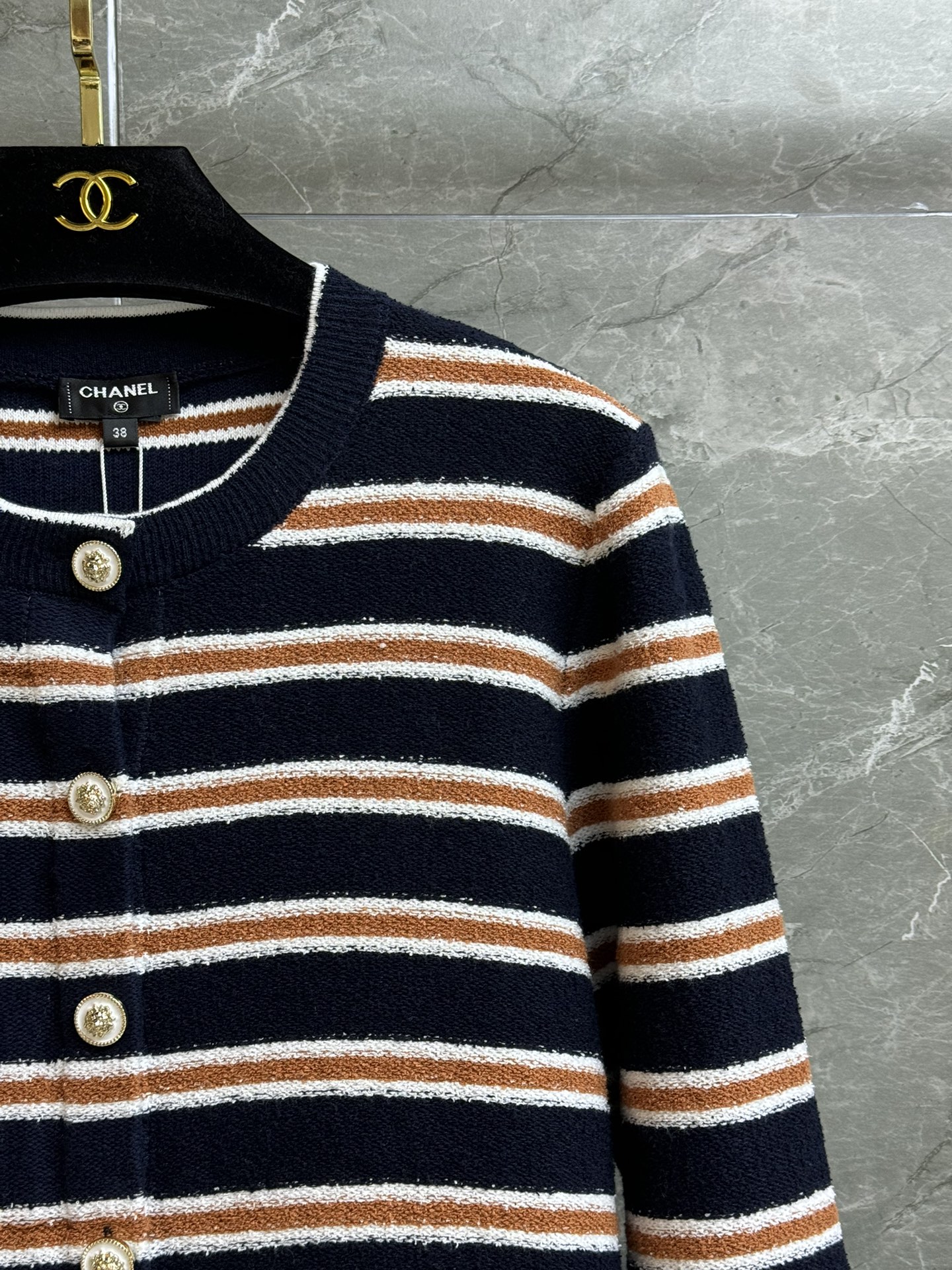 这款衣服是AAAAA 1:1 质量 (非常棒). 使用了和原版一模一样的材料. 商标部分也保持了和香奈儿/Chanel一样. 图片拍摄是实物衣服拍摄, 您所收到的实物保证和我们图片一模一样.