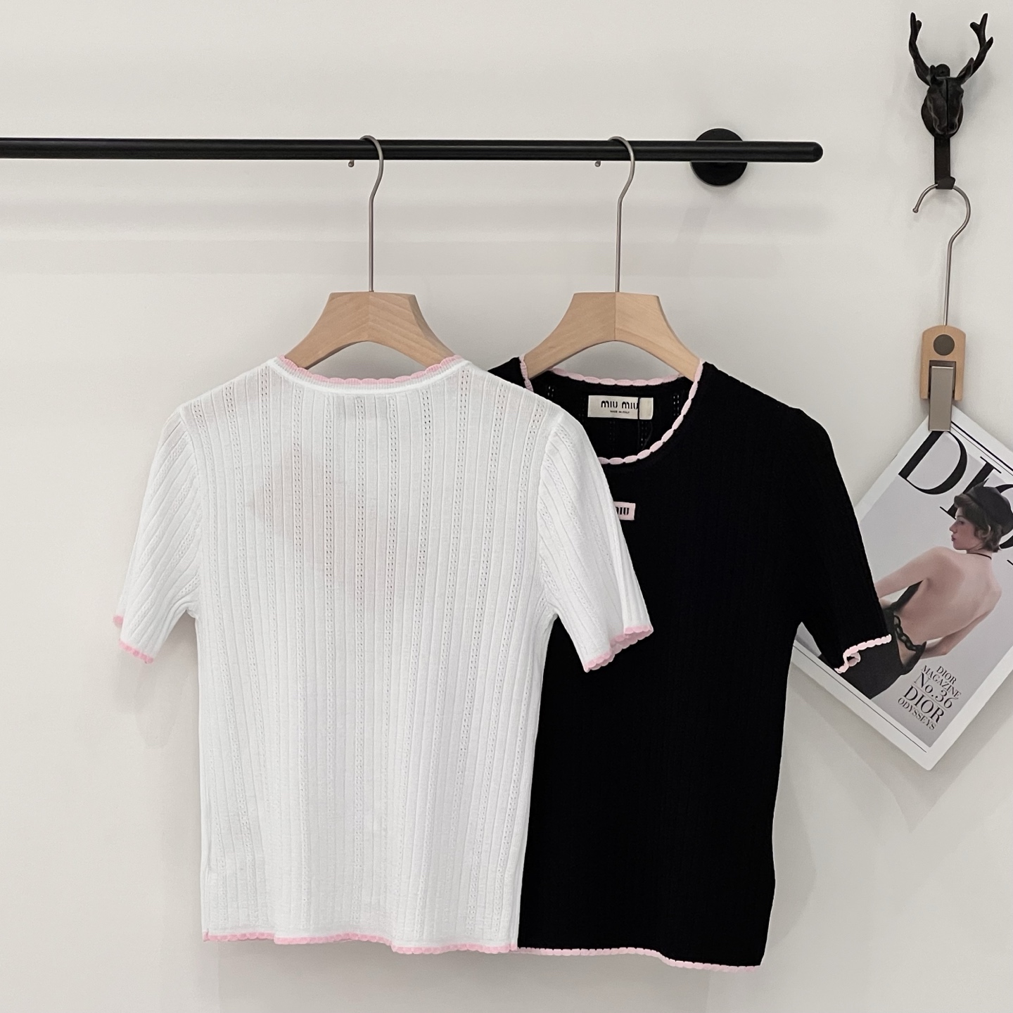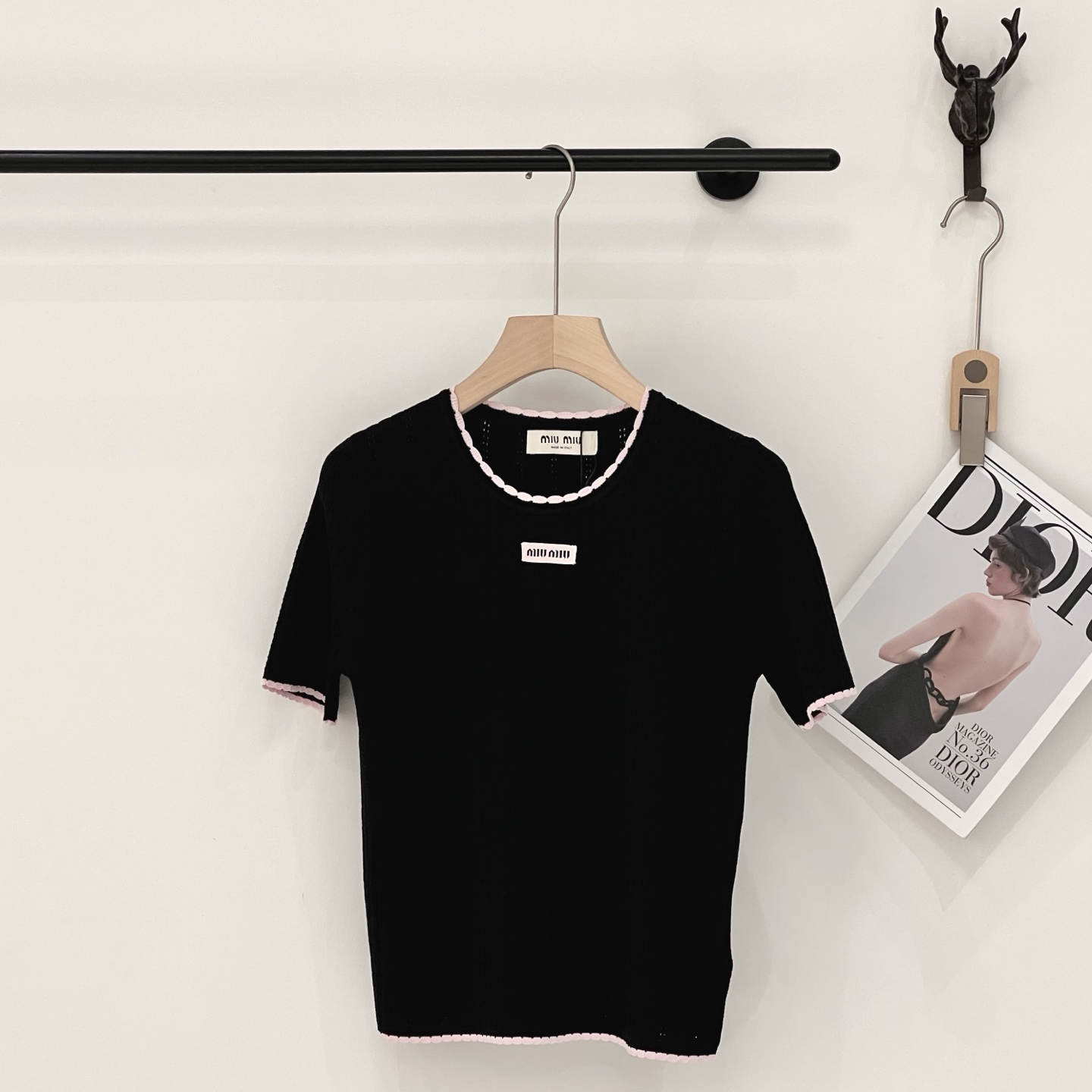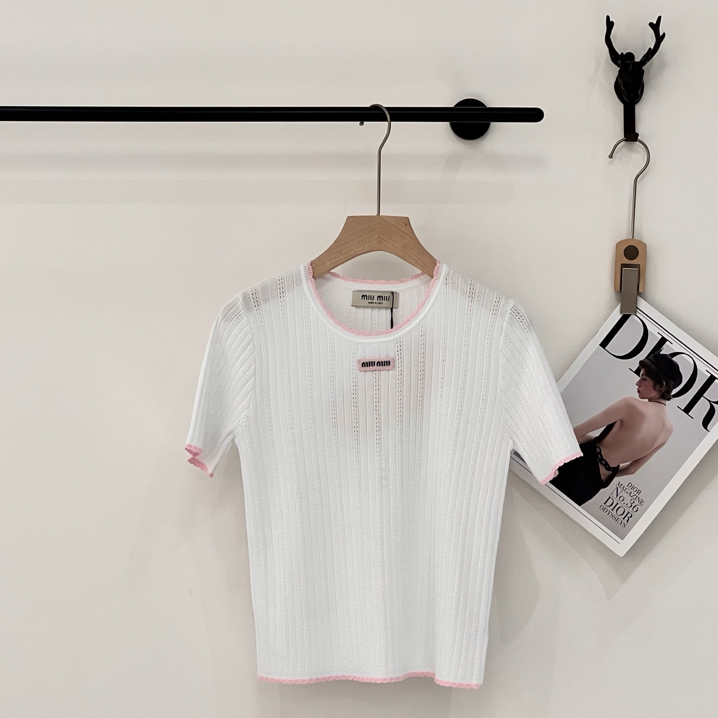 这款衣服是AAAAA 1:1 质量 (非常棒). 使用了和原版一模一样的材料. 商标部分也保持了和缪缪/Miu Miu一样. 图片拍摄是实物衣服拍摄, 您所收到的实物保证和我们图片一模一样.