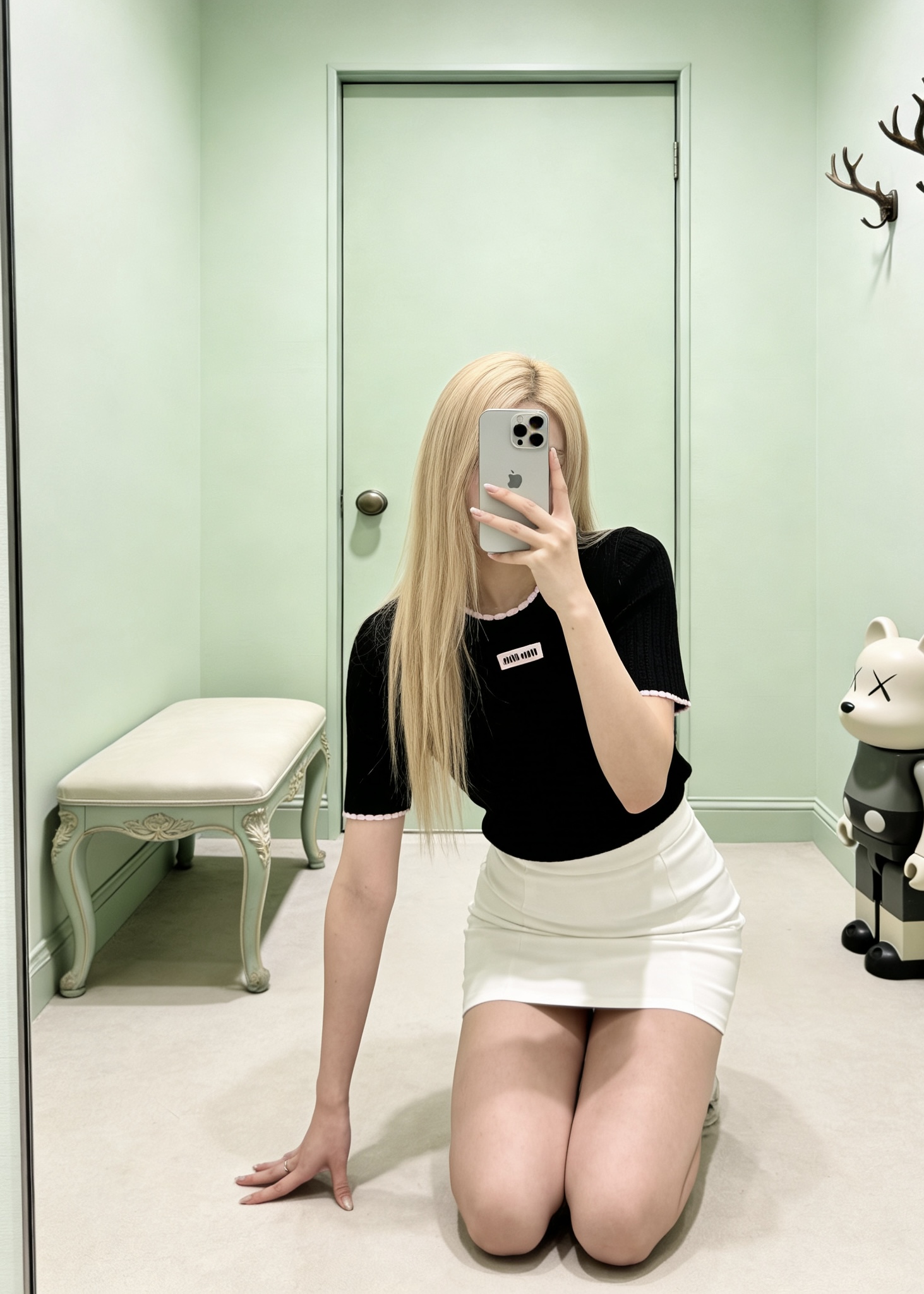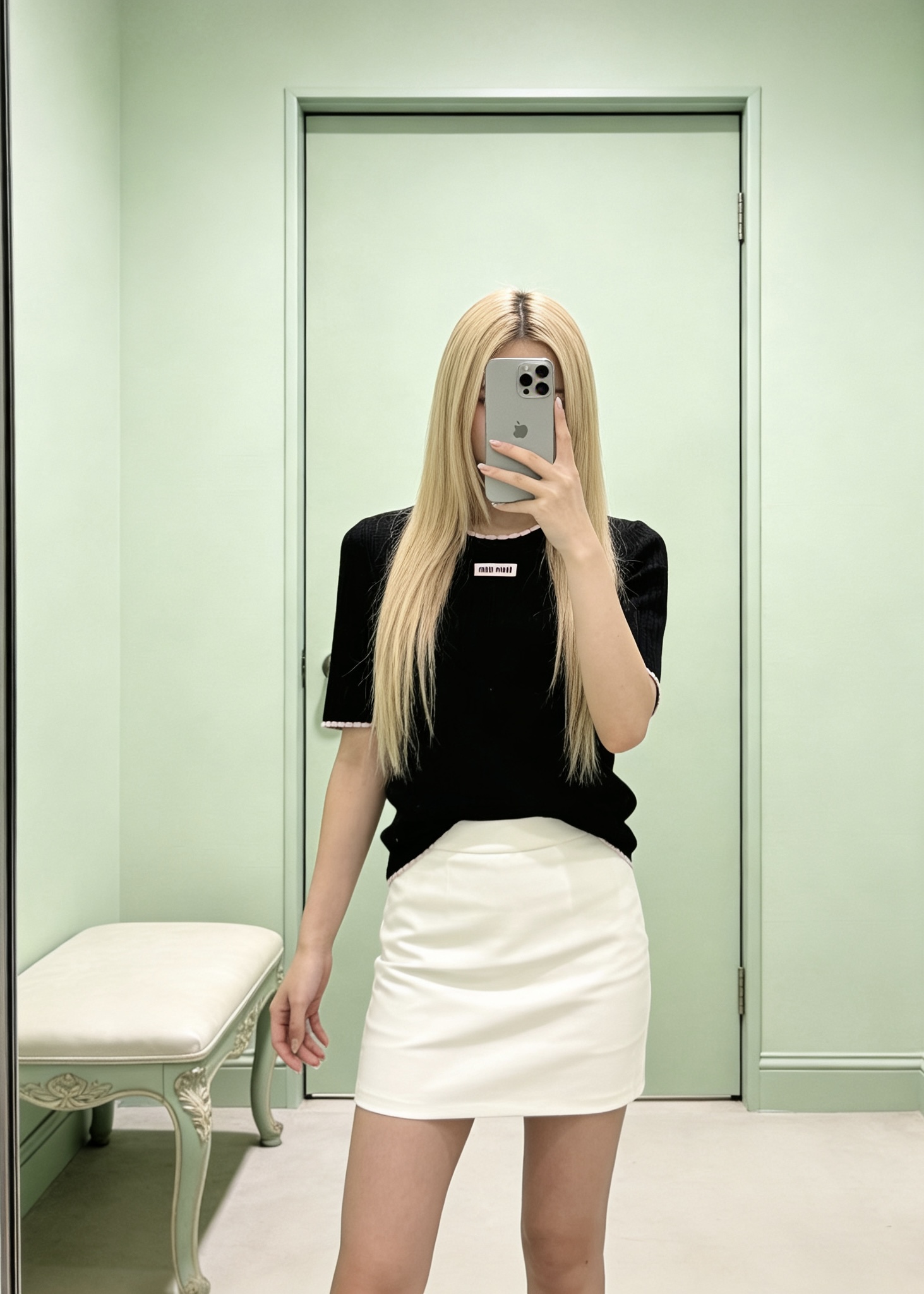 这款衣服是AAAAA 1:1 质量 (非常棒). 使用了和原版一模一样的材料. 商标部分也保持了和缪缪/Miu Miu一样. 图片拍摄是实物衣服拍摄, 您所收到的实物保证和我们图片一模一样.