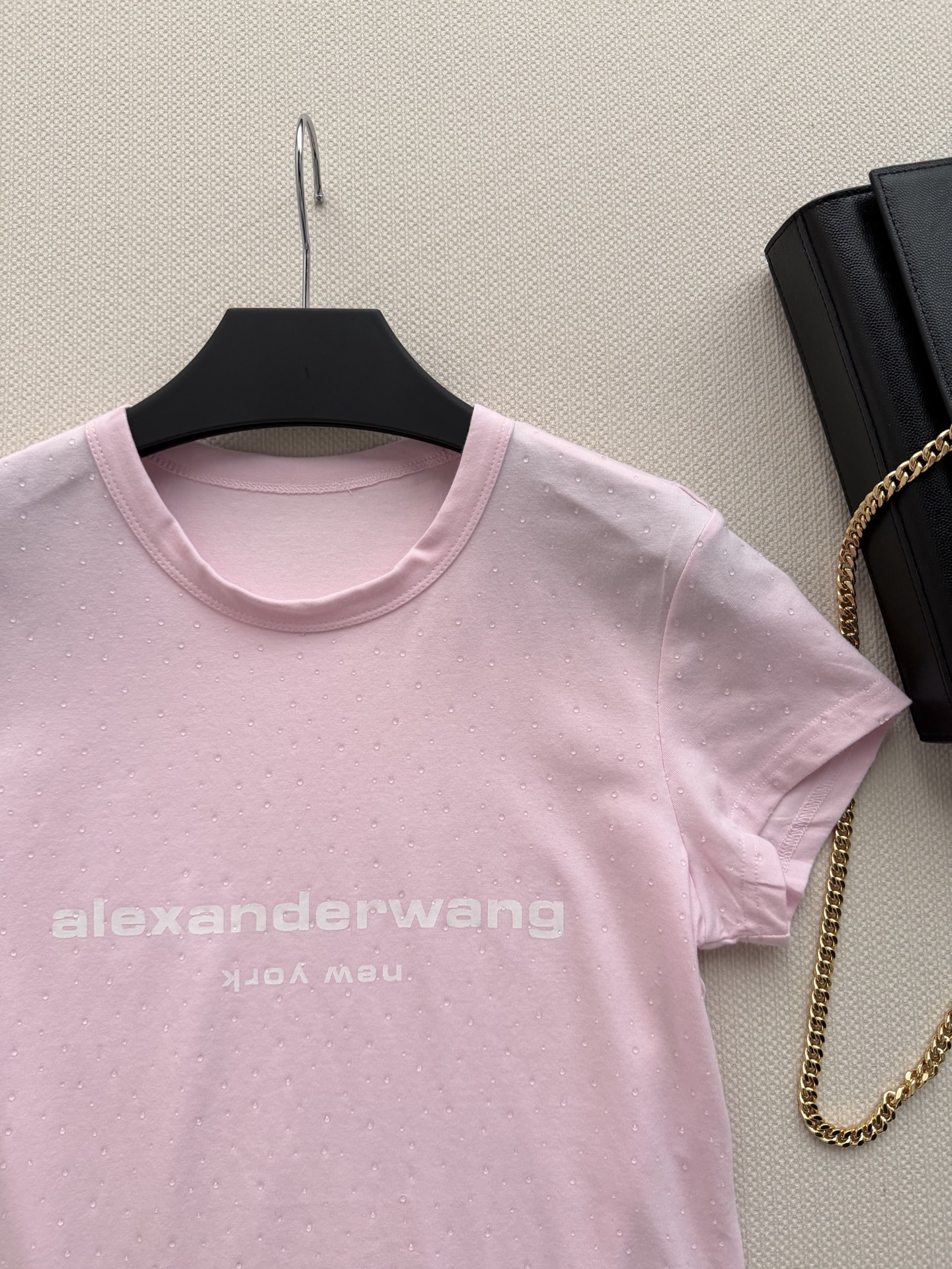 这款衣服是AAAAA 1:1 质量 (非常棒). 使用了和原版一模一样的材料. 商标部分也保持了和亚历山大王/Alexander Wang一样. 图片拍摄是实物衣服拍摄, 您所收到的实物保证和我们图片一模一样.