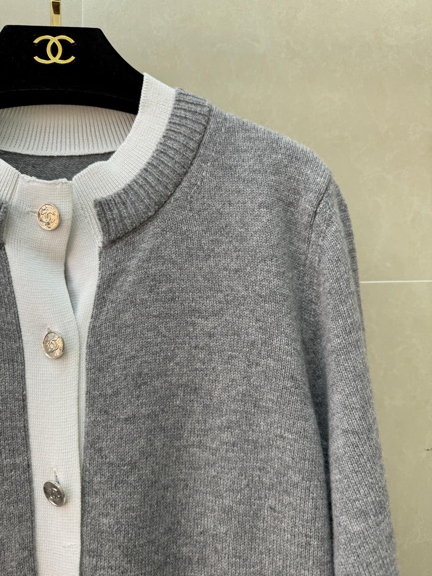 这款衣服是AAAAA 1:1 质量 (非常棒). 使用了和原版一模一样的材料. 商标部分也保持了和香奈儿/Chanel一样. 图片拍摄是实物衣服拍摄, 您所收到的实物保证和我们图片一模一样.