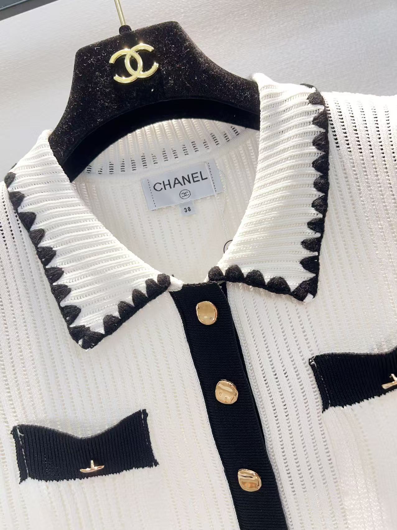 这款衣服是AAAAA 1:1 质量 (非常棒). 使用了和原版一模一样的材料. 商标部分也保持了和香奈儿/Chanel一样. 图片拍摄是实物衣服拍摄, 您所收到的实物保证和我们图片一模一样.