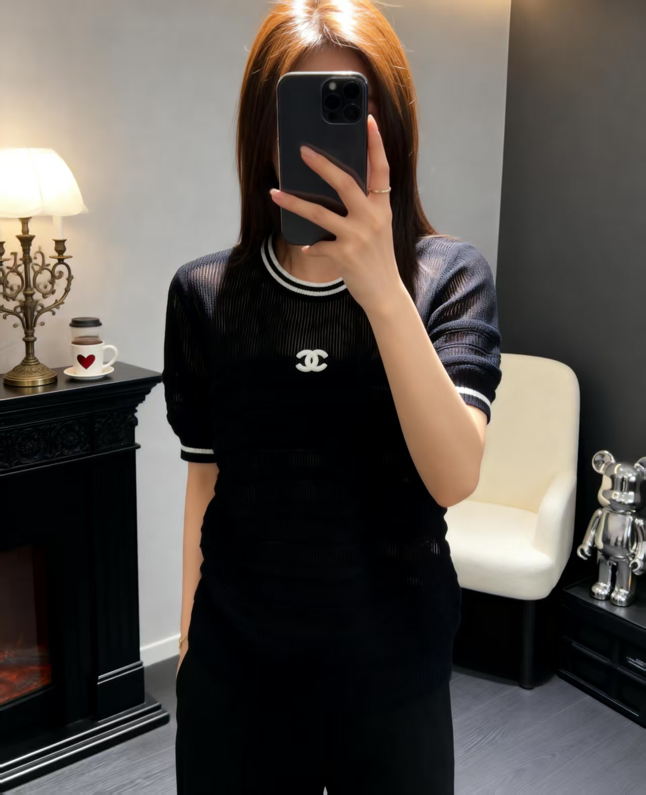 这款衣服是AAAAA 1:1 质量 (非常棒). 使用了和原版一模一样的材料. 商标部分也保持了和香奈儿/Chanel一样. 图片拍摄是实物衣服拍摄, 您所收到的实物保证和我们图片一模一样.