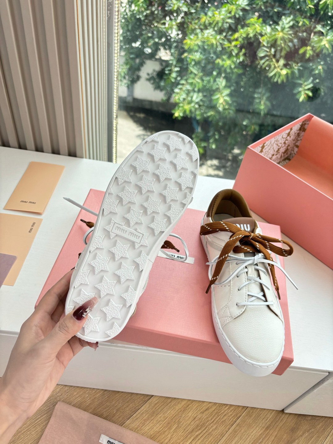 这款鞋子是AAAAA 1:1 质量 (非常棒). 使用了和原版一模一样的材料. 商标部分也保持了和缪缪/Miu Miu一样. 图片拍摄是实物鞋子拍摄, 您所收到的实物保证和我们图片一模一样.