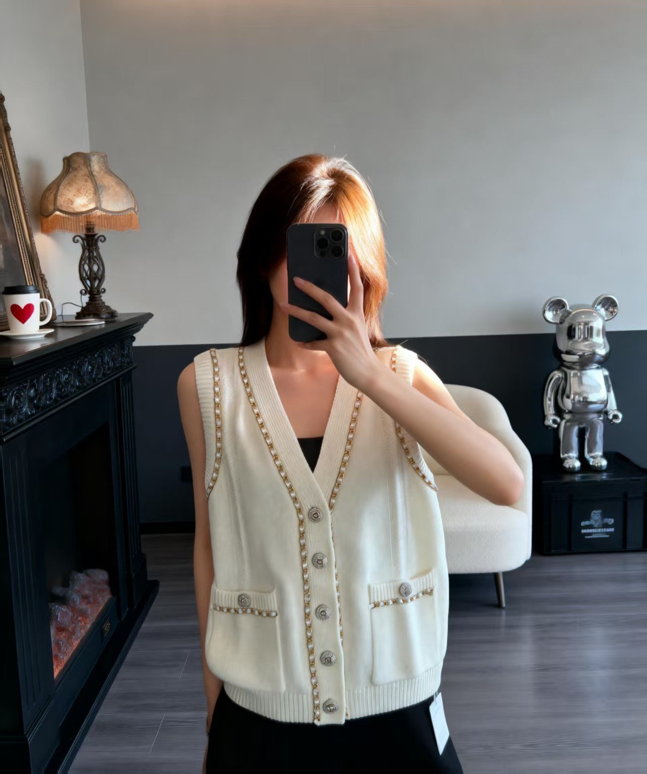 这款衣服是AAAAA 1:1 质量 (非常棒). 使用了和原版一模一样的材料. 商标部分也保持了和香奈儿/Chanel一样. 图片拍摄是实物衣服拍摄, 您所收到的实物保证和我们图片一模一样.