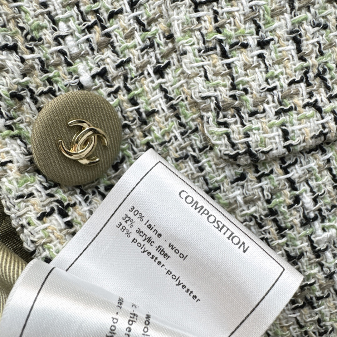 这款衣服是AAAAA 1:1 质量 (非常棒). 使用了和原版一模一样的材料. 商标部分也保持了和香奈儿/Chanel一样. 图片拍摄是实物衣服拍摄, 您所收到的实物保证和我们图片一模一样.