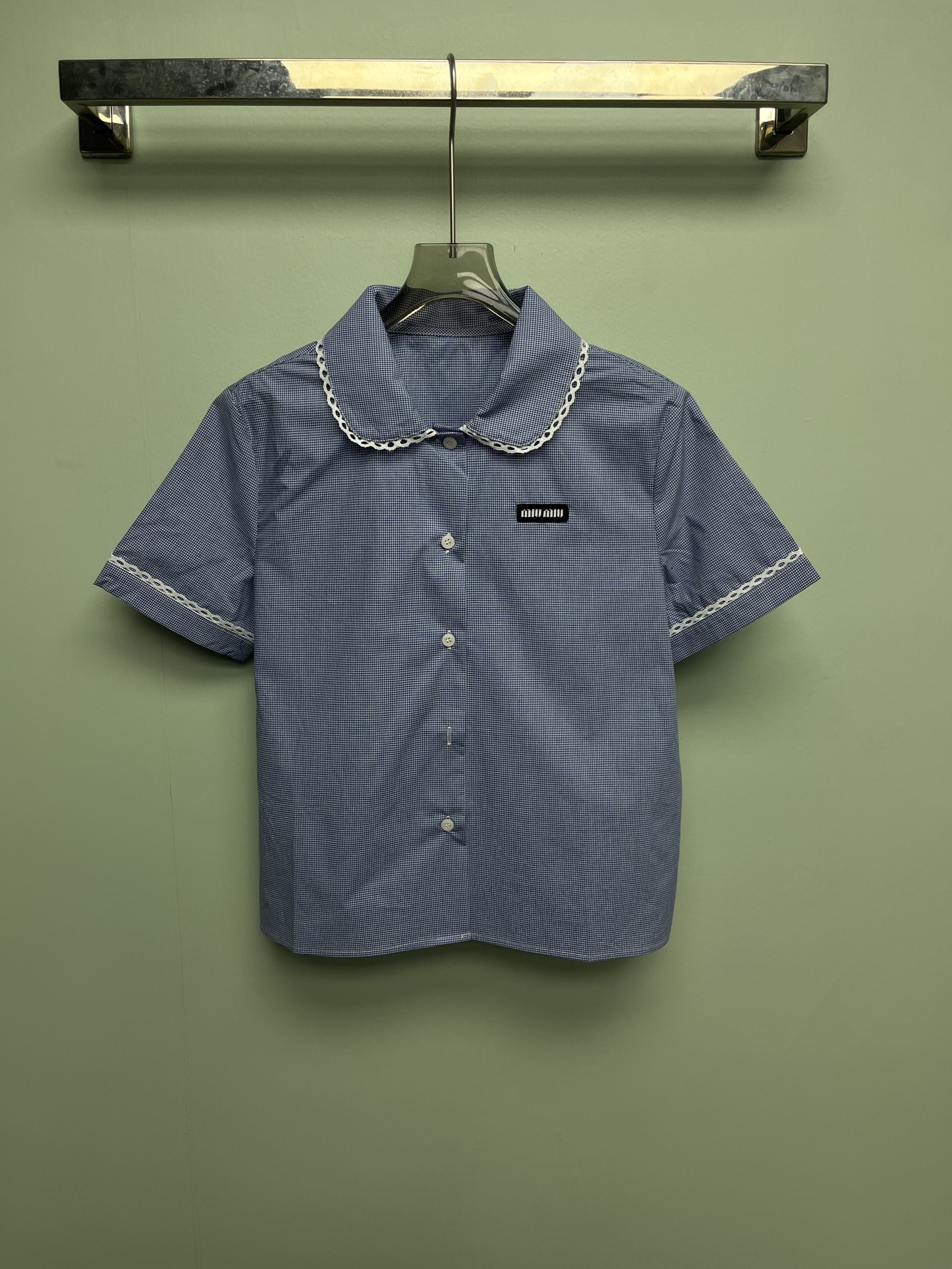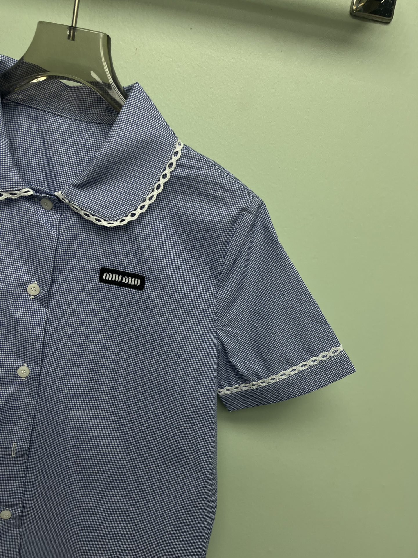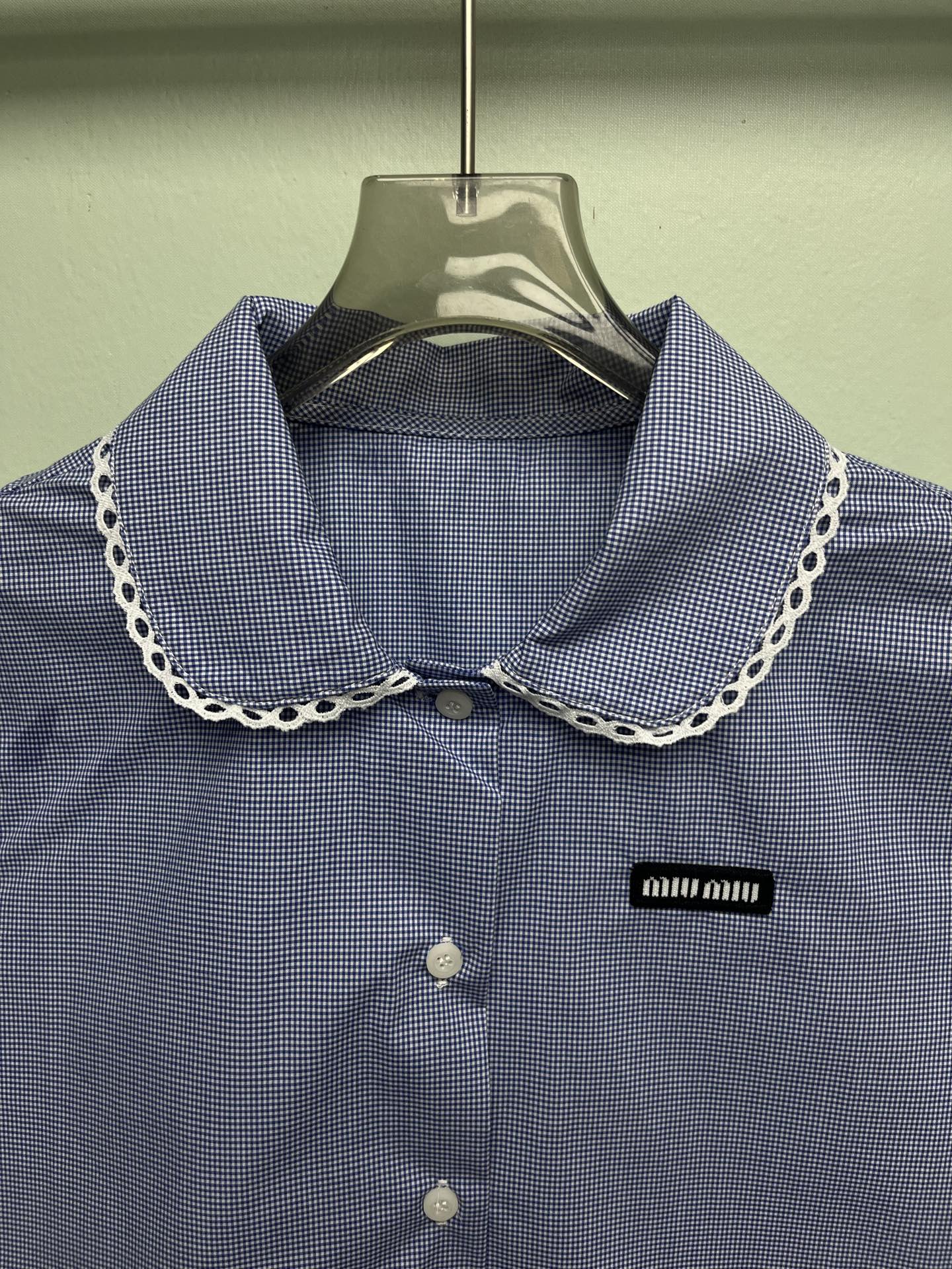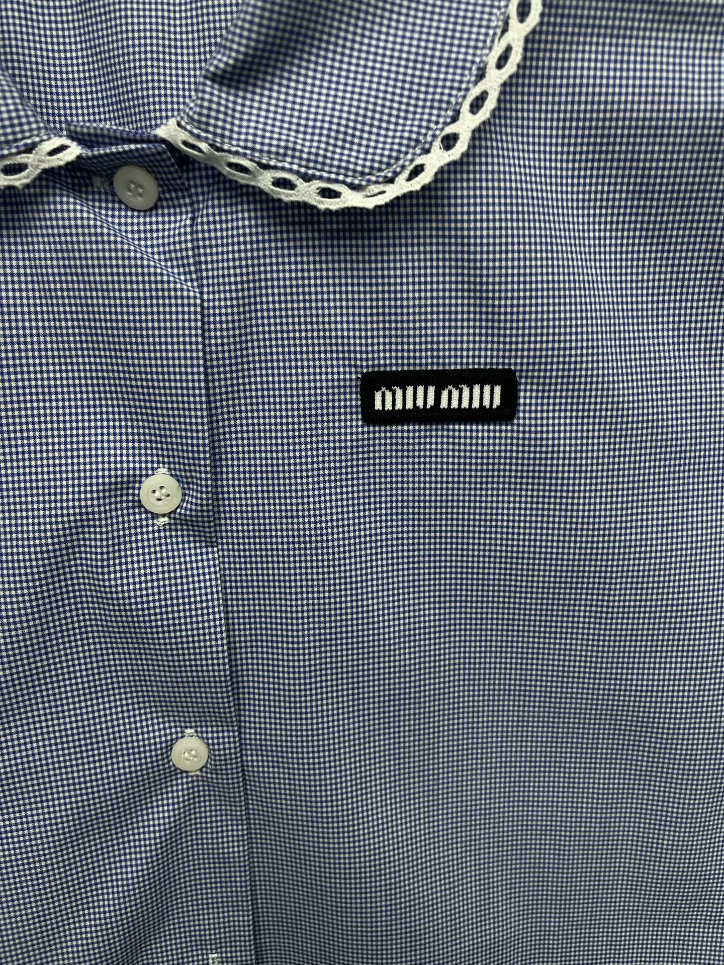这款衣服是AAAAA 1:1 质量 (非常棒). 使用了和原版一模一样的材料. 商标部分也保持了和缪缪/Miu Miu一样. 图片拍摄是实物衣服拍摄, 您所收到的实物保证和我们图片一模一样.