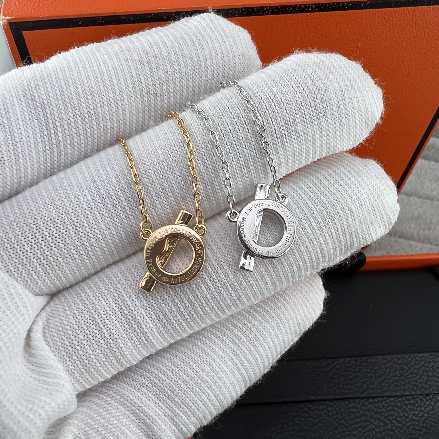 这款首饰是AAAAA 1:1 质量 (非常棒). 使用了和原版一模一样的材料. 商标部分也保持了和爱马仕/Hermes一样. 图片拍摄是实物首饰拍摄, 您所收到的实物保证和我们图片一模一样.