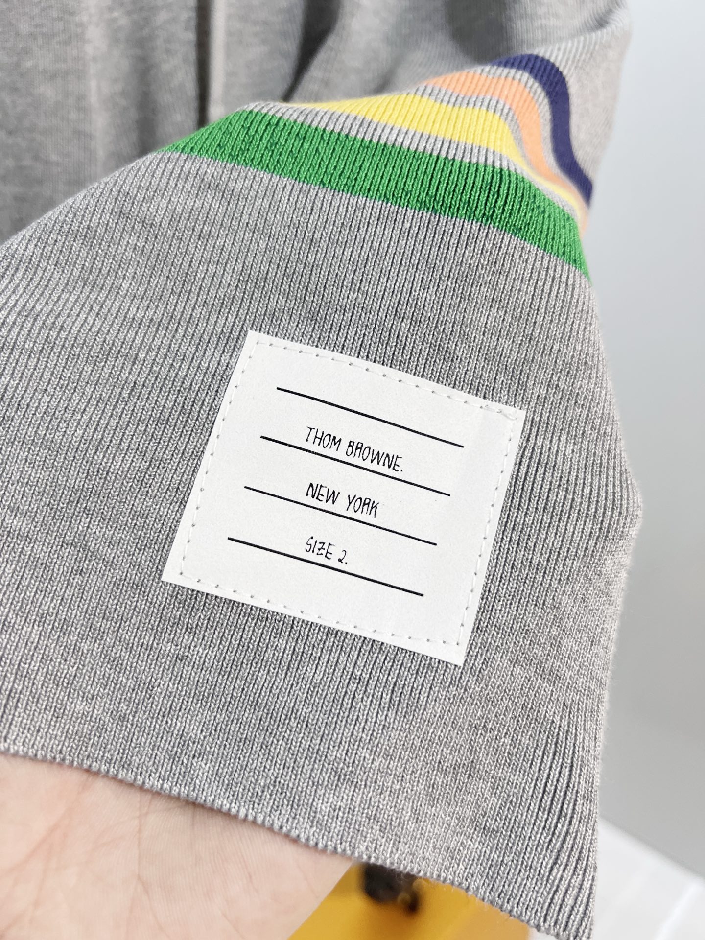 这款衣服是AAAAA 1:1 质量 (非常棒). 使用了和原版一模一样的材料. 商标部分也保持了和汤姆布朗/Thom Browne一样. 图片拍摄是实物衣服拍摄, 您所收到的实物保证和我们图片一模一样.