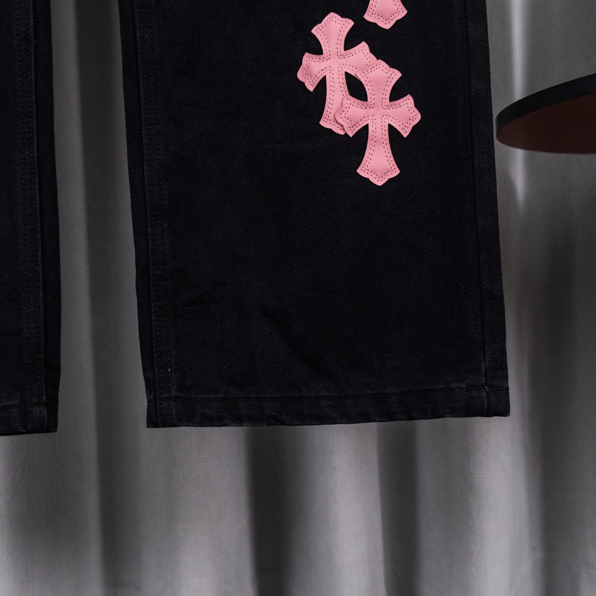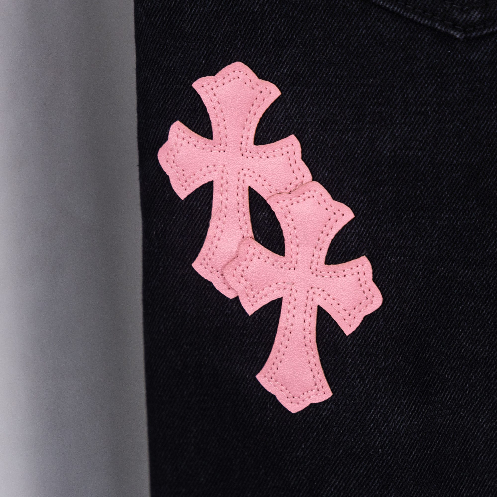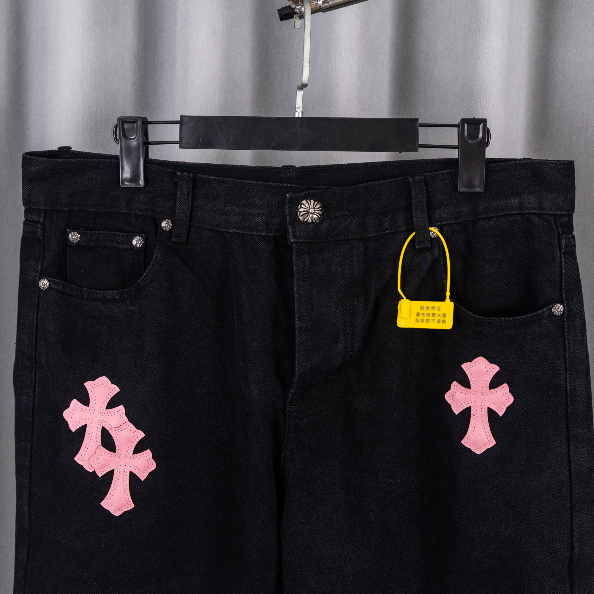 这款衣服是AAAAA 1:1 质量 (非常棒). 使用了和原版一模一样的材料. 商标部分也保持了和克罗心/Chrome Hearts一样. 图片拍摄是实物衣服拍摄, 您所收到的实物保证和我们图片一模一样.