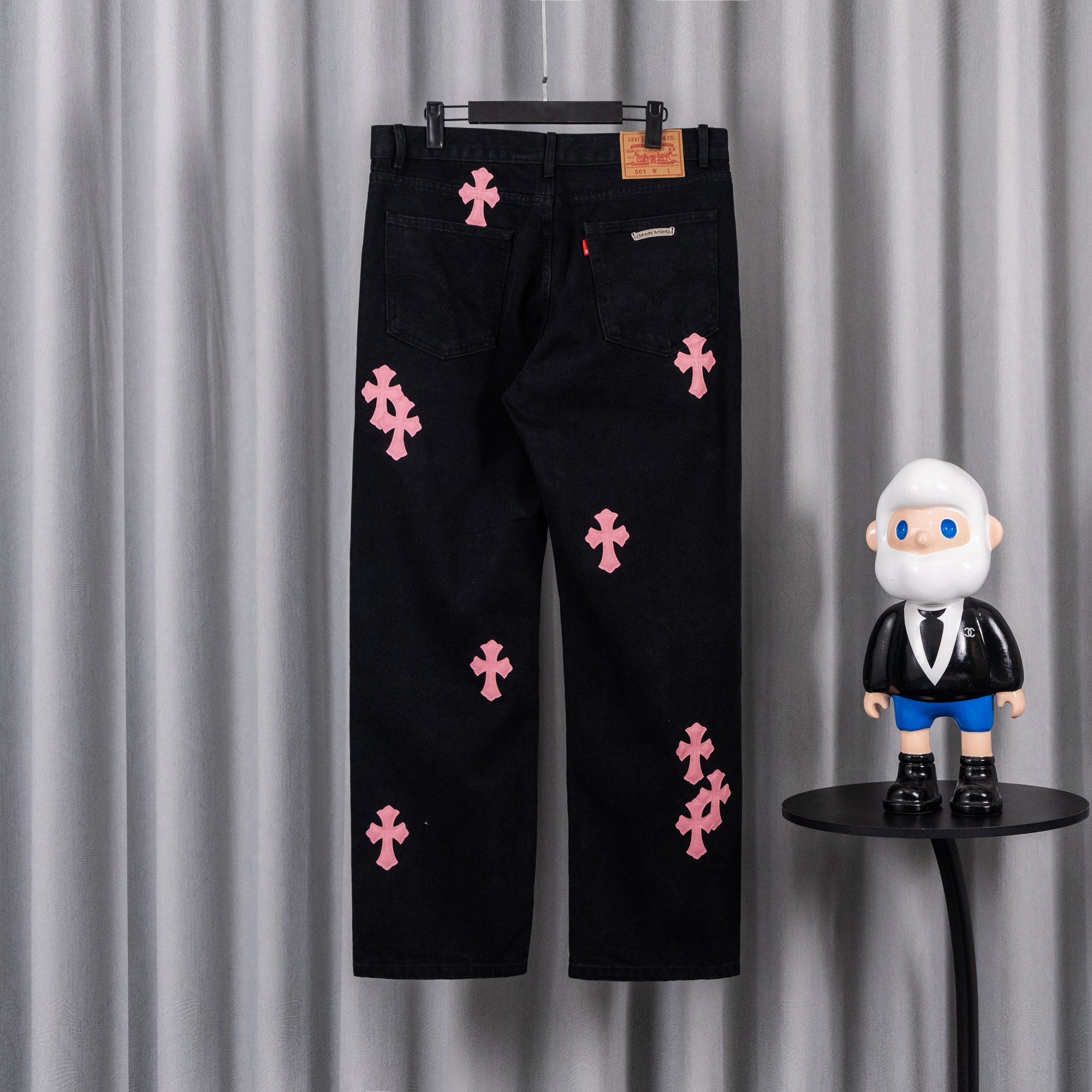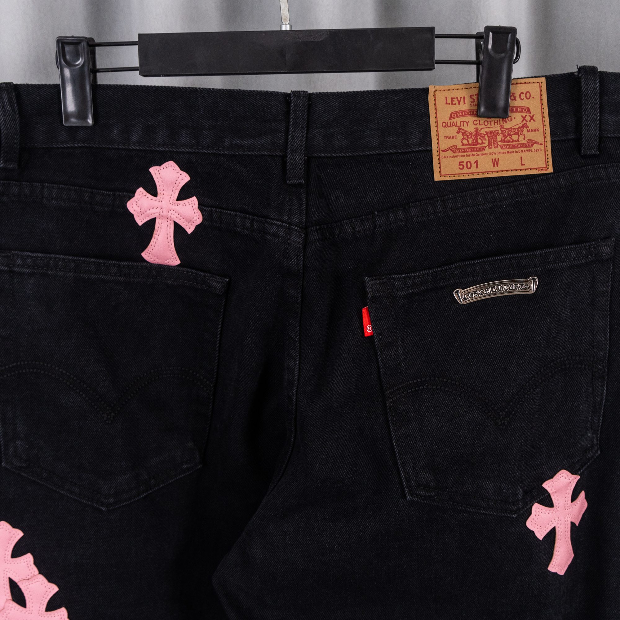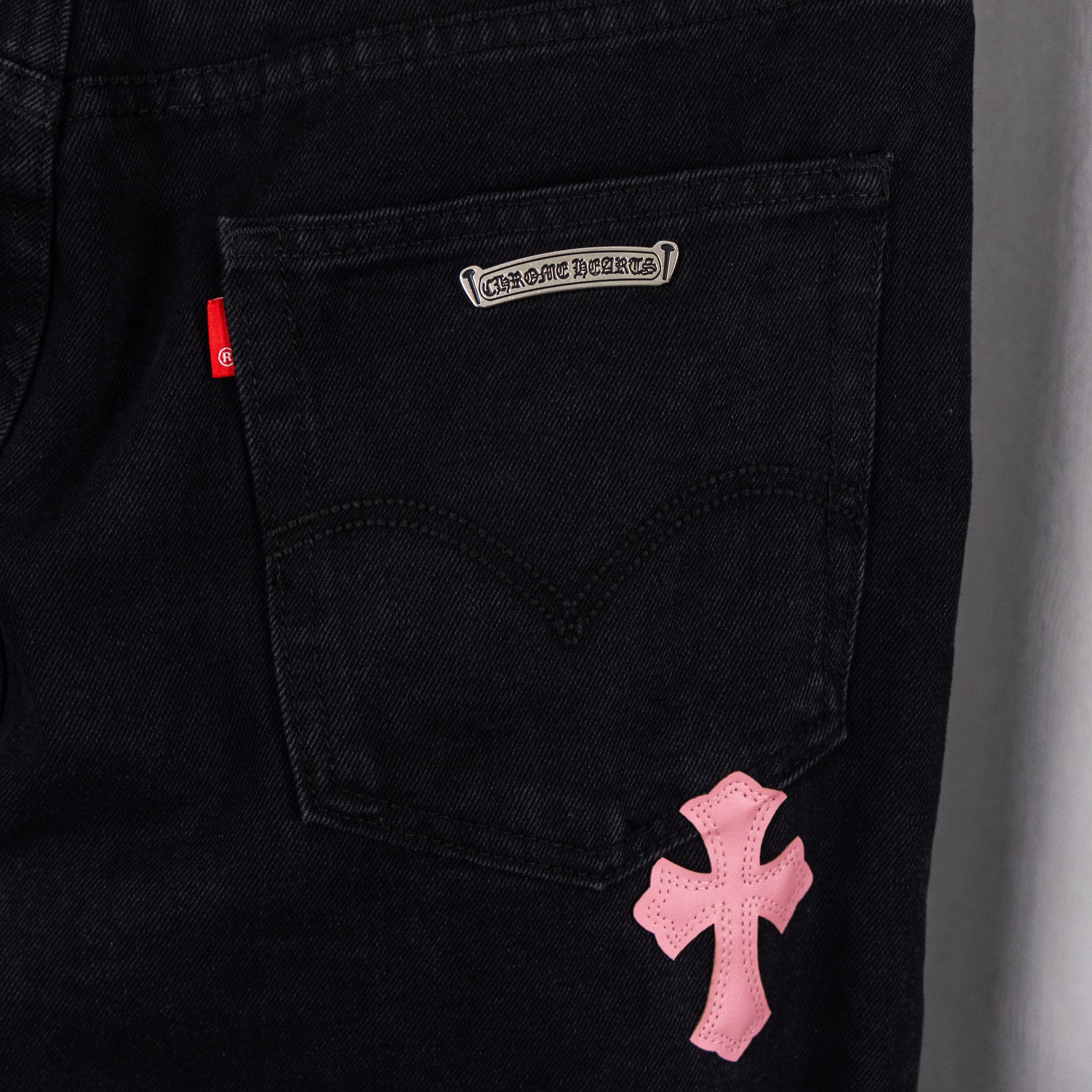 这款衣服是AAAAA 1:1 质量 (非常棒). 使用了和原版一模一样的材料. 商标部分也保持了和克罗心/Chrome Hearts一样. 图片拍摄是实物衣服拍摄, 您所收到的实物保证和我们图片一模一样.