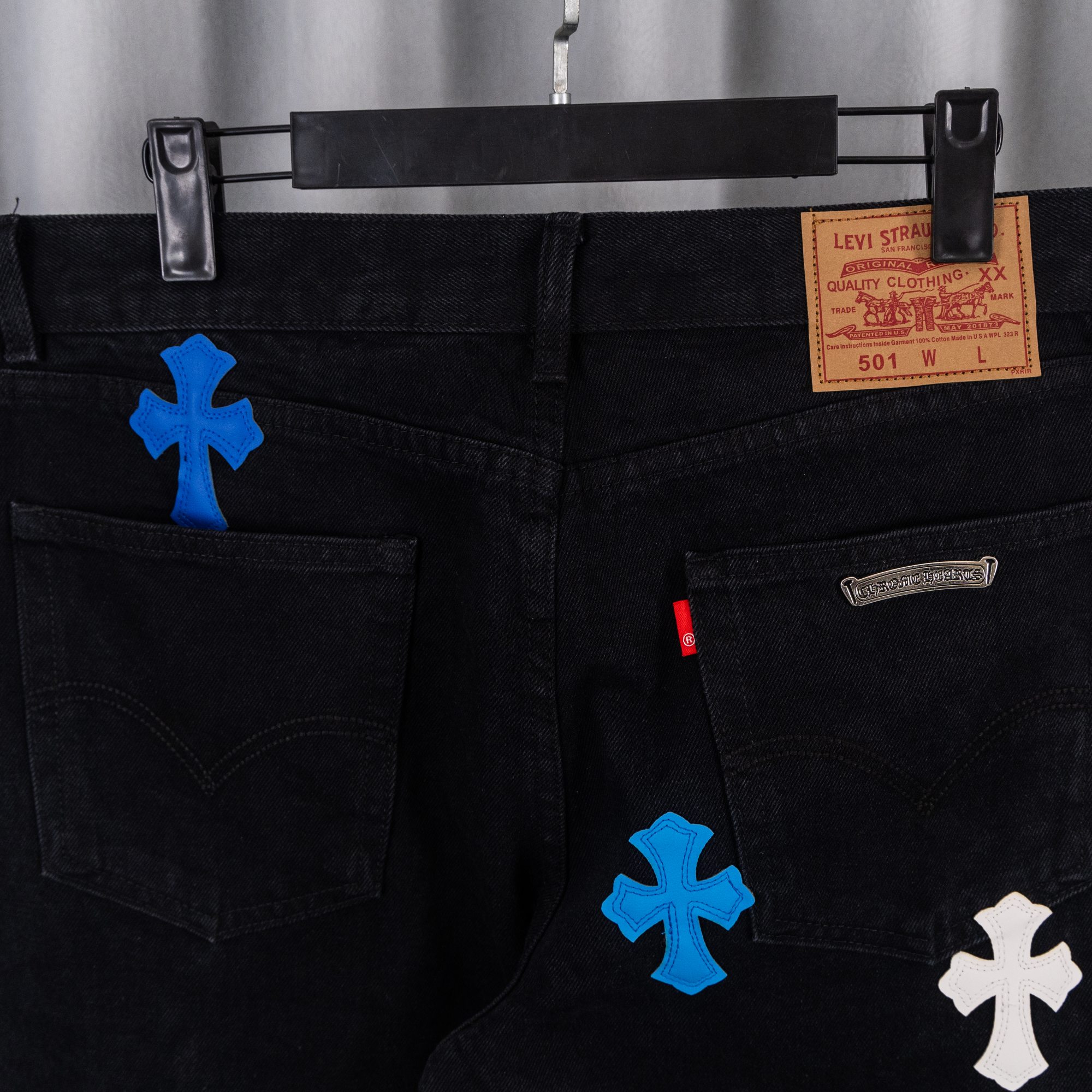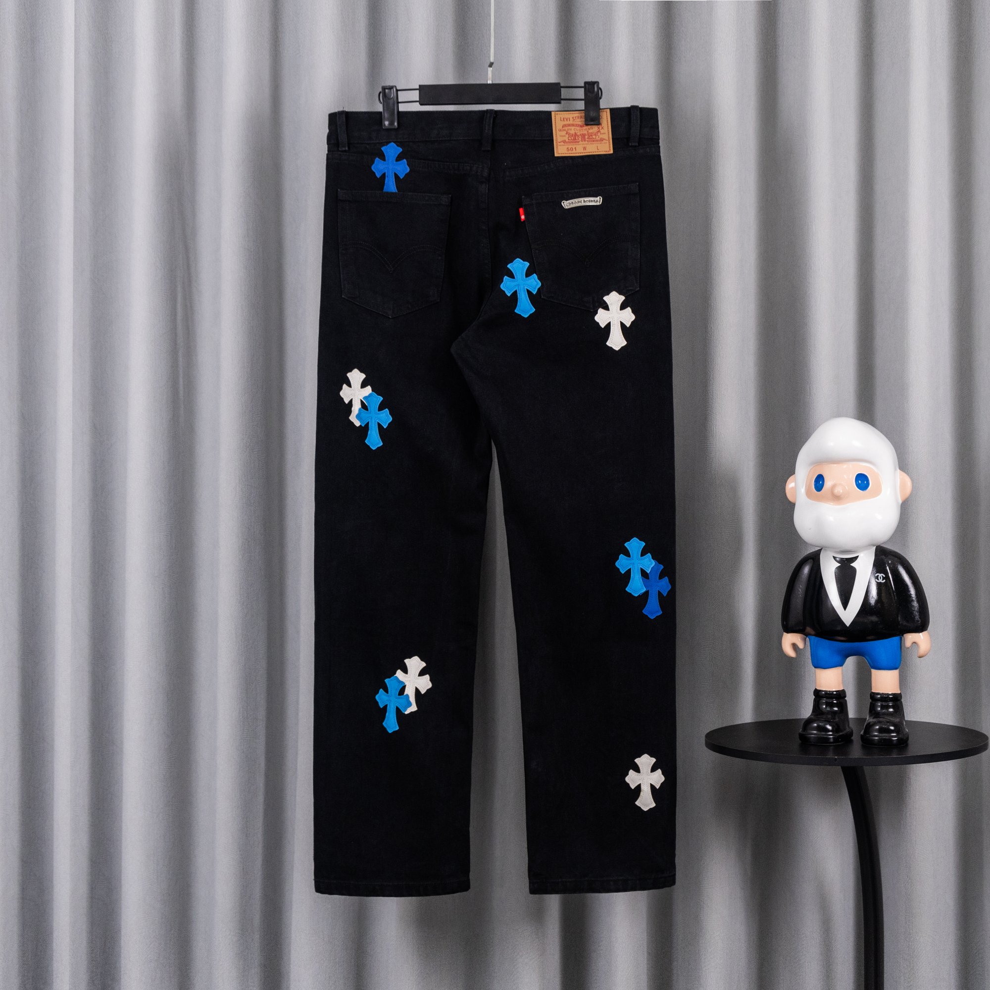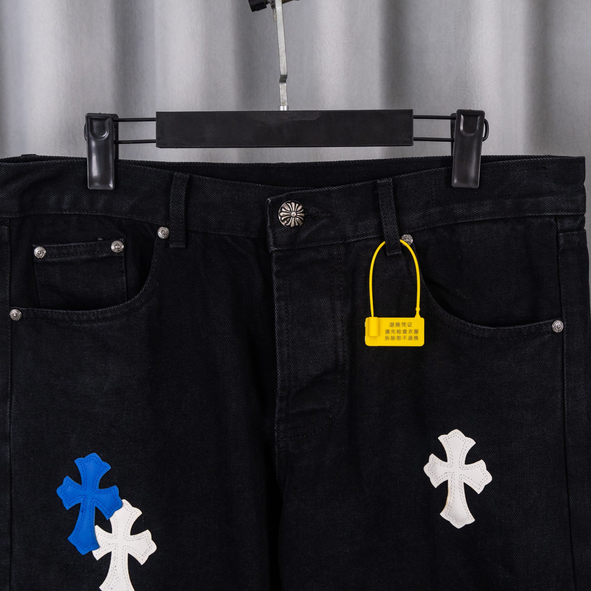 这款衣服是AAAAA 1:1 质量 (非常棒). 使用了和原版一模一样的材料. 商标部分也保持了和克罗心/Chrome Hearts一样. 图片拍摄是实物衣服拍摄, 您所收到的实物保证和我们图片一模一样.