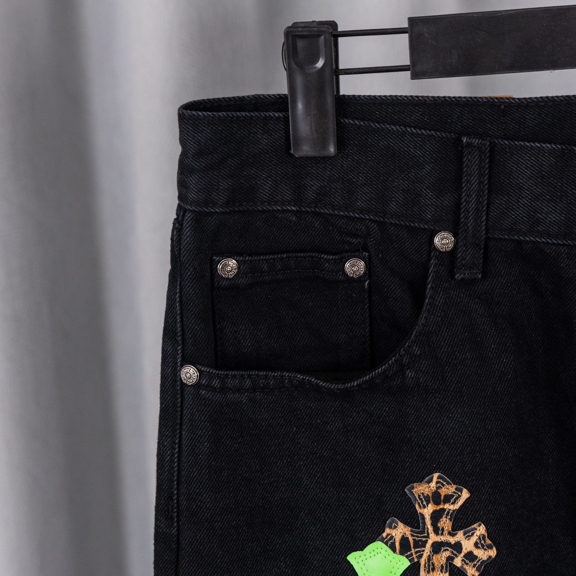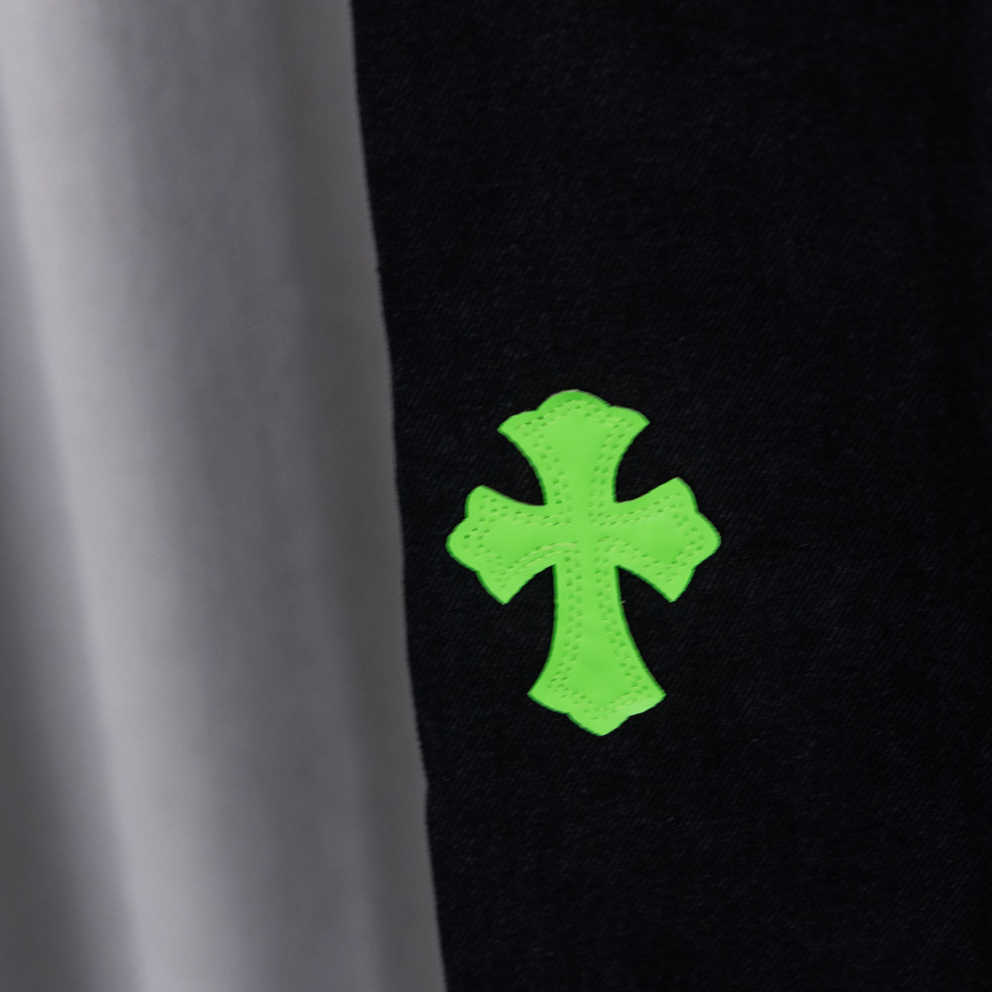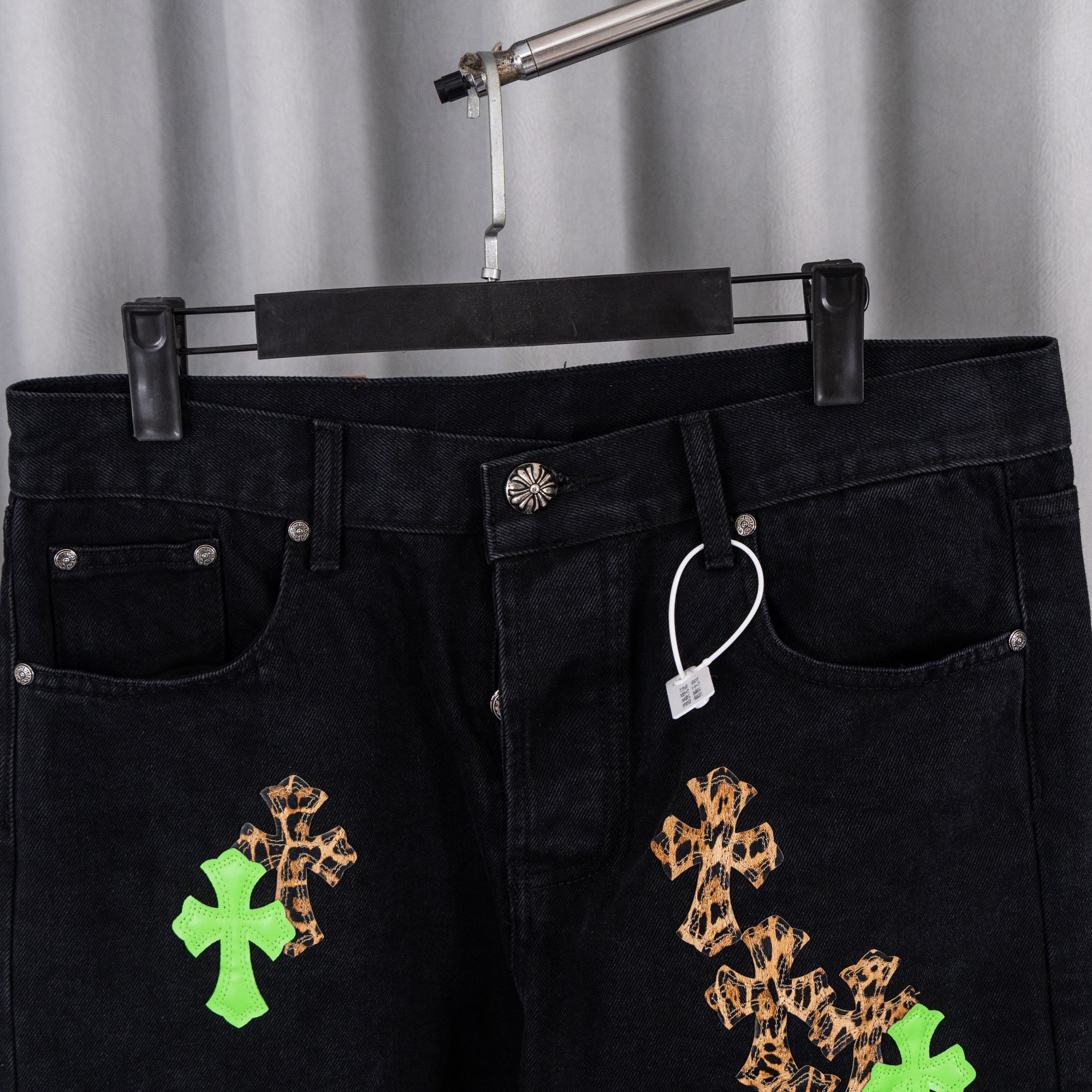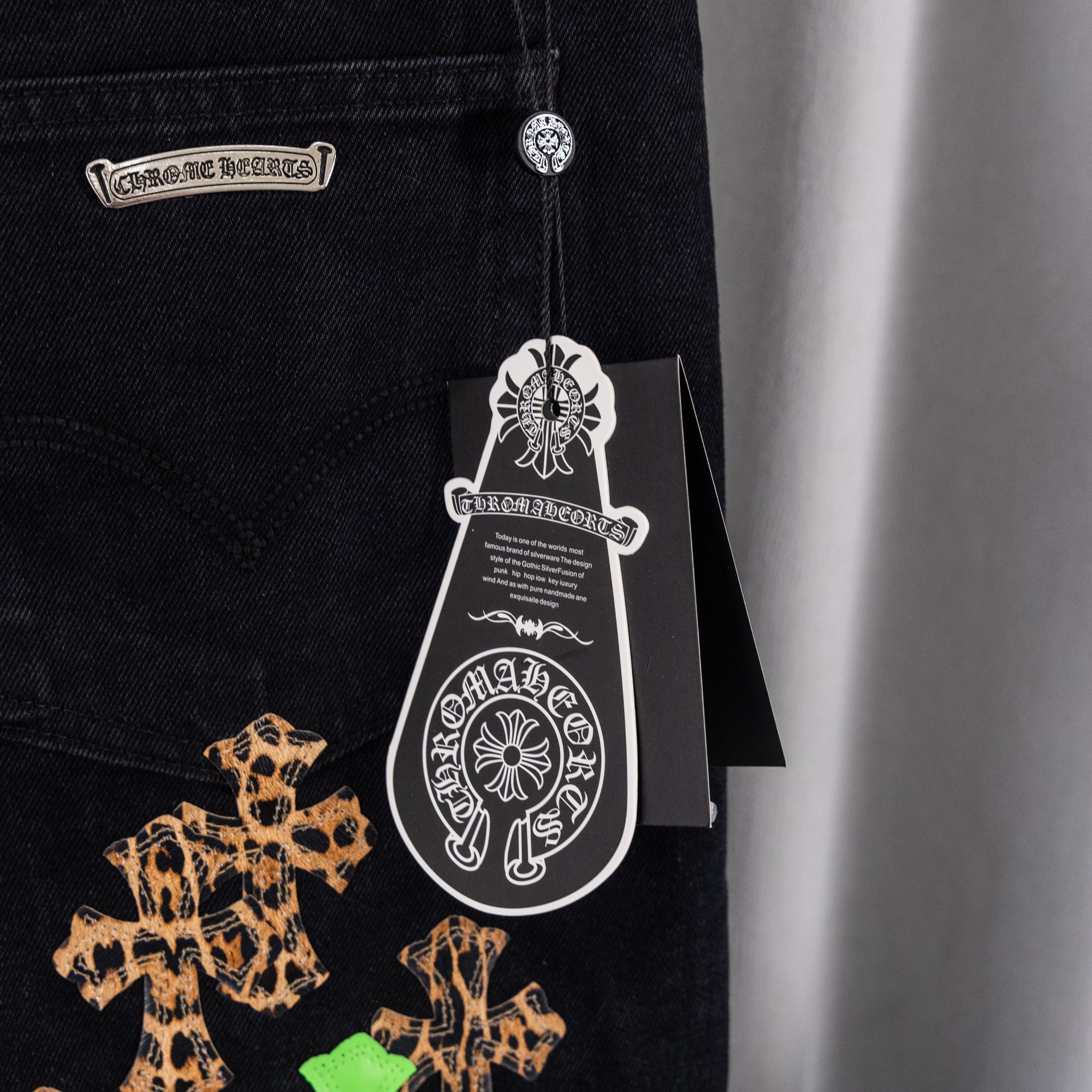 这款衣服是AAAAA 1:1 质量 (非常棒). 使用了和原版一模一样的材料. 商标部分也保持了和克罗心/Chrome Hearts一样. 图片拍摄是实物衣服拍摄, 您所收到的实物保证和我们图片一模一样.