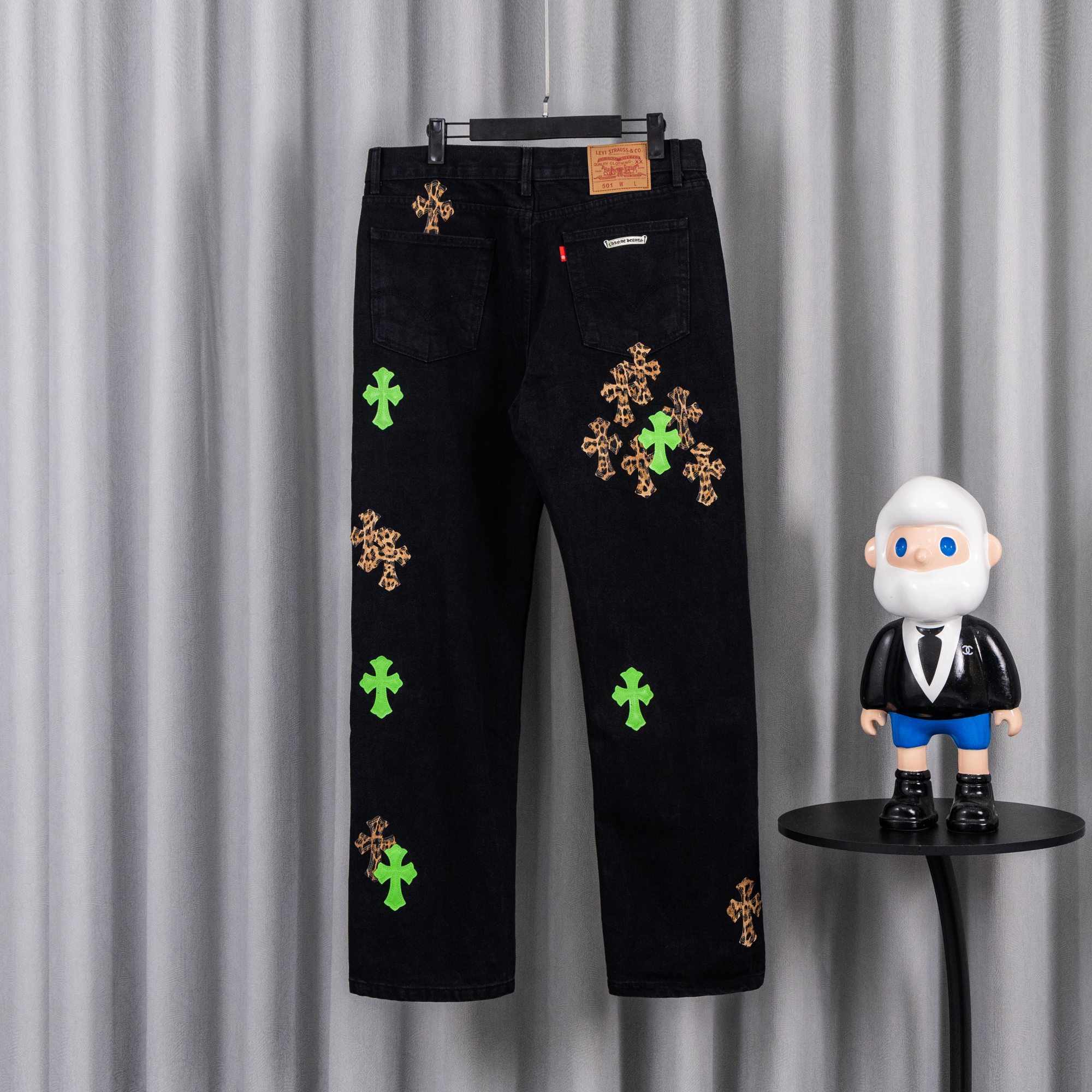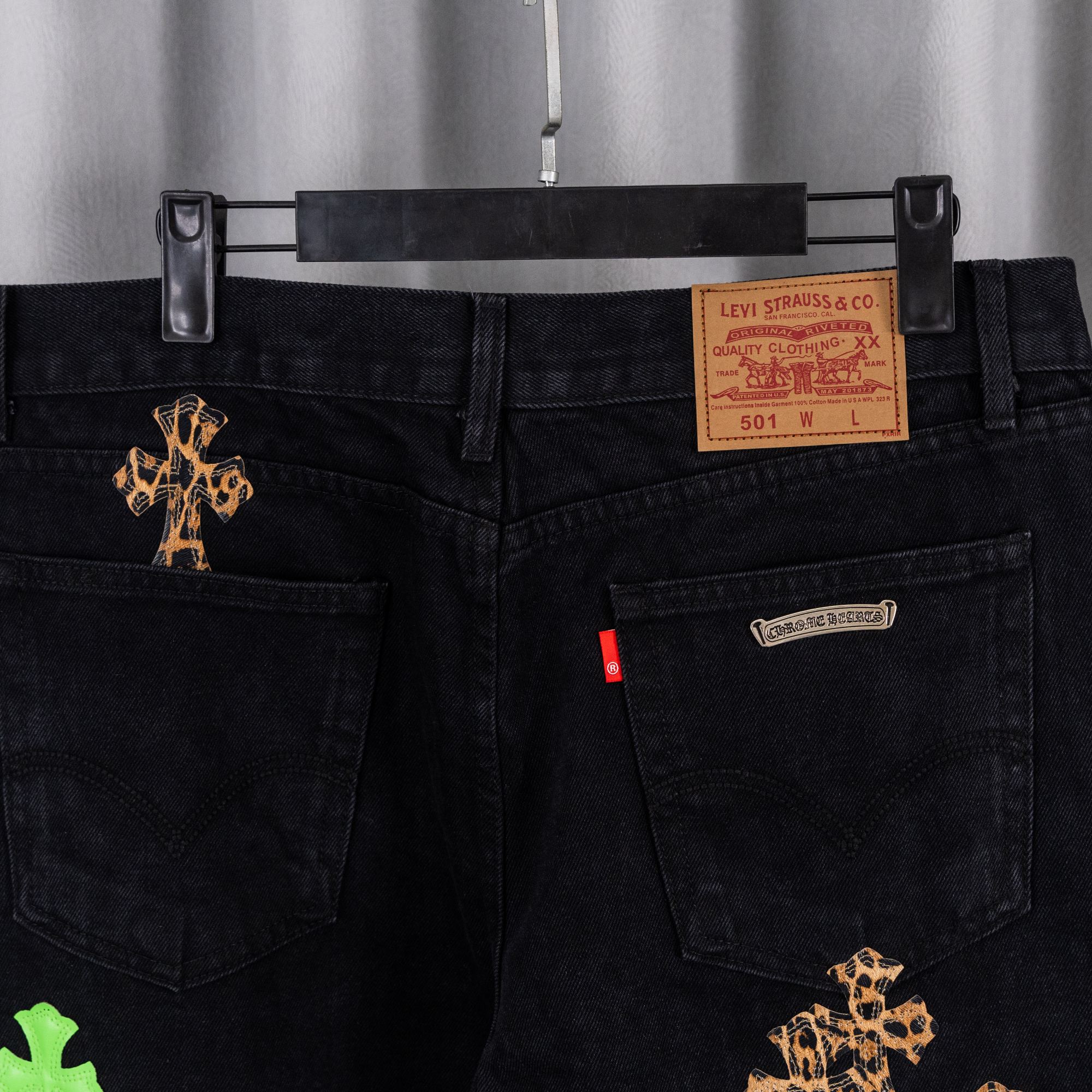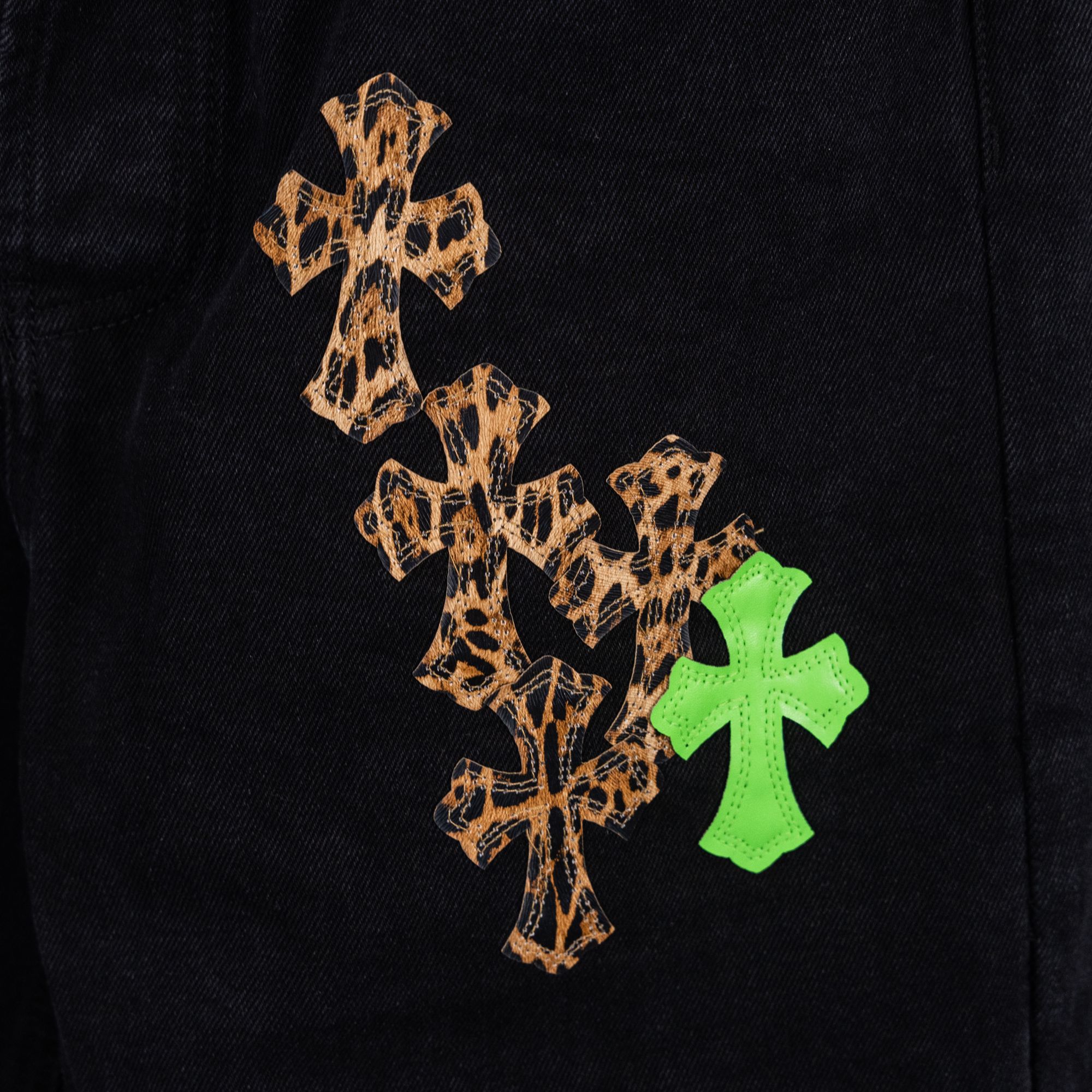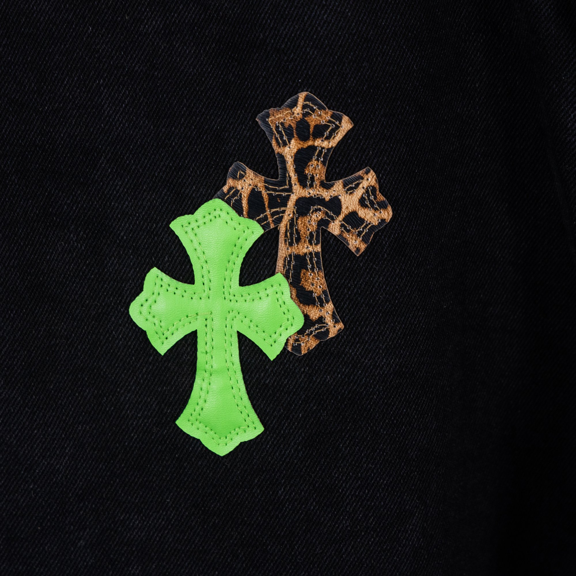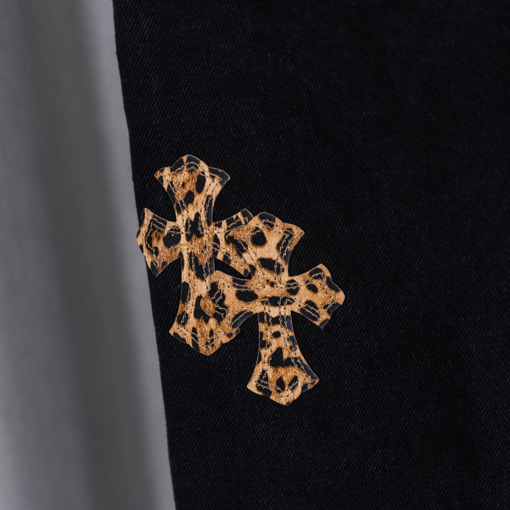 这款衣服是AAAAA 1:1 质量 (非常棒). 使用了和原版一模一样的材料. 商标部分也保持了和克罗心/Chrome Hearts一样. 图片拍摄是实物衣服拍摄, 您所收到的实物保证和我们图片一模一样.