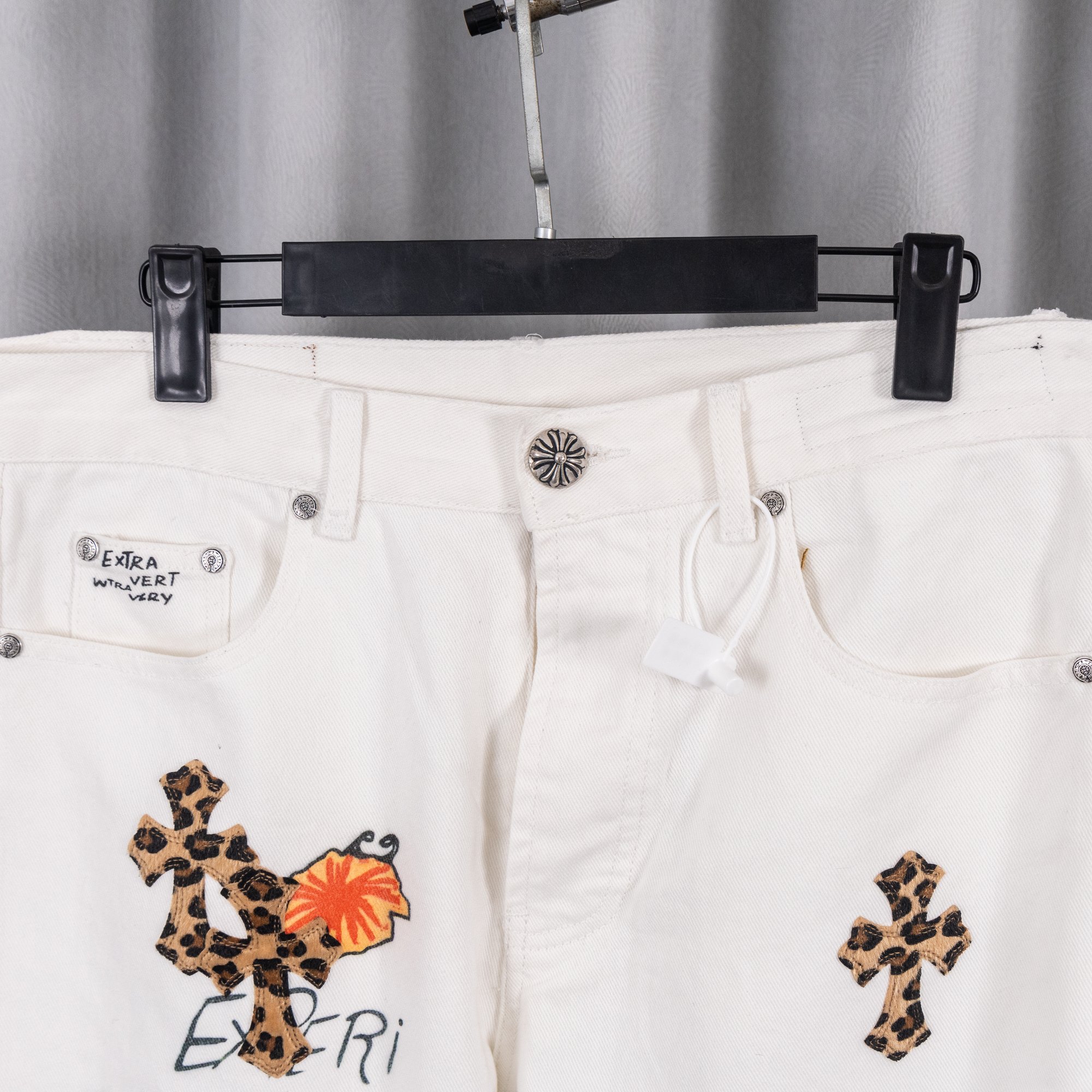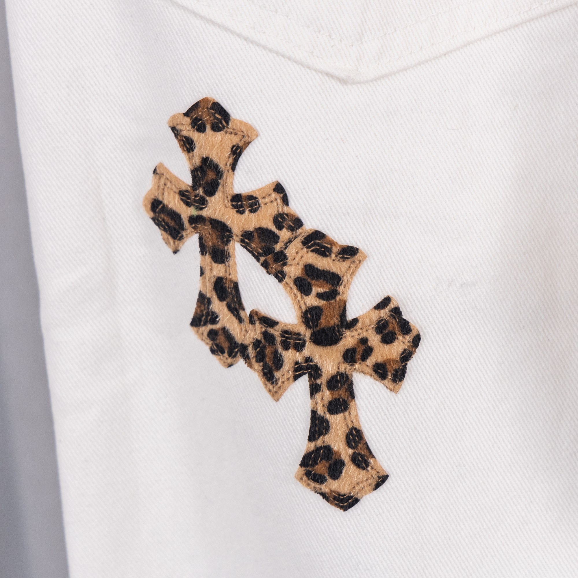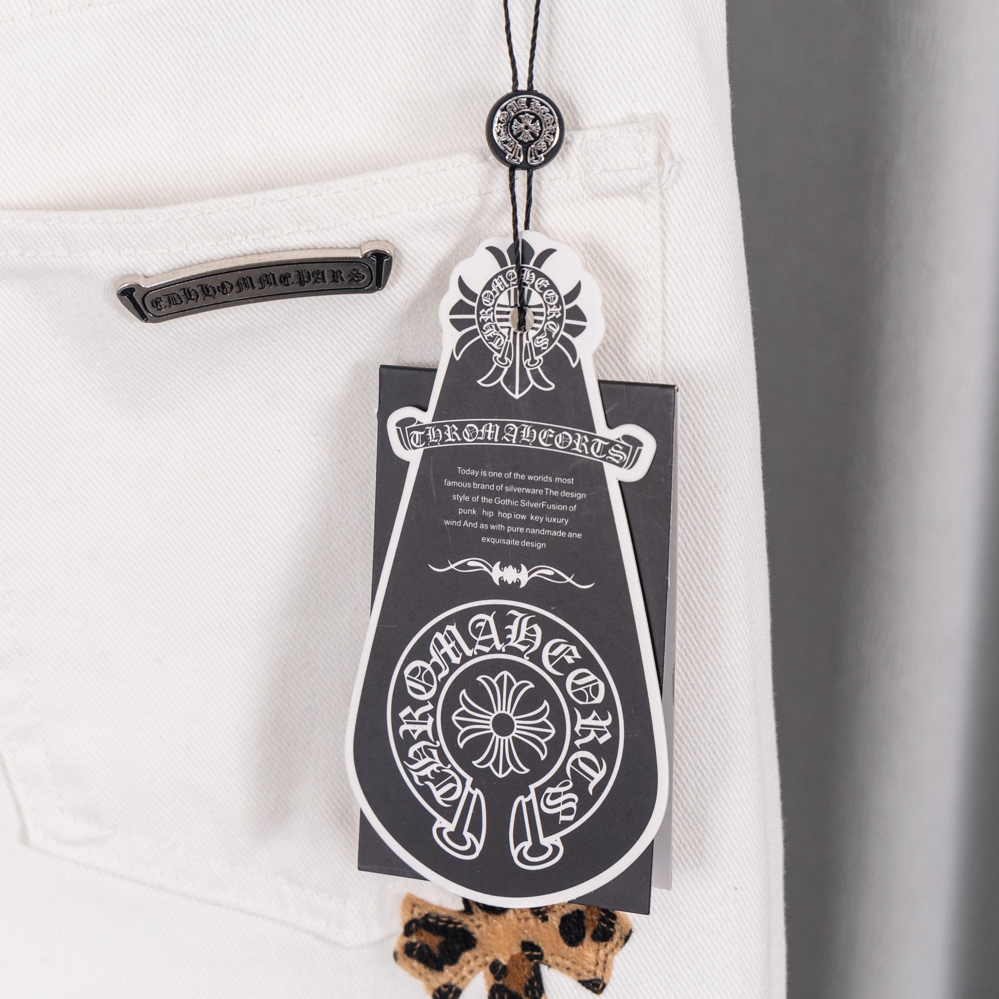 这款衣服是AAAAA 1:1 质量 (非常棒). 使用了和原版一模一样的材料. 商标部分也保持了和克罗心/Chrome Hearts一样. 图片拍摄是实物衣服拍摄, 您所收到的实物保证和我们图片一模一样.