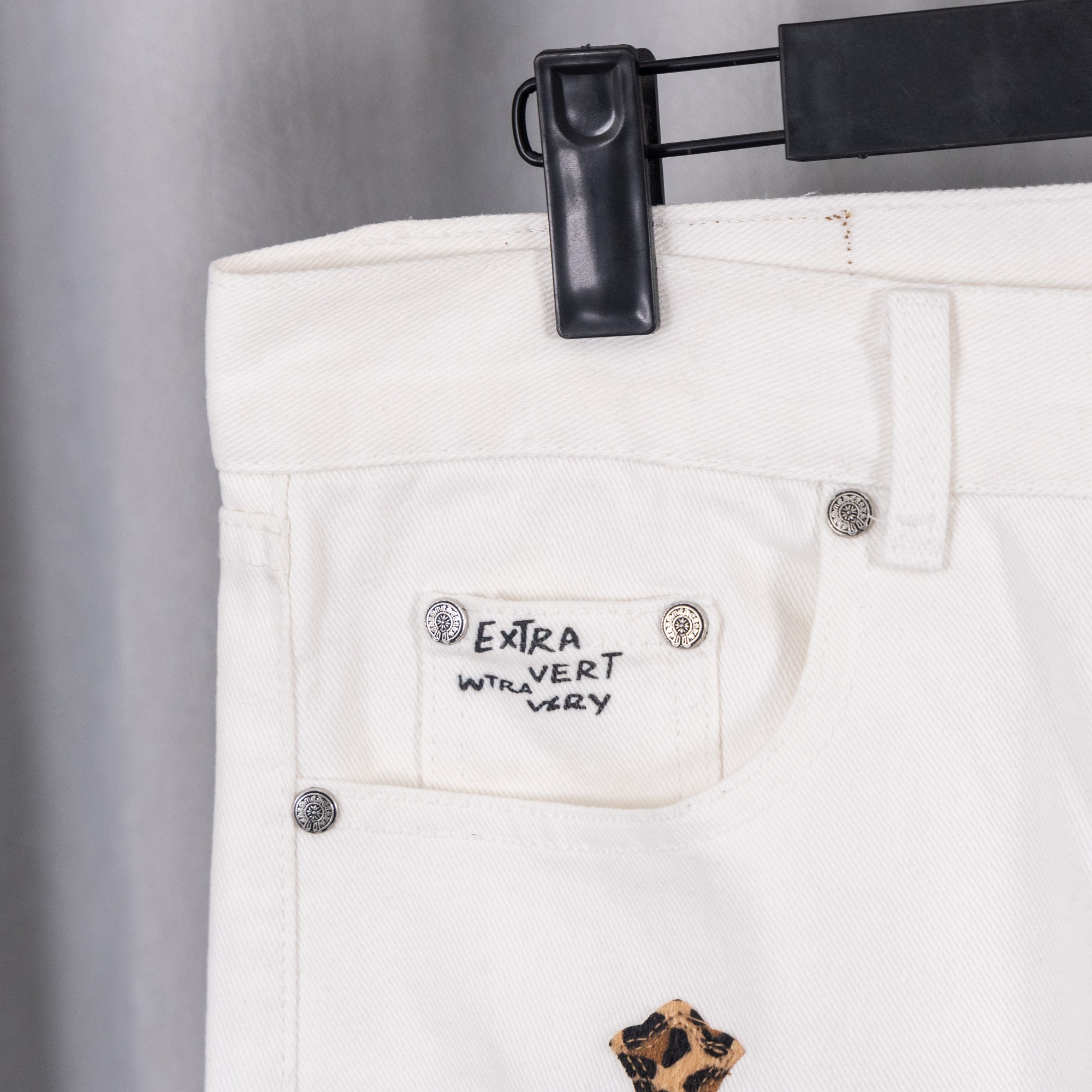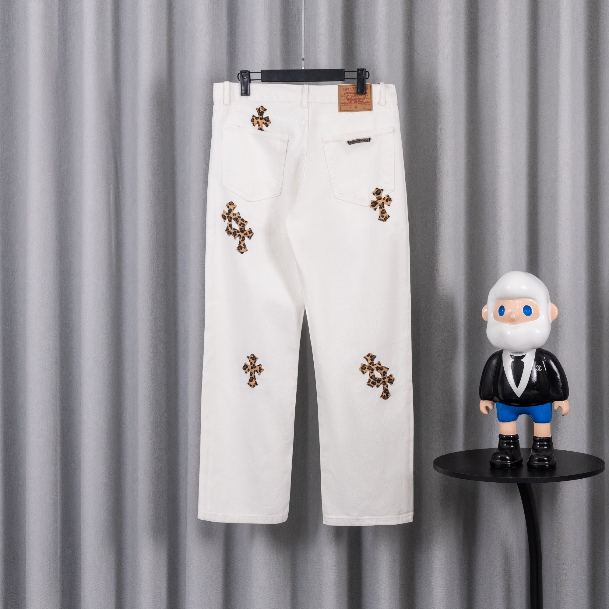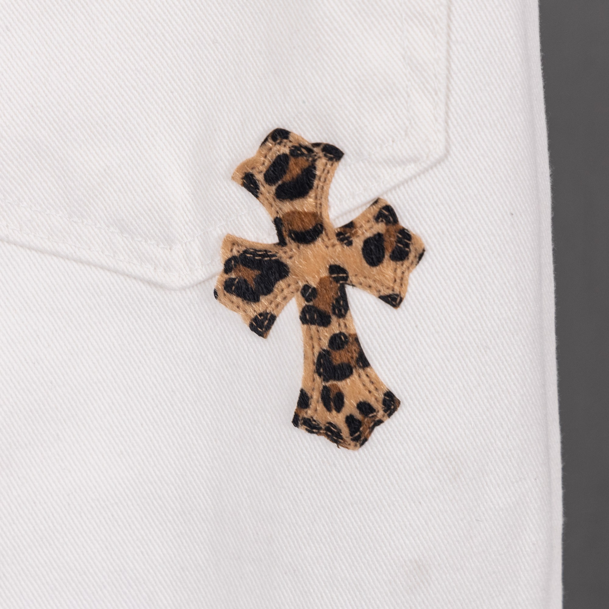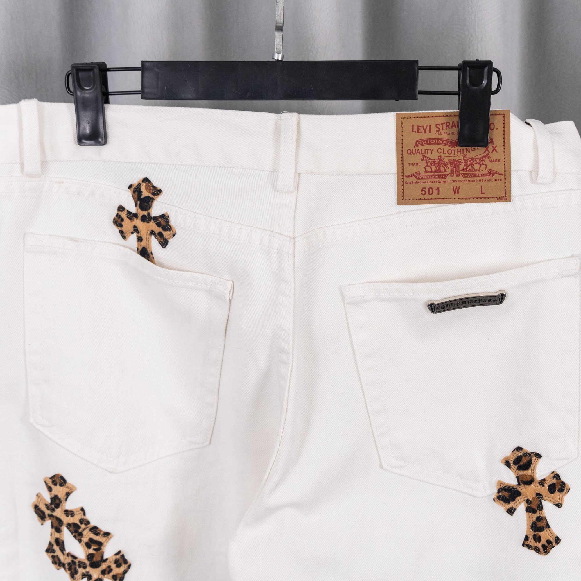 这款衣服是AAAAA 1:1 质量 (非常棒). 使用了和原版一模一样的材料. 商标部分也保持了和克罗心/Chrome Hearts一样. 图片拍摄是实物衣服拍摄, 您所收到的实物保证和我们图片一模一样.