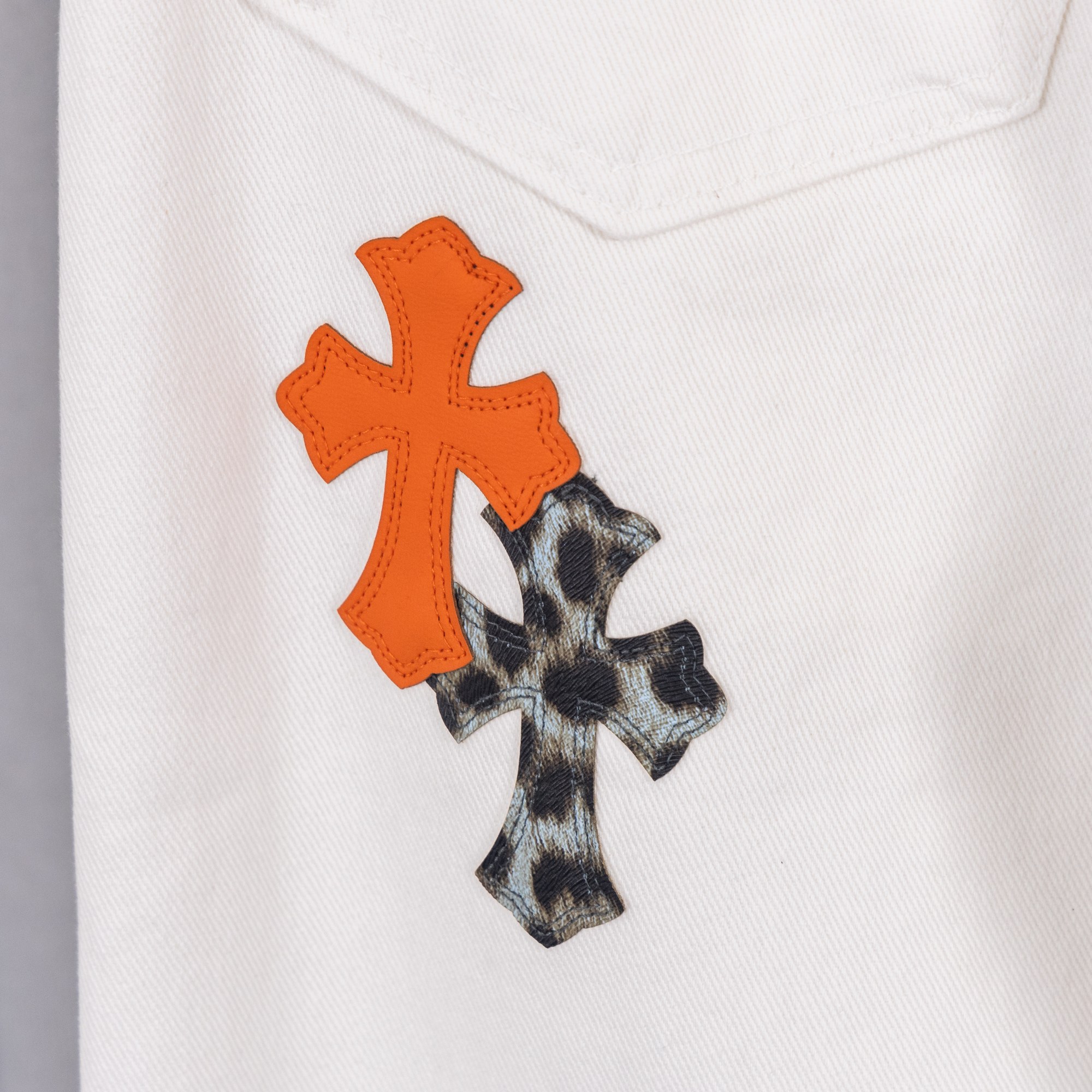 这款衣服是AAAAA 1:1 质量 (非常棒). 使用了和原版一模一样的材料. 商标部分也保持了和克罗心/Chrome Hearts一样. 图片拍摄是实物衣服拍摄, 您所收到的实物保证和我们图片一模一样.