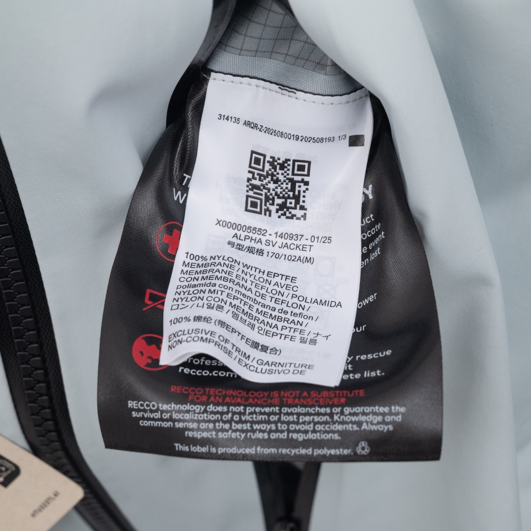 这款衣服是AAAAA 1:1 质量 (非常棒). 使用了和原版一模一样的材料. 商标部分也保持了和ARC'TERYX一样. 图片拍摄是实物衣服拍摄, 您所收到的实物保证和我们图片一模一样.
