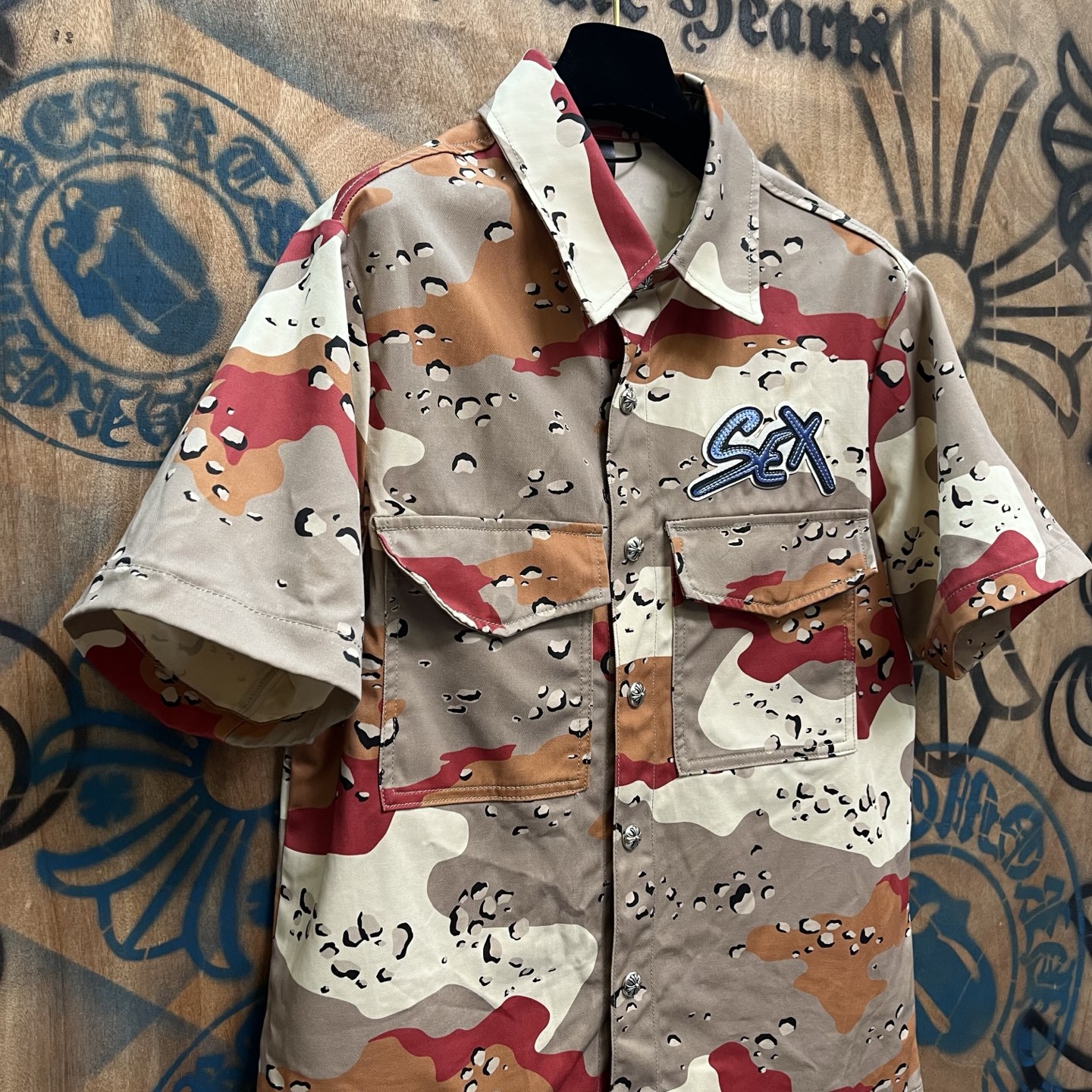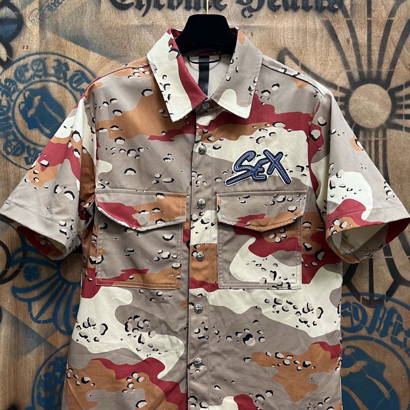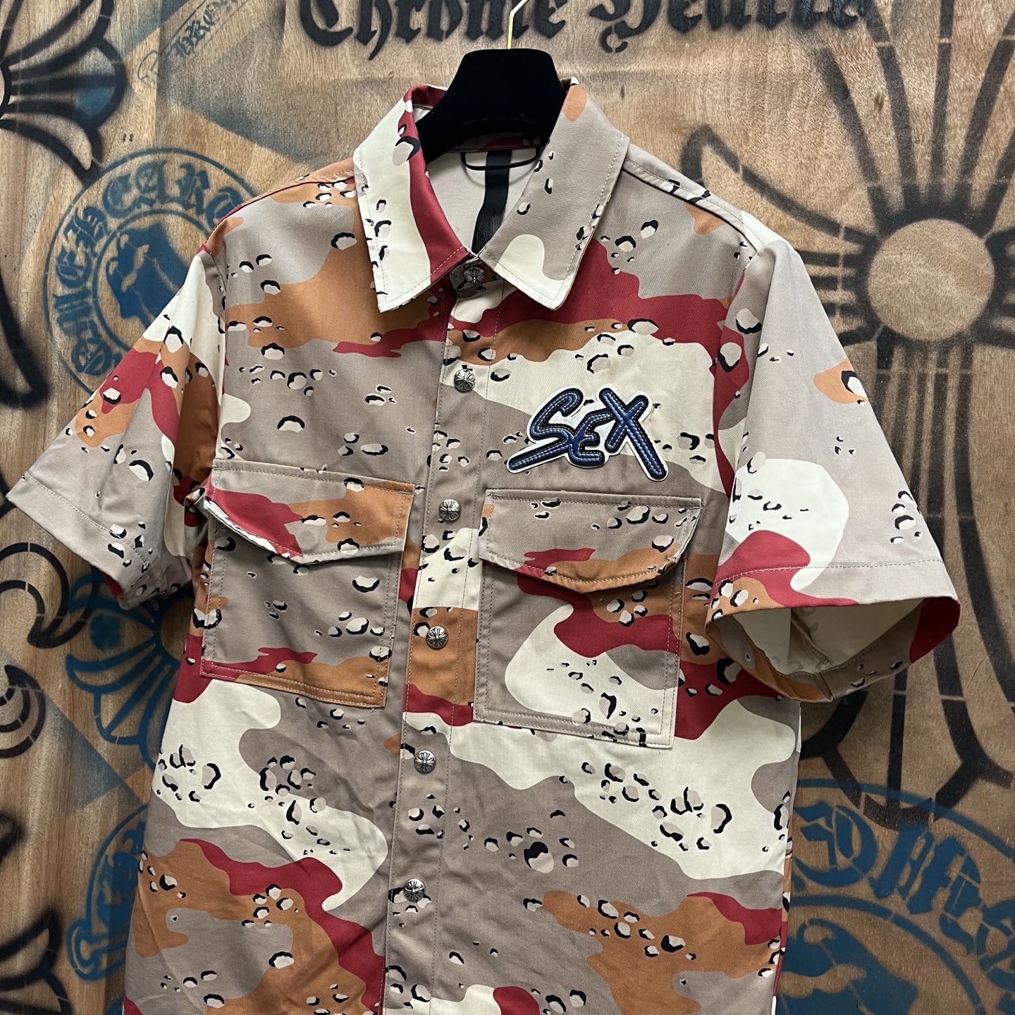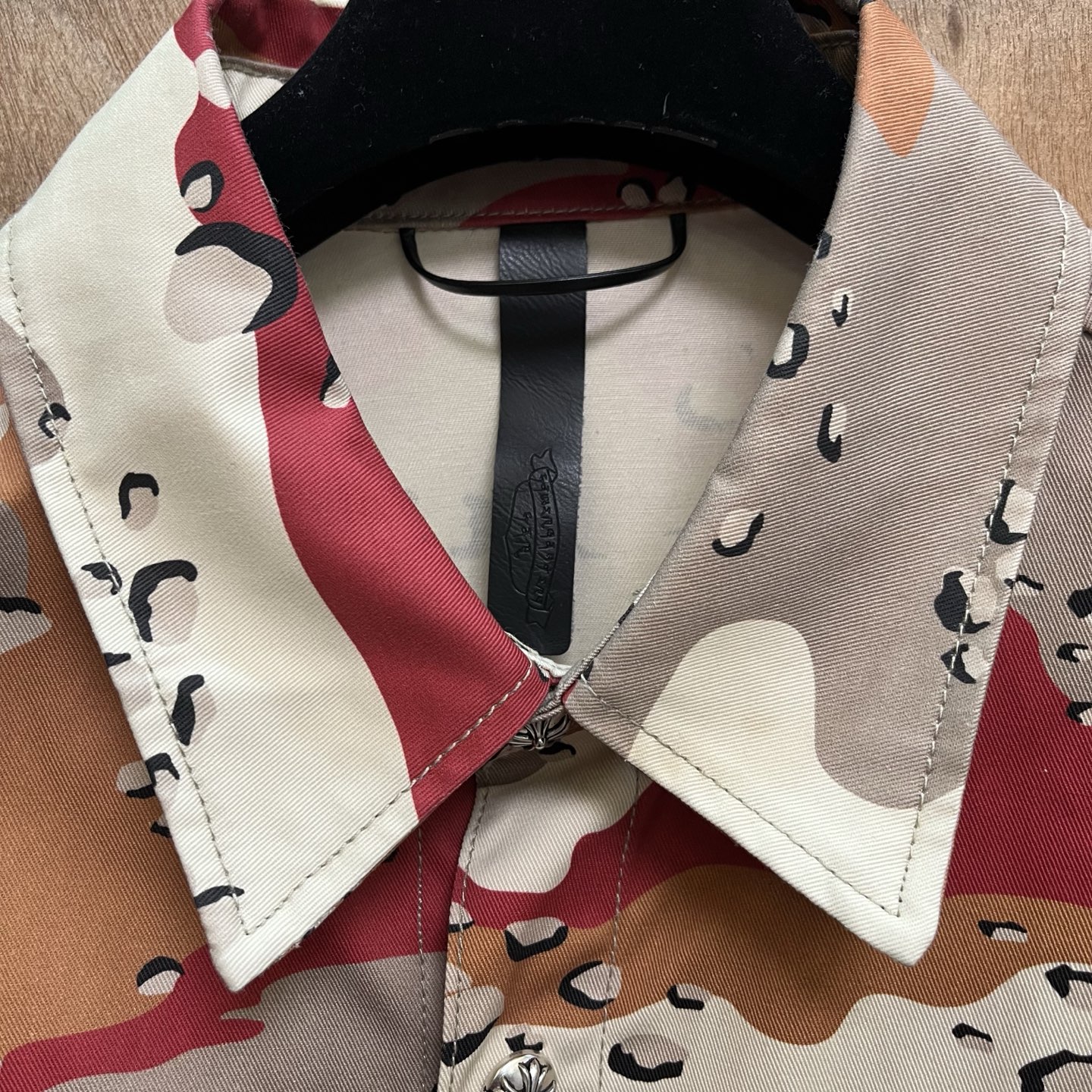 这款衣服是AAAAA 1:1 质量 (非常棒). 使用了和原版一模一样的材料. 商标部分也保持了和克罗心/Chrome Hearts一样. 图片拍摄是实物衣服拍摄, 您所收到的实物保证和我们图片一模一样.