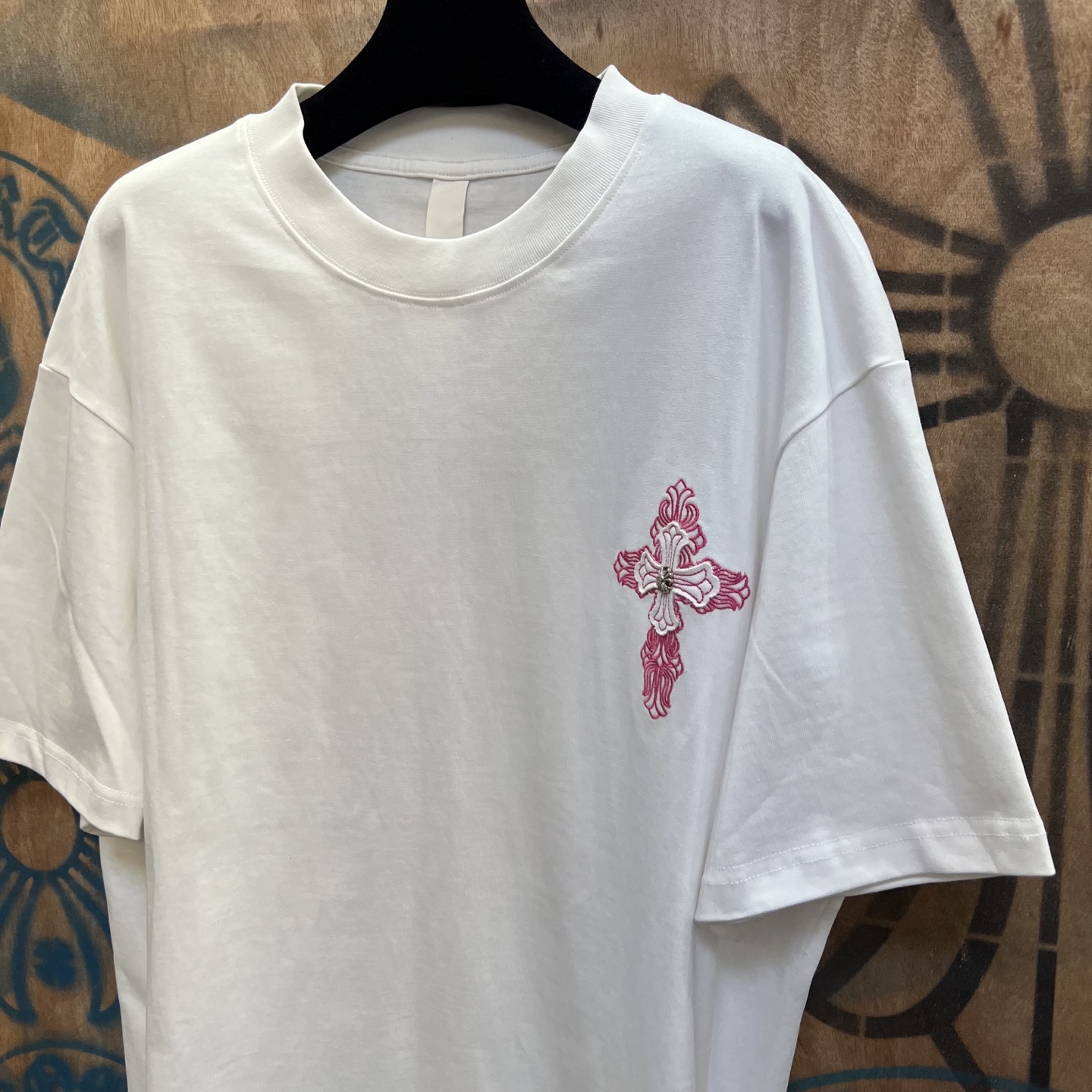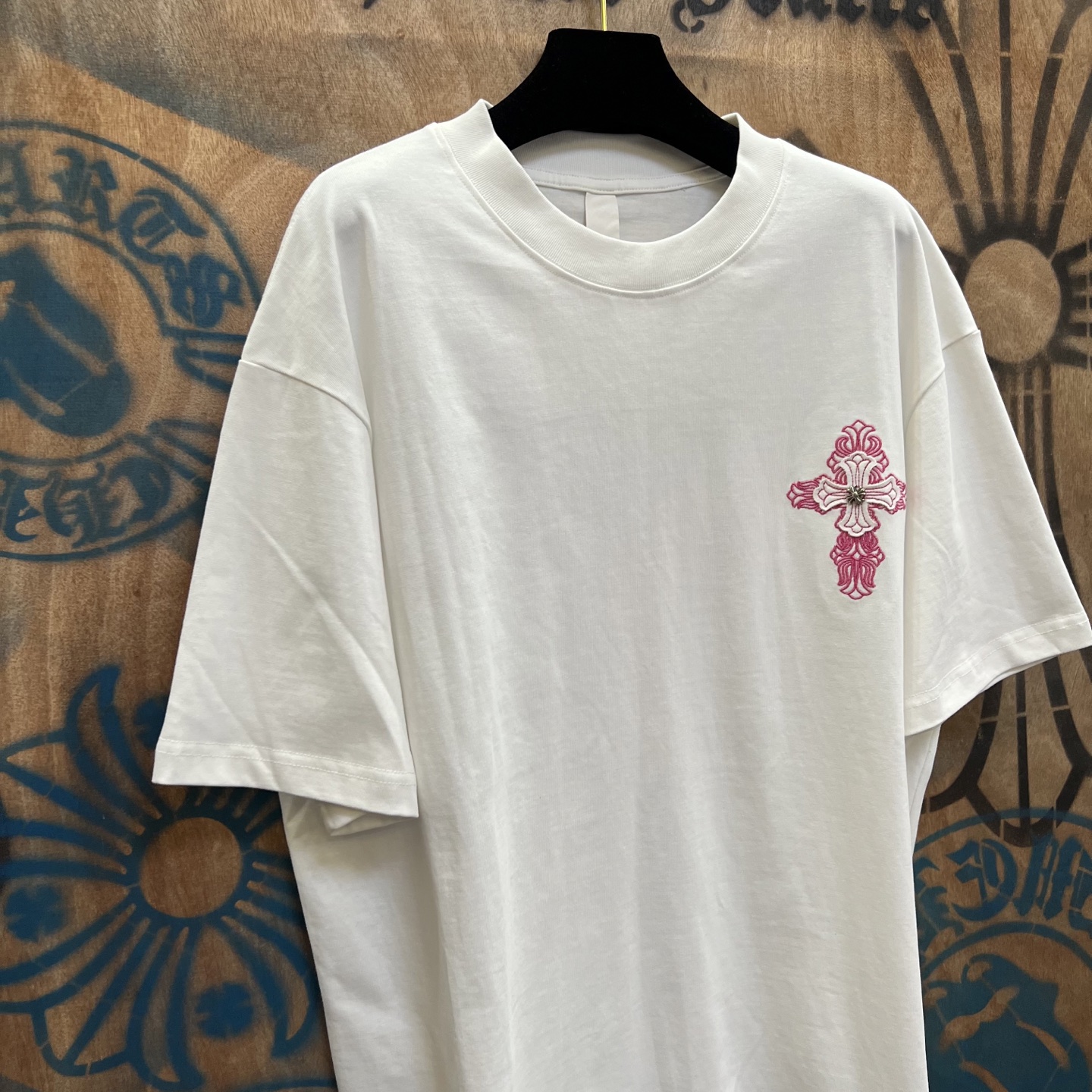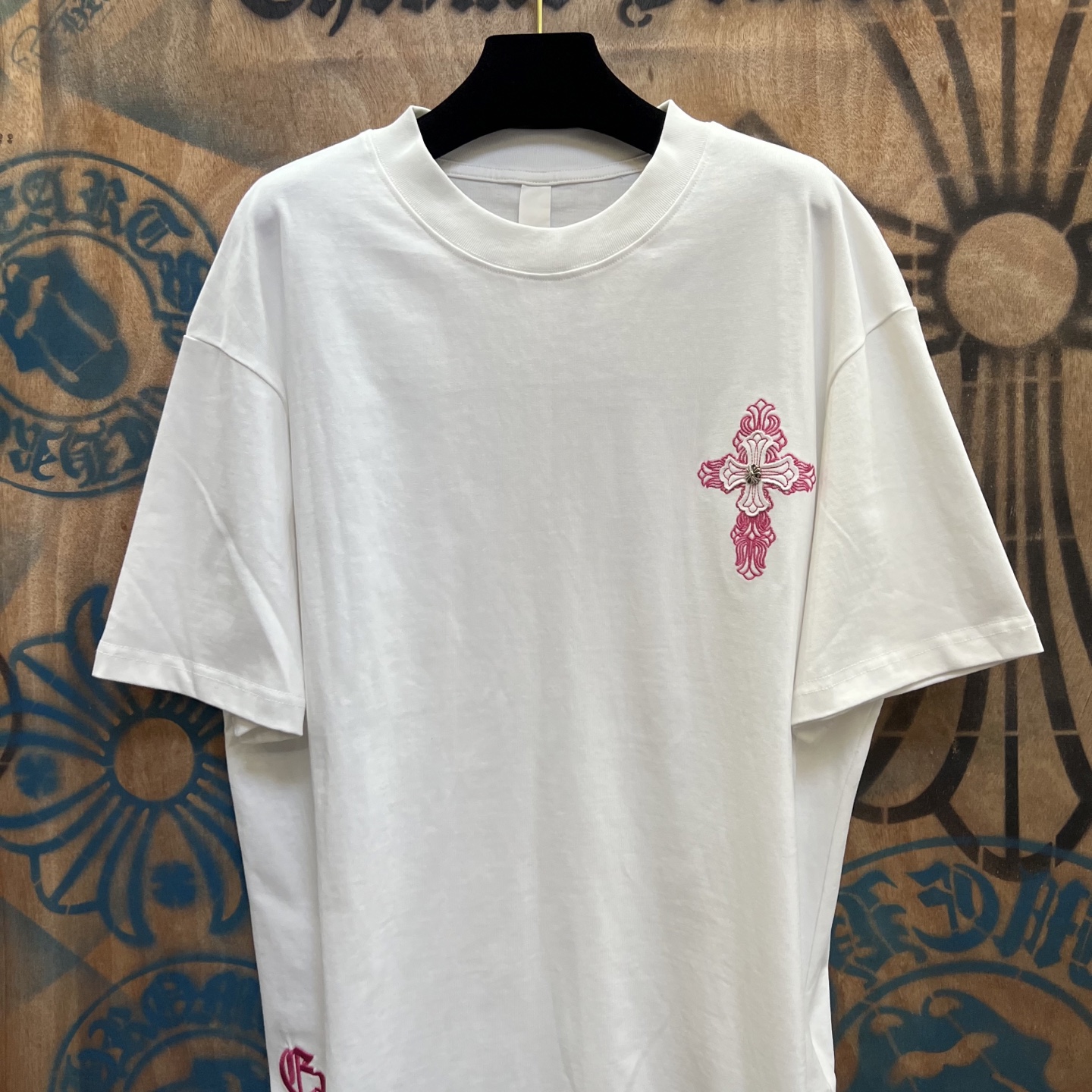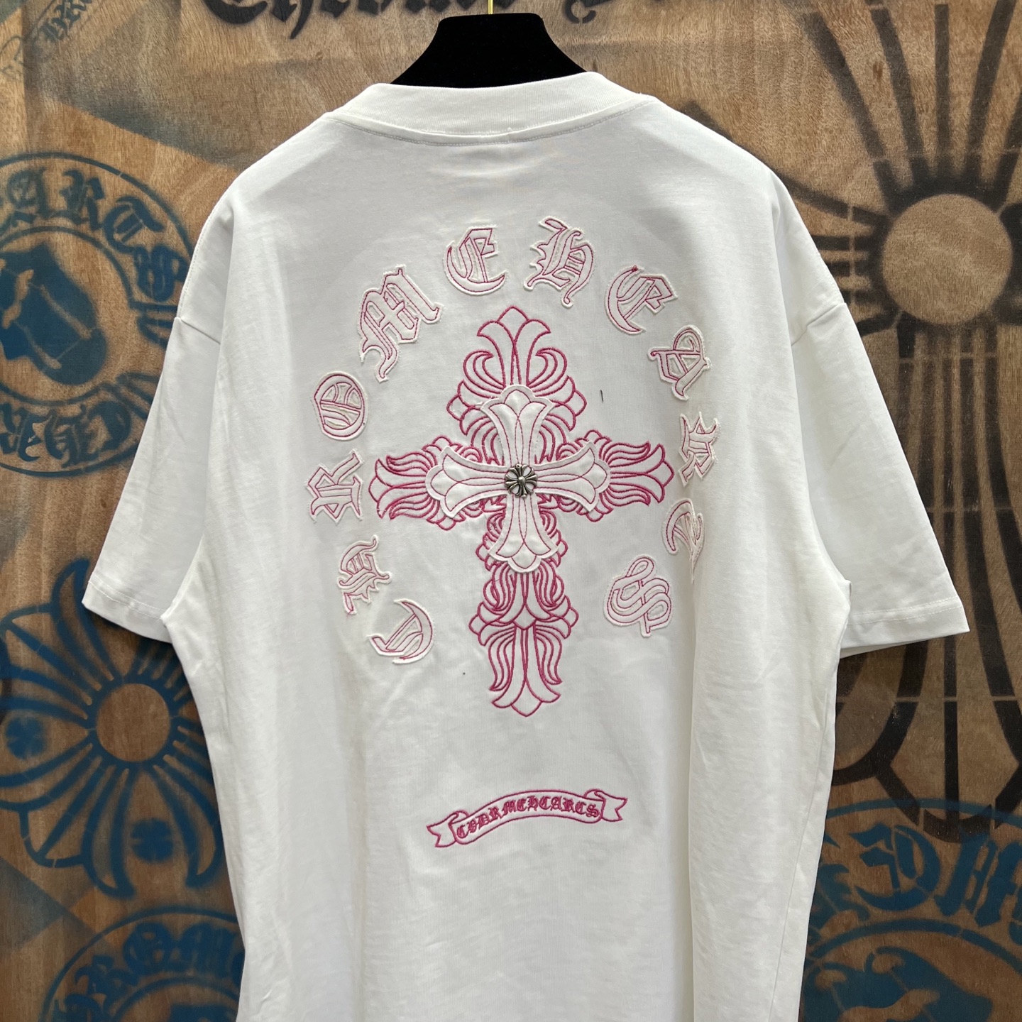 这款衣服是AAAAA 1:1 质量 (非常棒). 使用了和原版一模一样的材料. 商标部分也保持了和克罗心/Chrome Hearts一样. 图片拍摄是实物衣服拍摄, 您所收到的实物保证和我们图片一模一样.