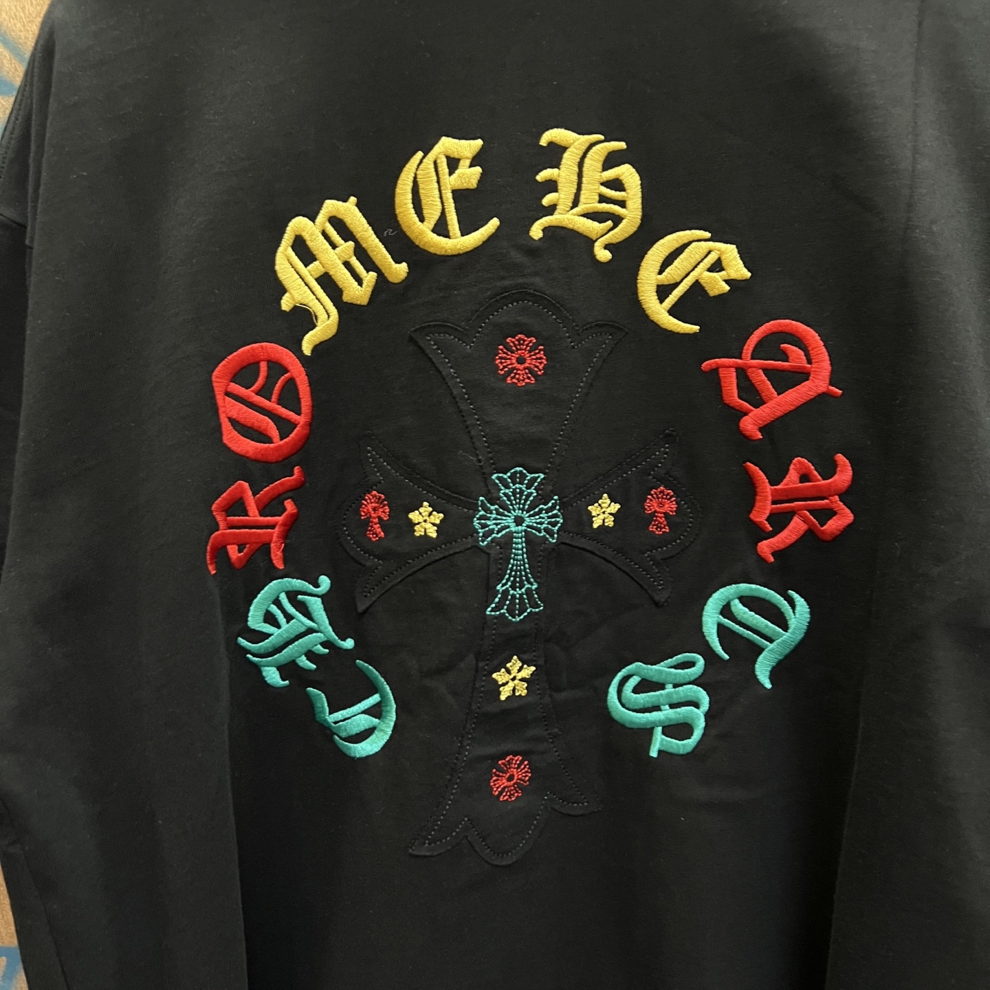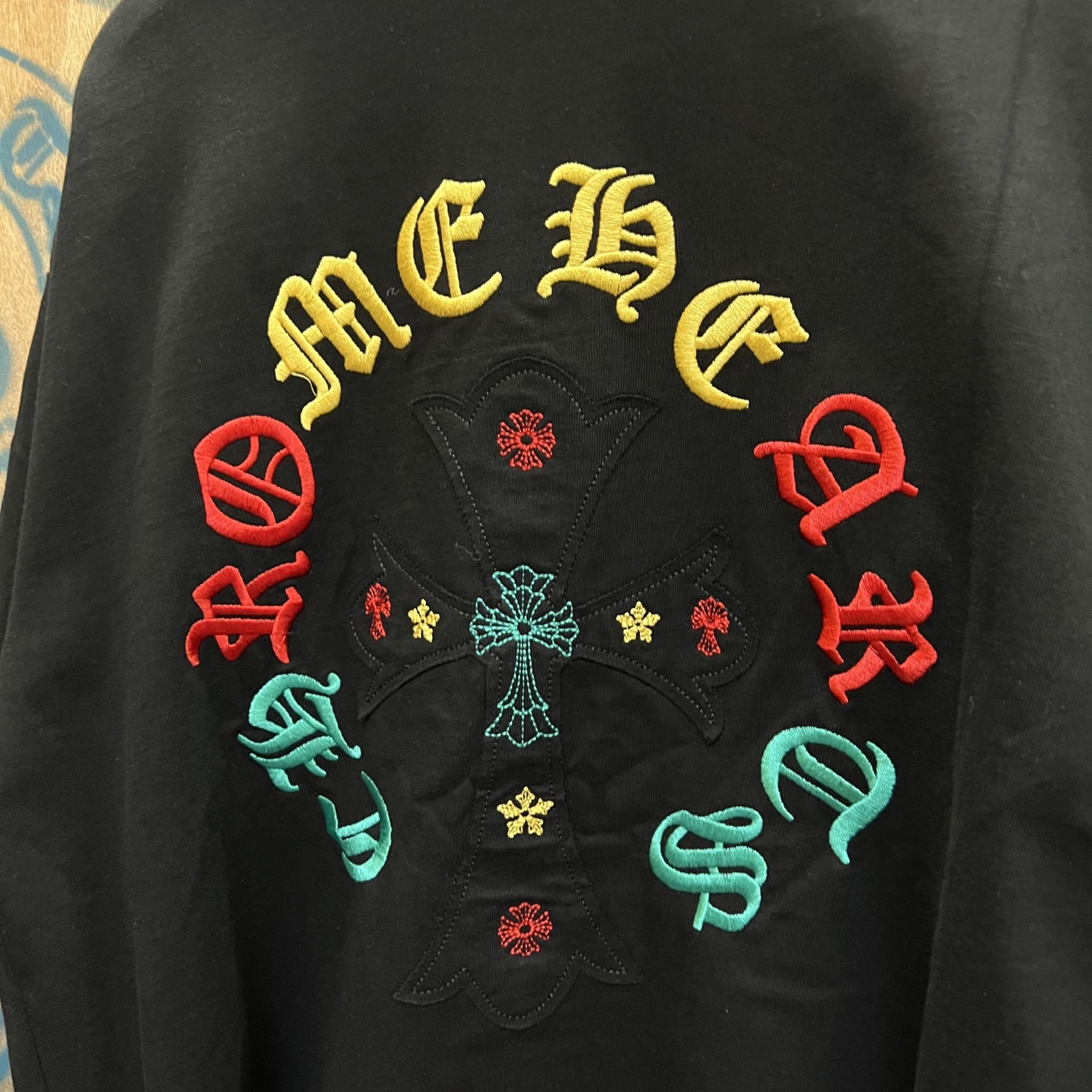 这款衣服是AAAAA 1:1 质量 (非常棒). 使用了和原版一模一样的材料. 商标部分也保持了和克罗心/Chrome Hearts一样. 图片拍摄是实物衣服拍摄, 您所收到的实物保证和我们图片一模一样.