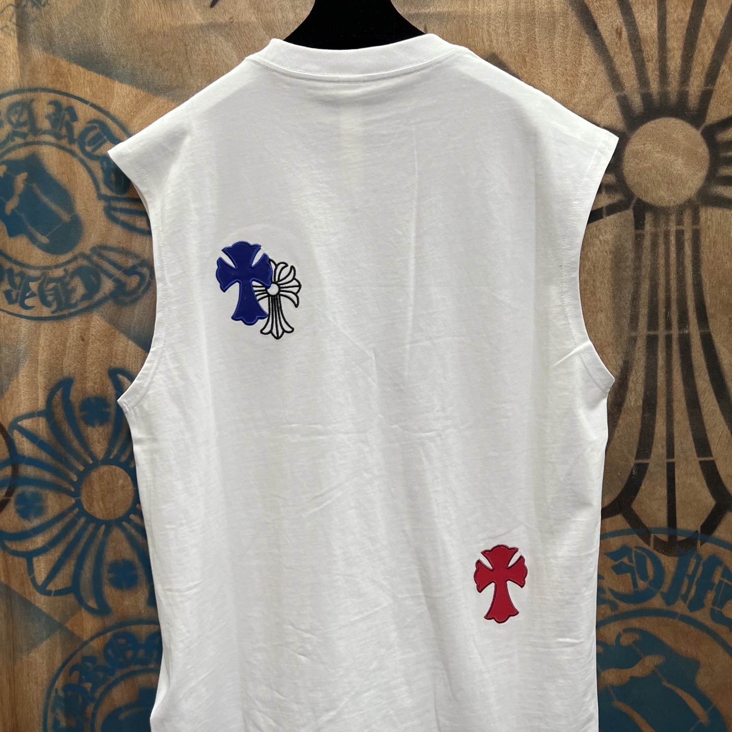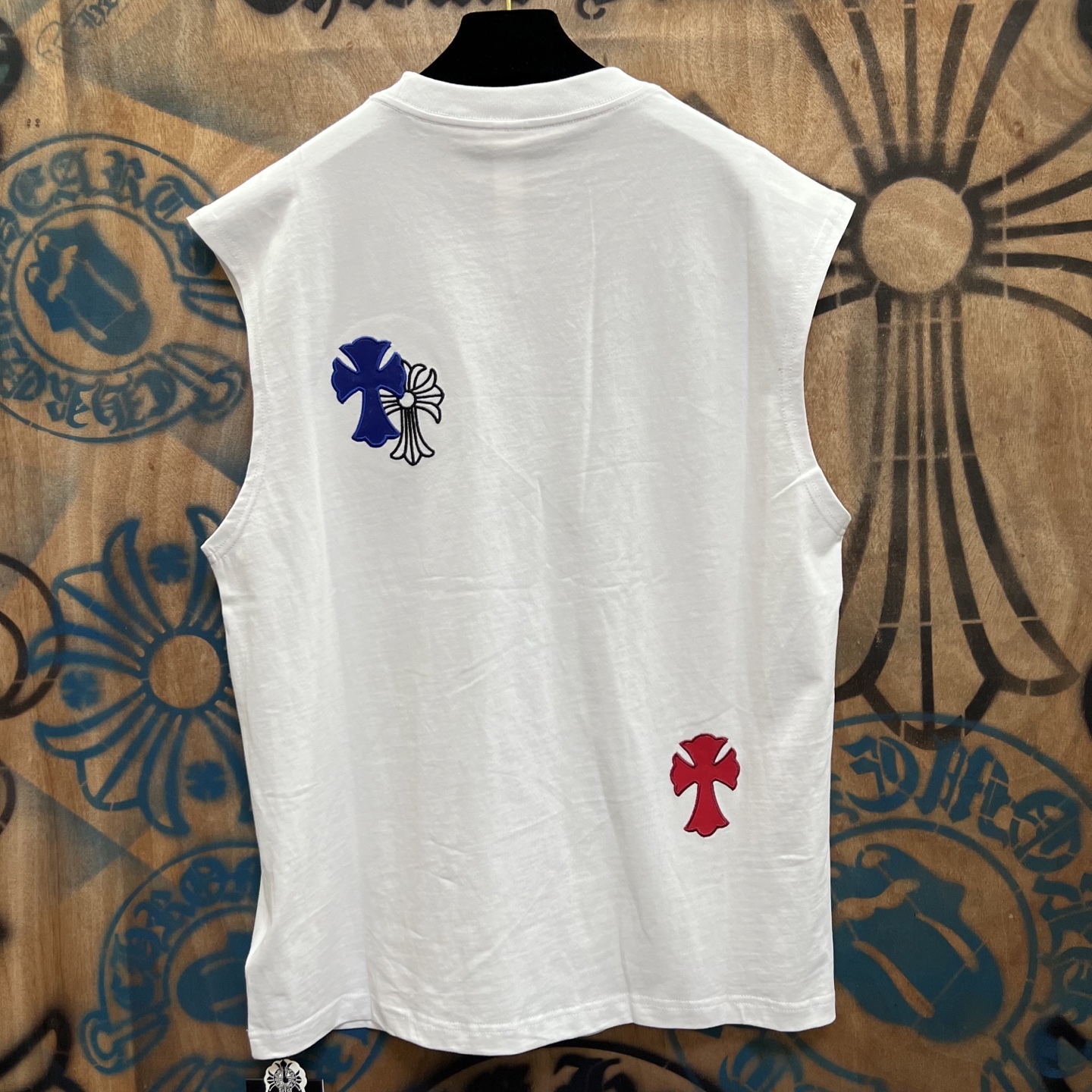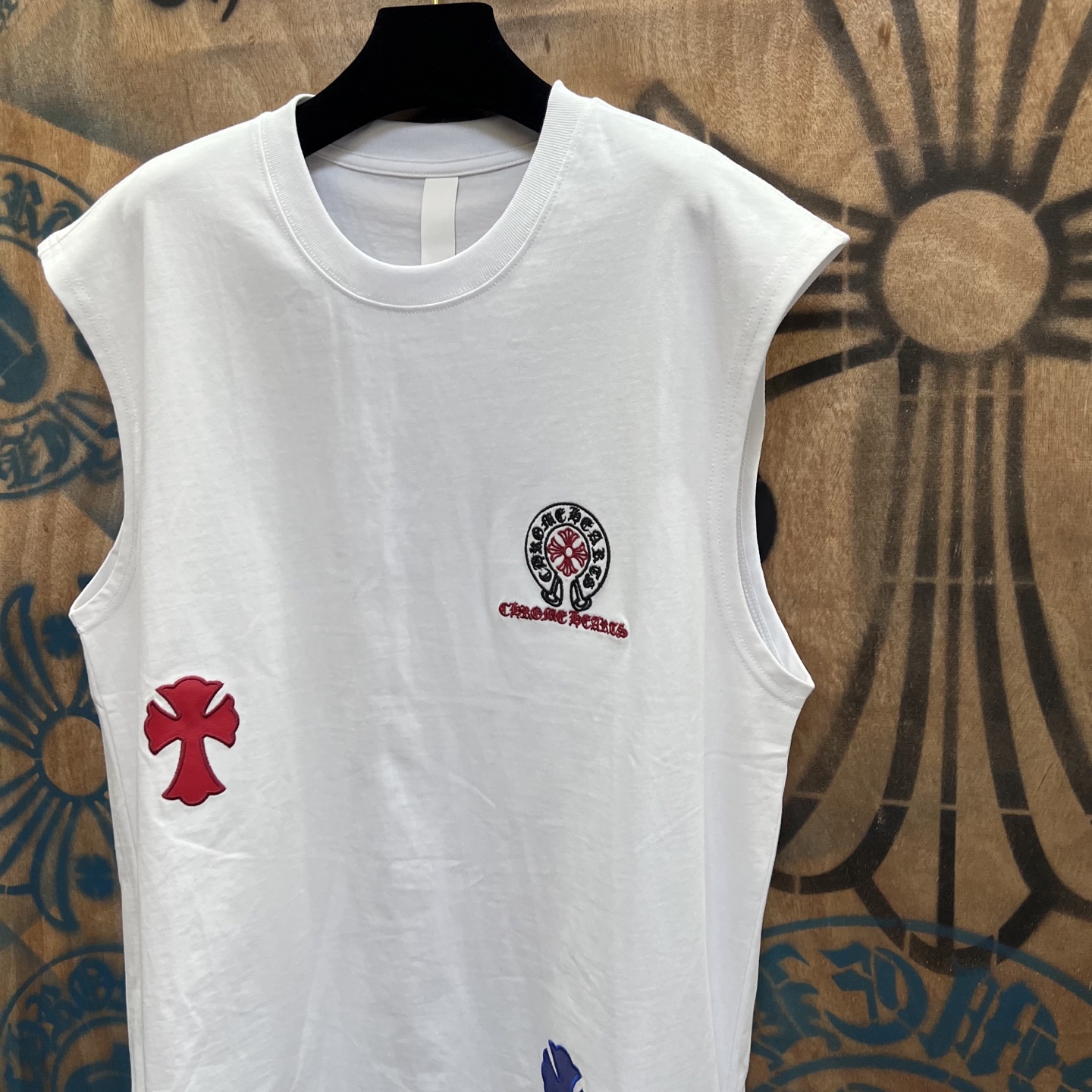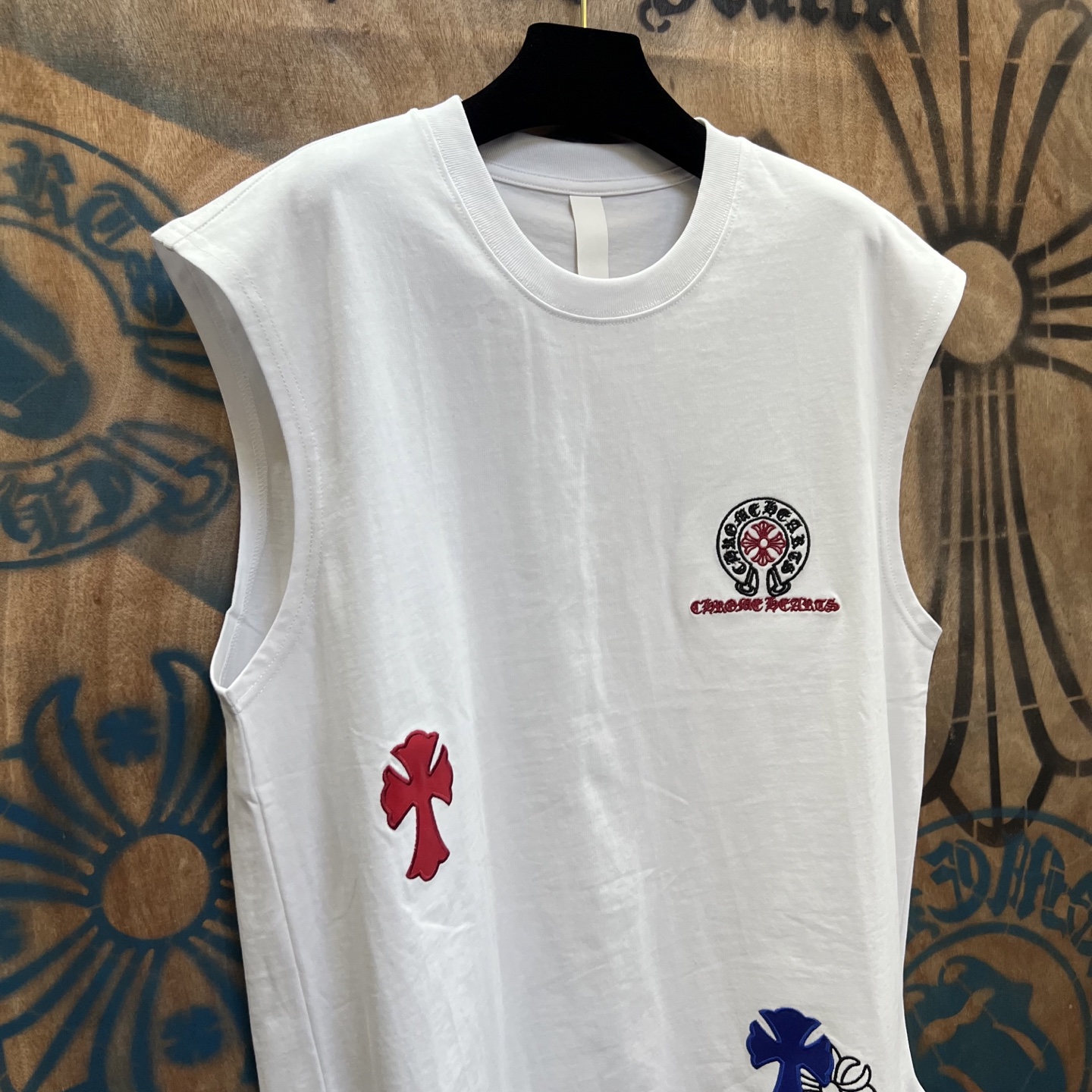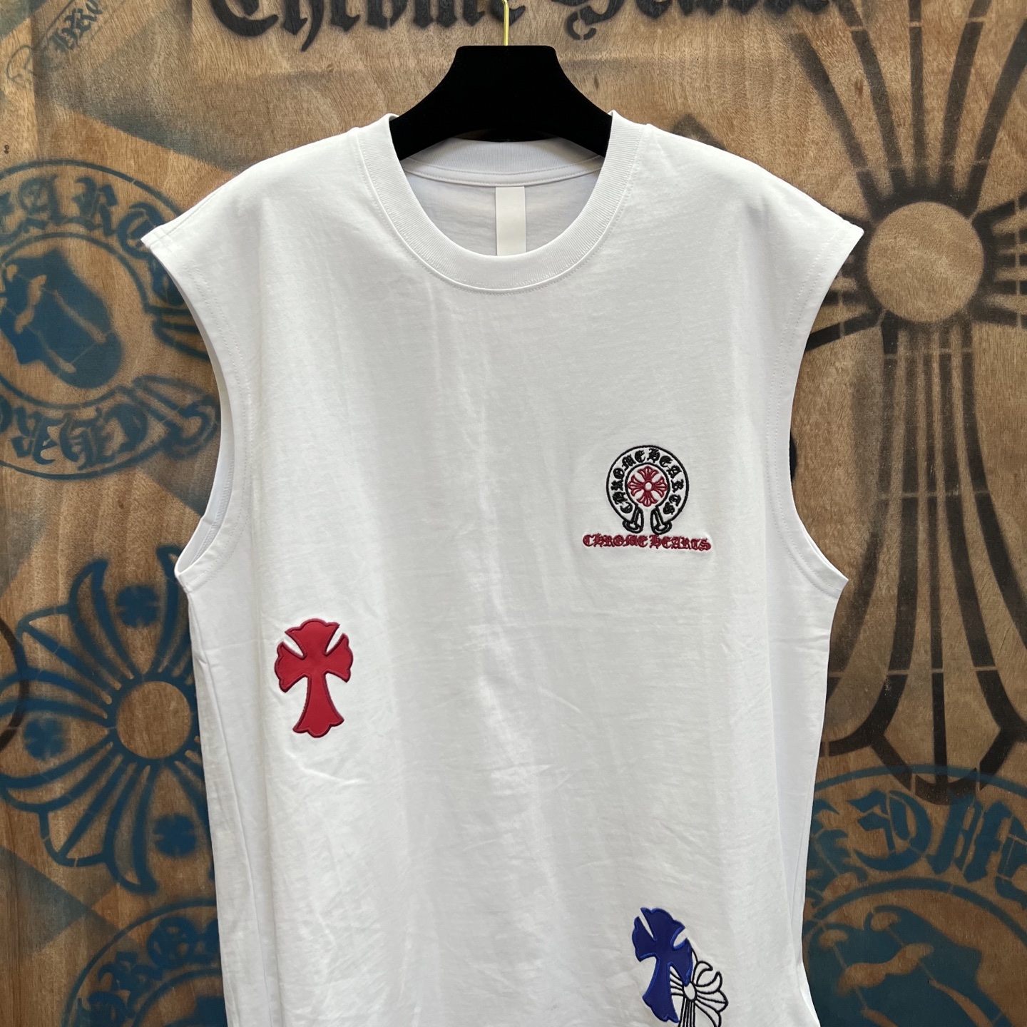 这款衣服是AAAAA 1:1 质量 (非常棒). 使用了和原版一模一样的材料. 商标部分也保持了和克罗心/Chrome Hearts一样. 图片拍摄是实物衣服拍摄, 您所收到的实物保证和我们图片一模一样.