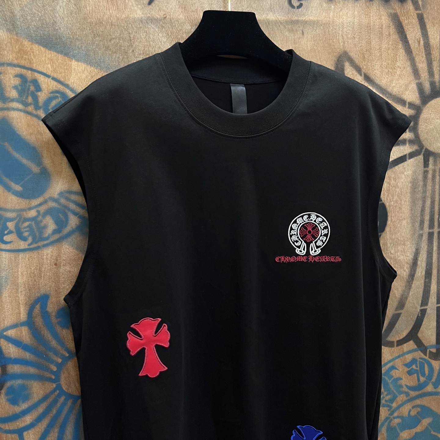 这款衣服是AAAAA 1:1 质量 (非常棒). 使用了和原版一模一样的材料. 商标部分也保持了和克罗心/Chrome Hearts一样. 图片拍摄是实物衣服拍摄, 您所收到的实物保证和我们图片一模一样.
