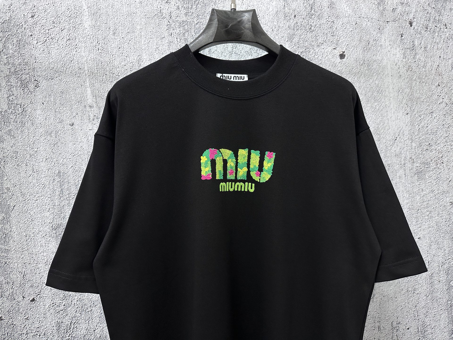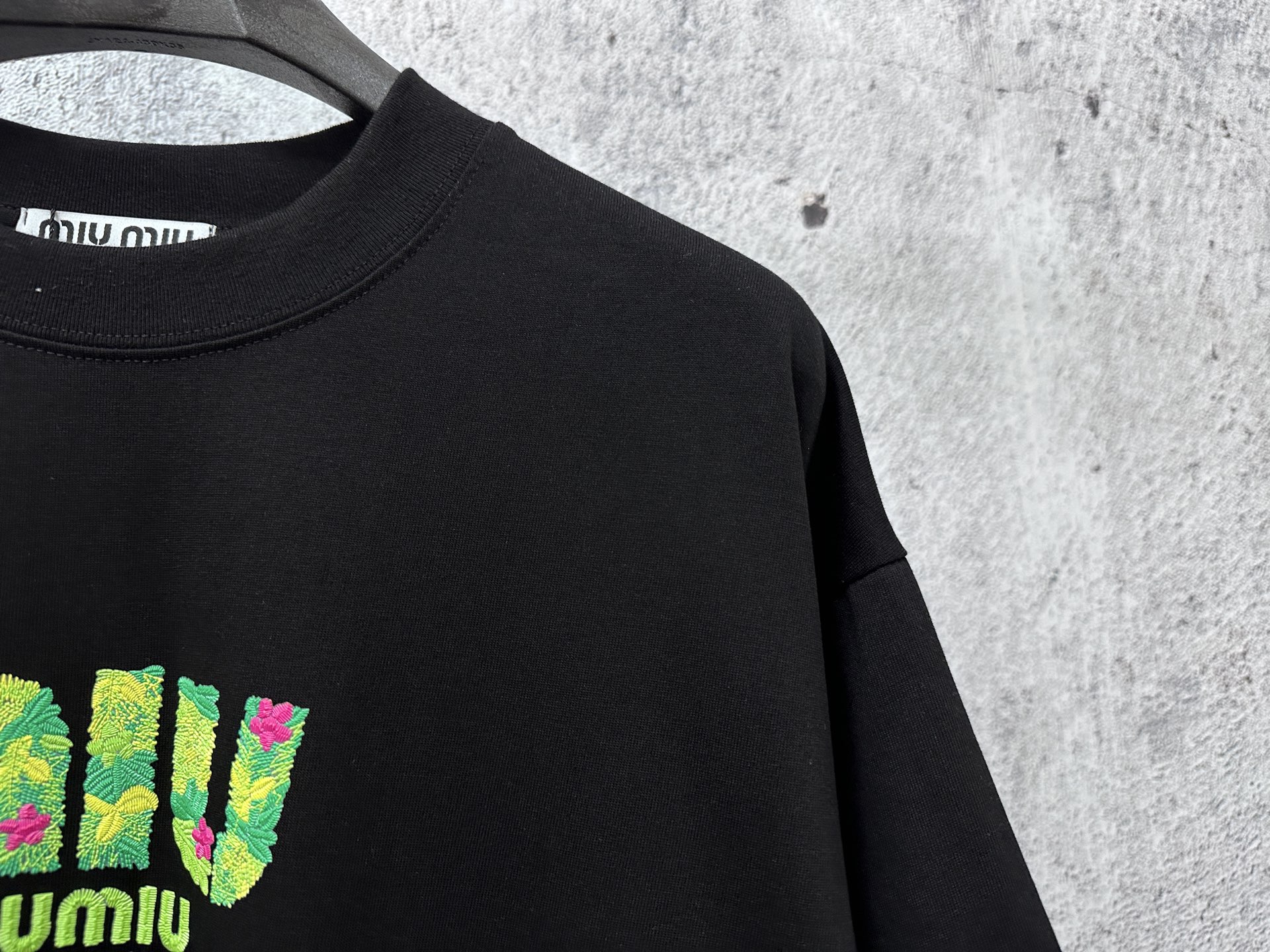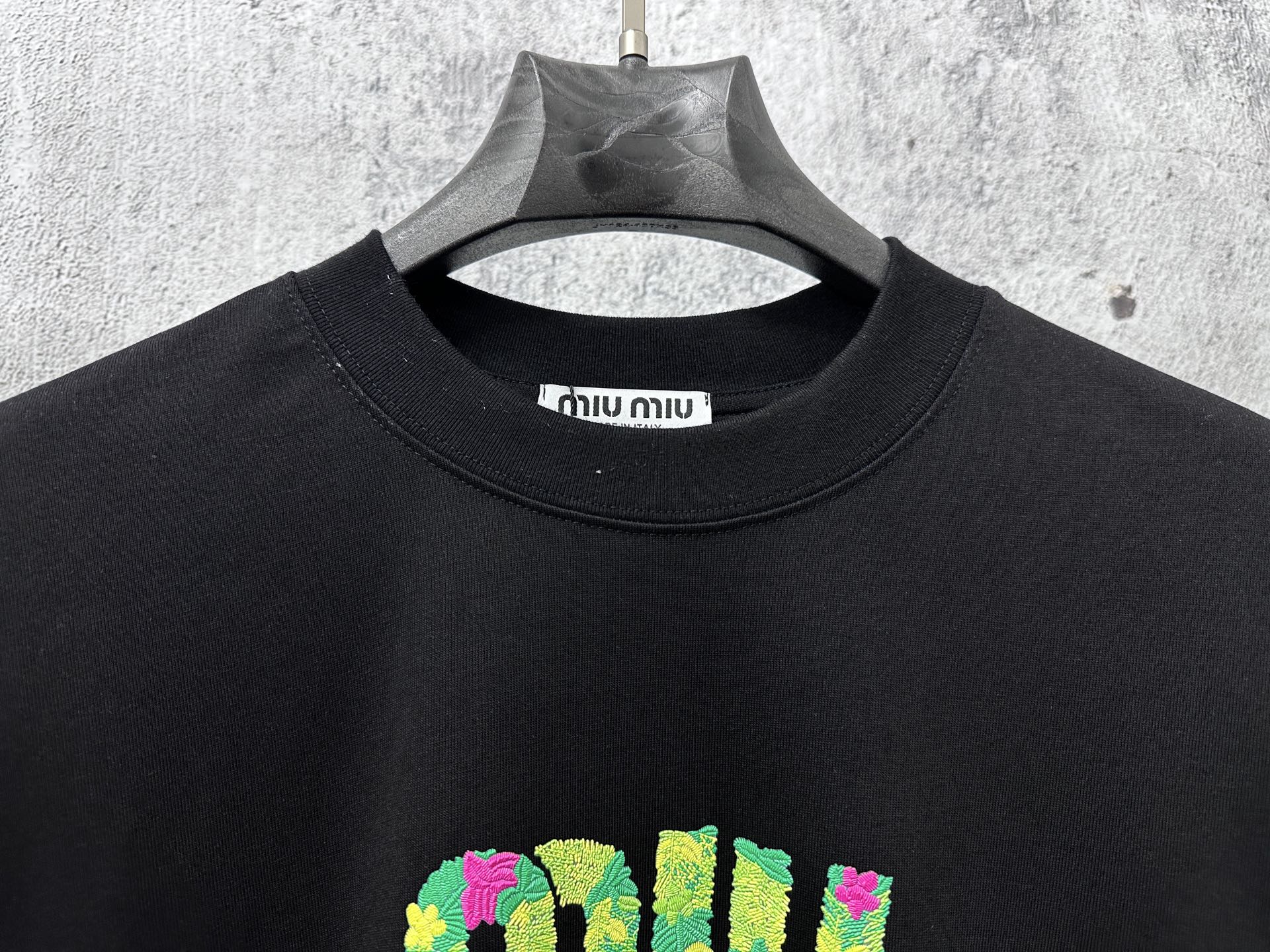 这款衣服是AAAAA 1:1 质量 (非常棒). 使用了和原版一模一样的材料. 商标部分也保持了和缪缪/Miu Miu一样. 图片拍摄是实物衣服拍摄, 您所收到的实物保证和我们图片一模一样.