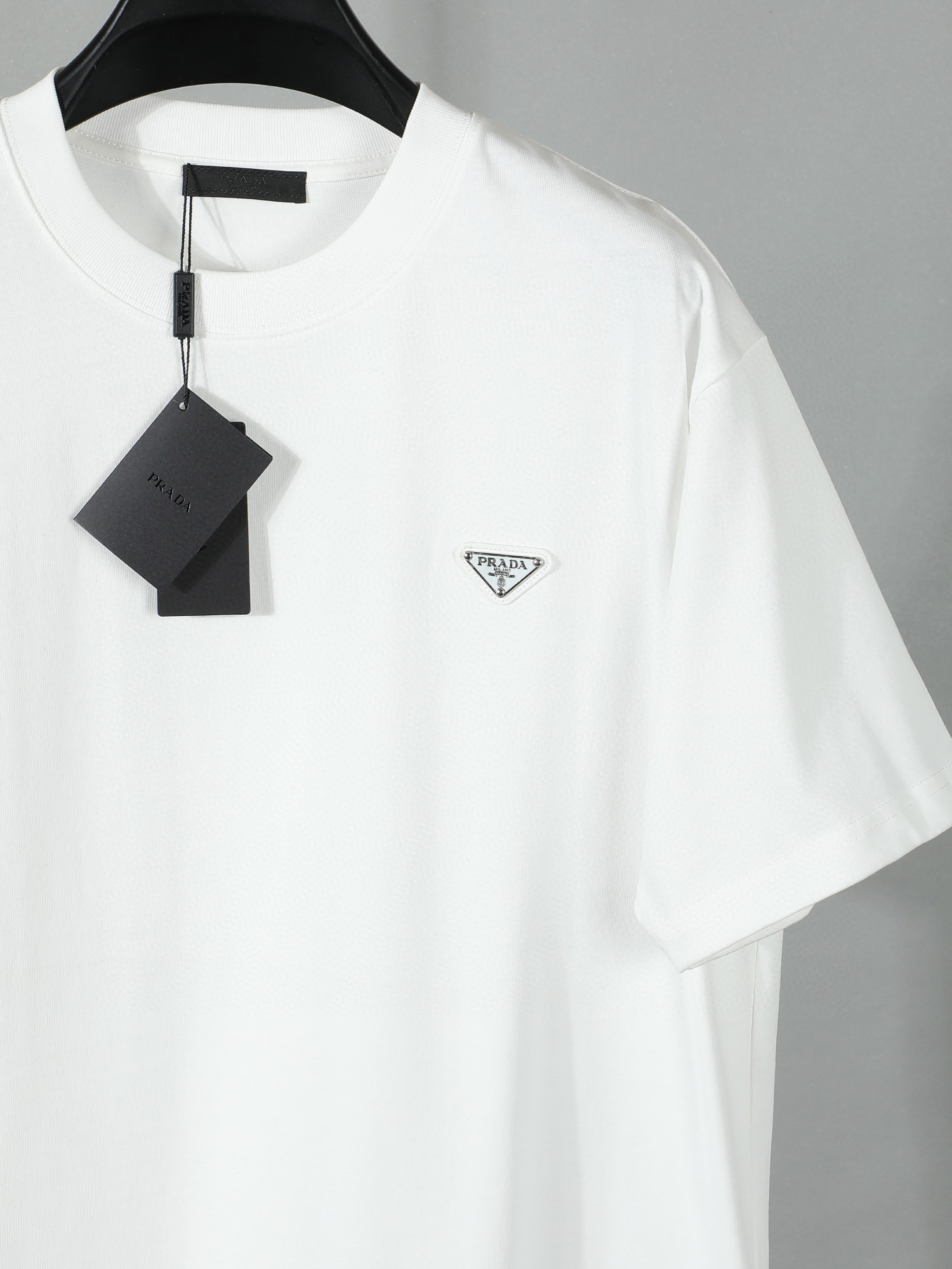 这款衣服是AAAAA 1:1 质量 (非常棒). 使用了和原版一模一样的材料. 商标部分也保持了和普拉达/Prada一样. 图片拍摄是实物衣服拍摄, 您所收到的实物保证和我们图片一模一样.