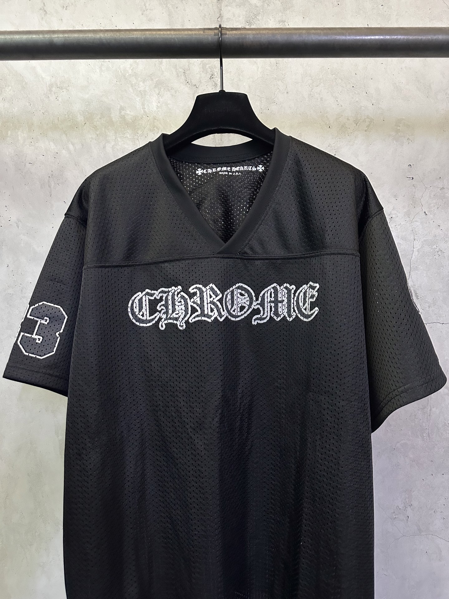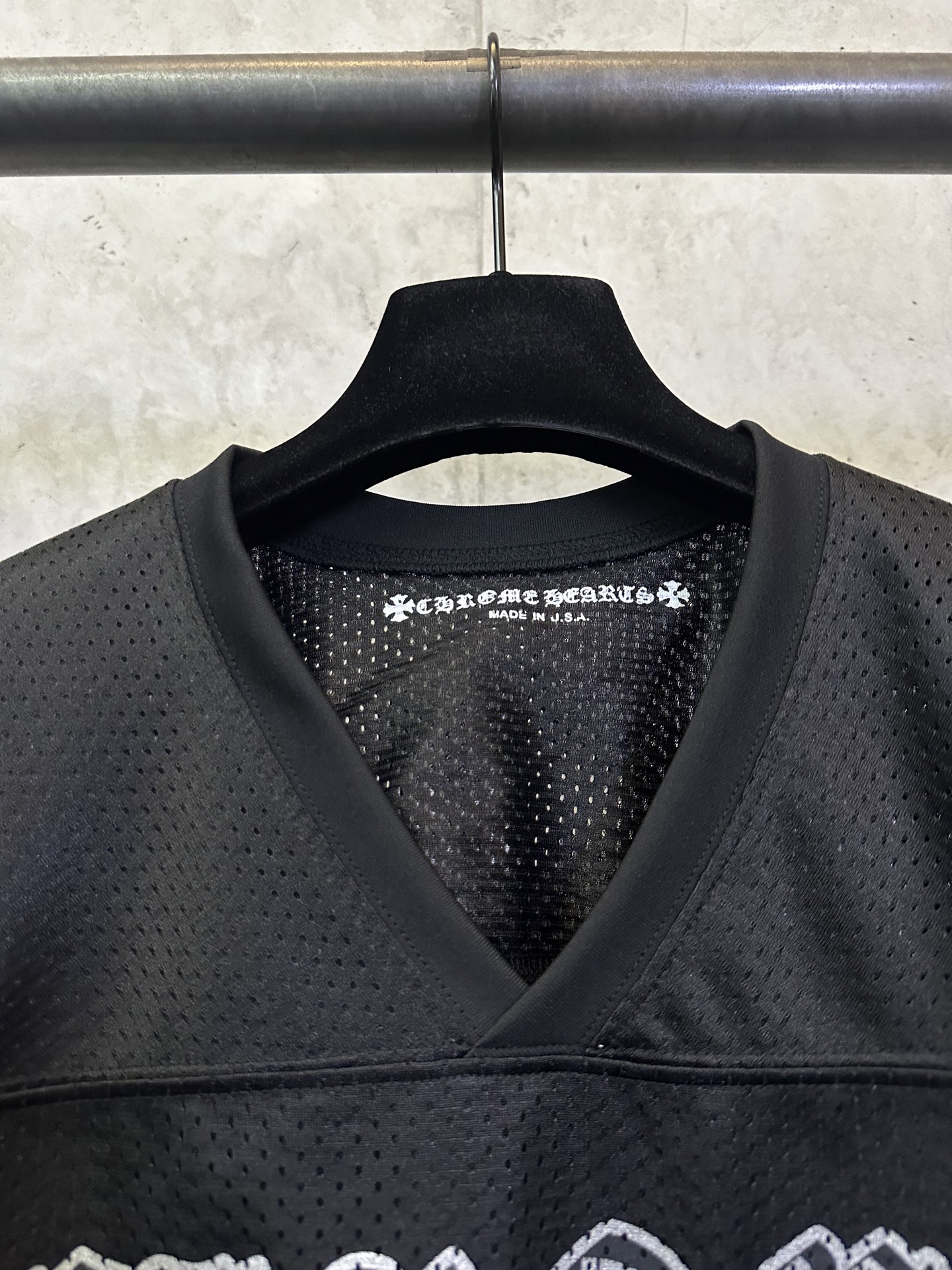 这款衣服是AAAAA 1:1 质量 (非常棒). 使用了和原版一模一样的材料. 商标部分也保持了和克罗心/Chrome Hearts一样. 图片拍摄是实物衣服拍摄, 您所收到的实物保证和我们图片一模一样.