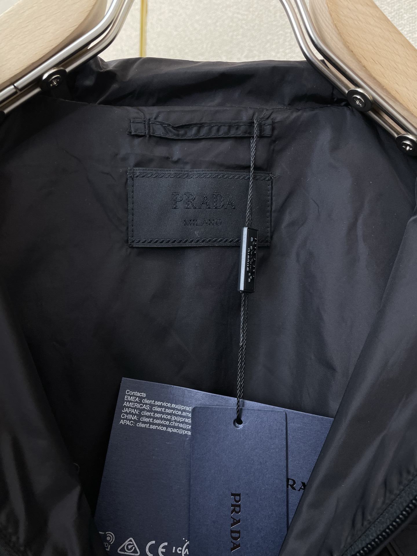 这款衣服是AAAAA 1:1 质量 (非常棒). 使用了和原版一模一样的材料. 商标部分也保持了和普拉达/Prada一样. 图片拍摄是实物衣服拍摄, 您所收到的实物保证和我们图片一模一样.