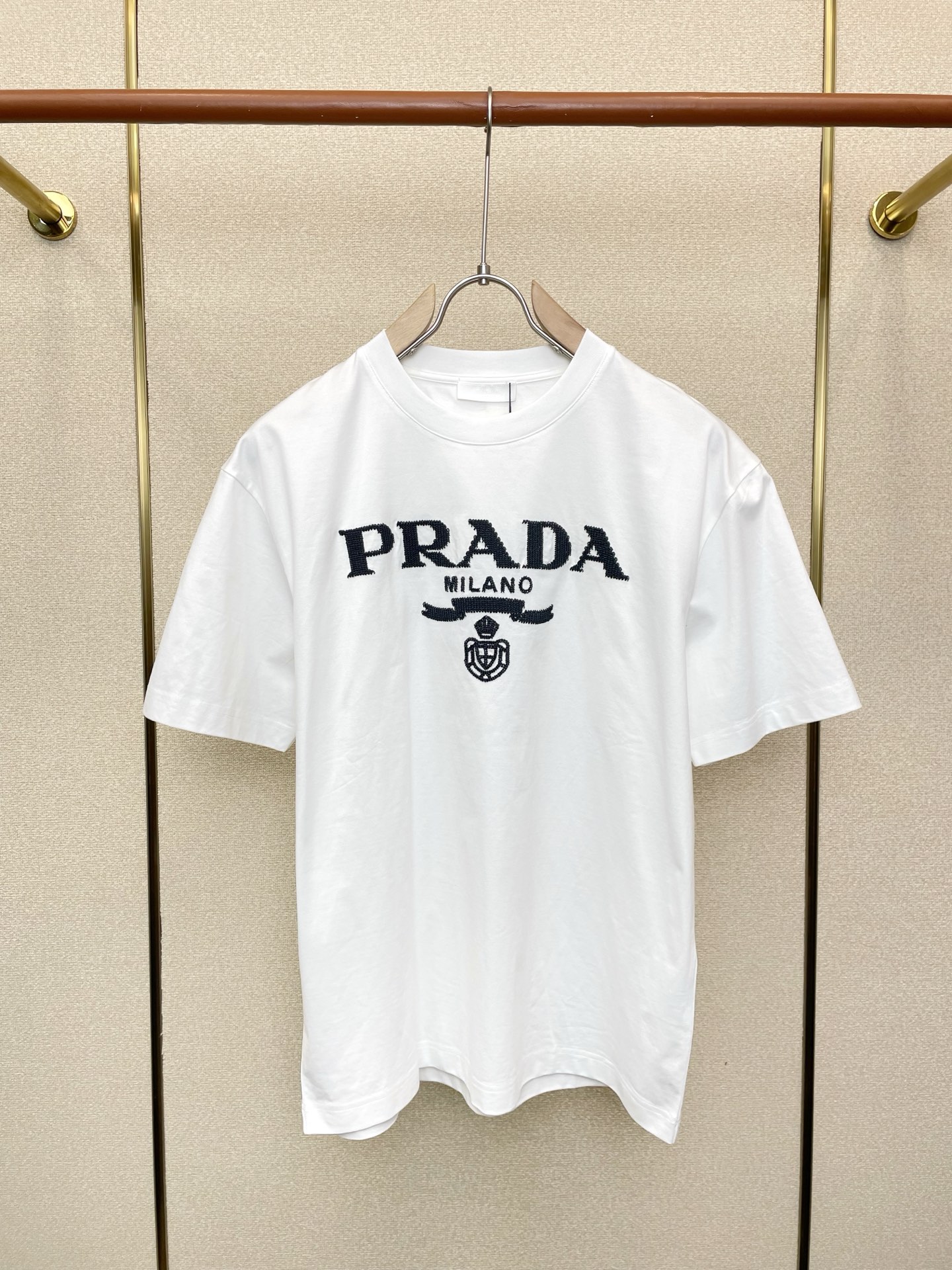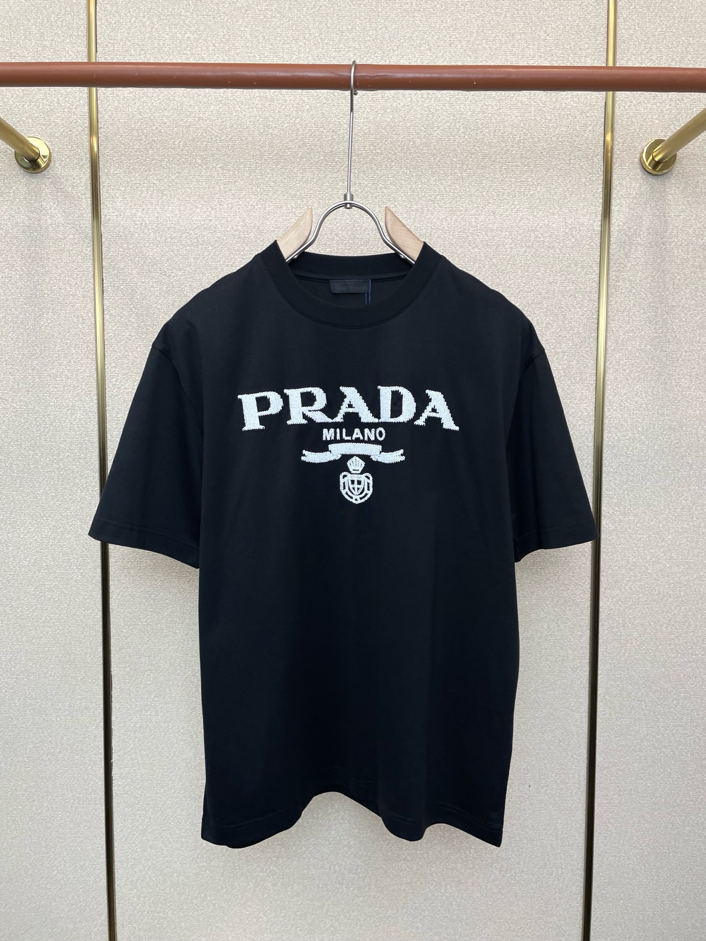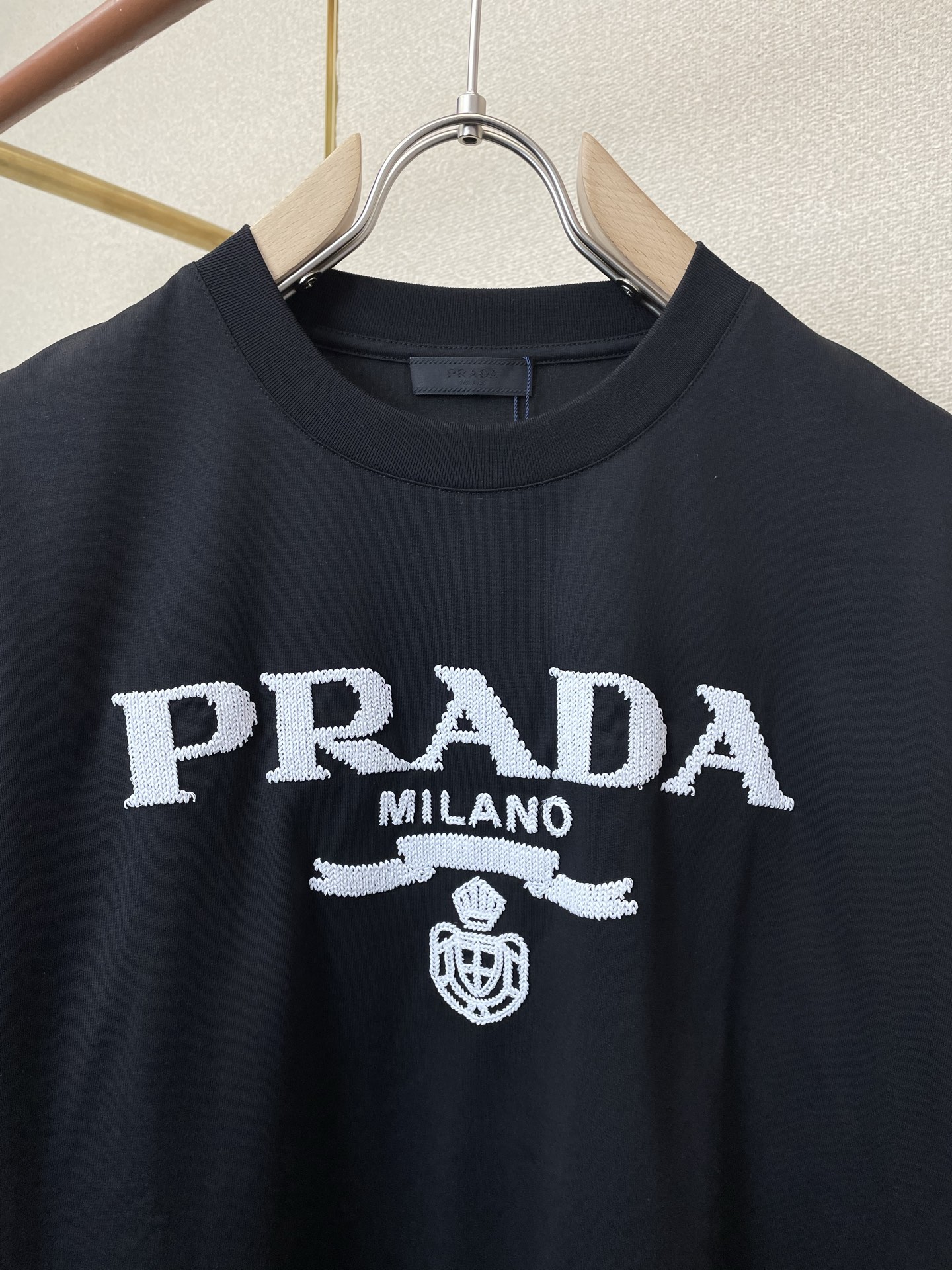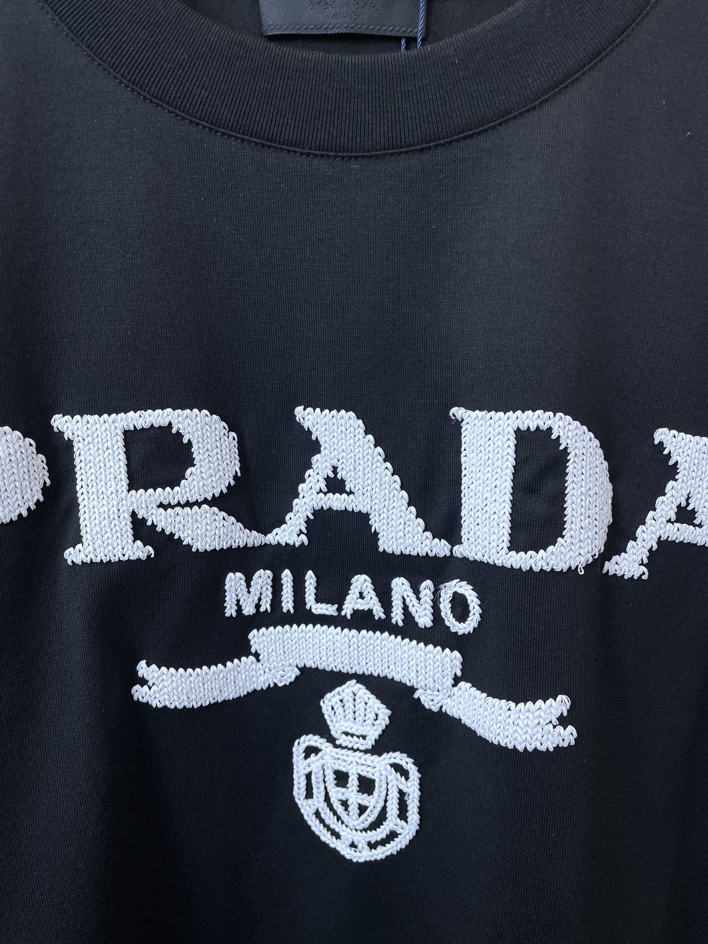 这款衣服是AAAAA 1:1 质量 (非常棒). 使用了和原版一模一样的材料. 商标部分也保持了和普拉达/Prada一样. 图片拍摄是实物衣服拍摄, 您所收到的实物保证和我们图片一模一样.