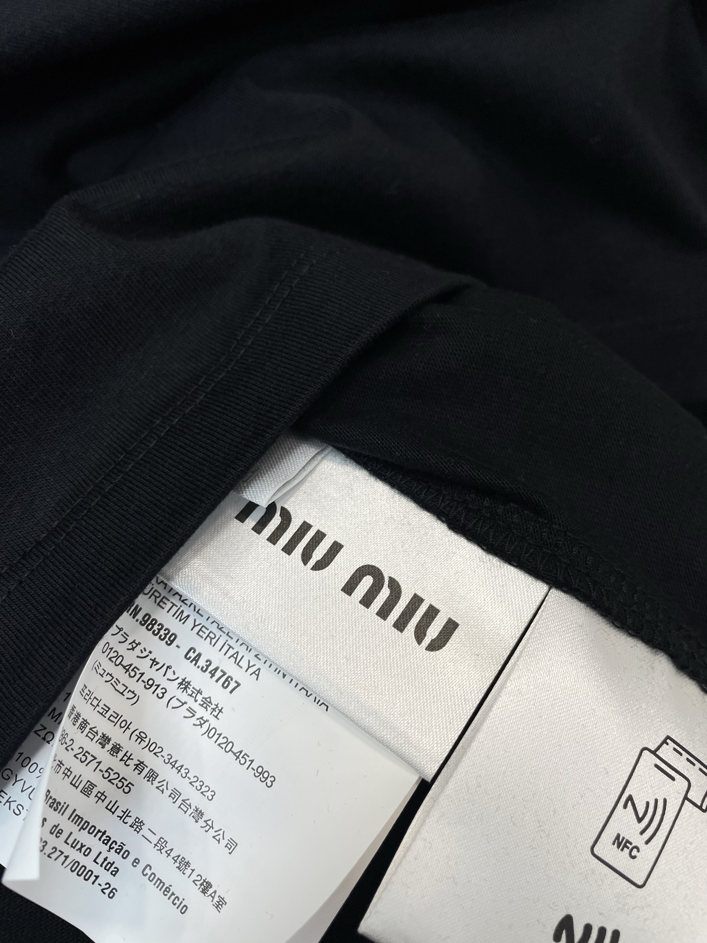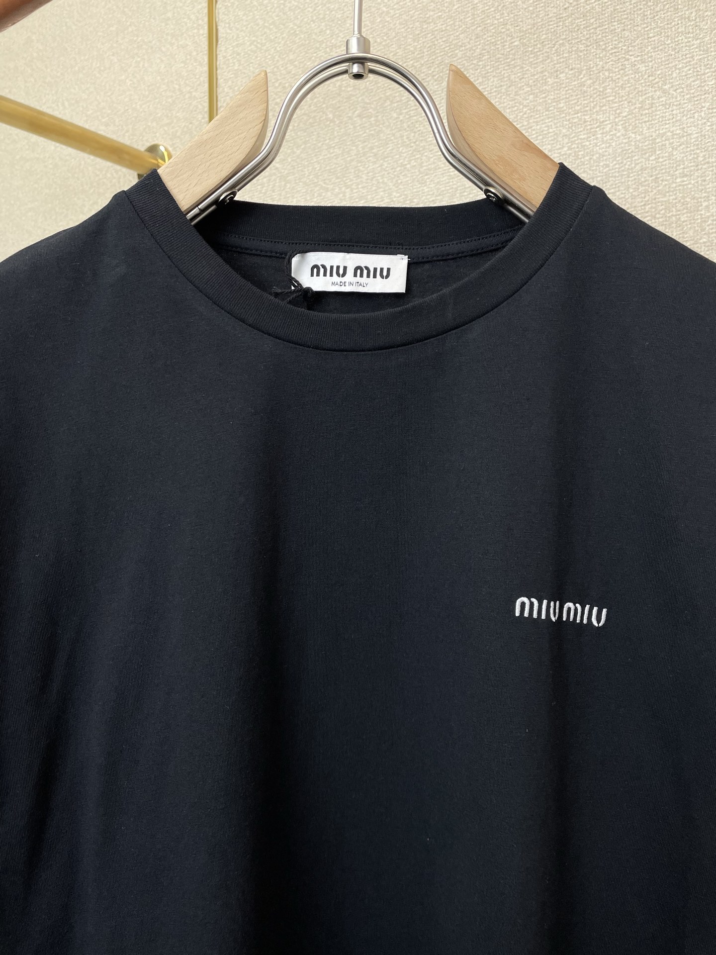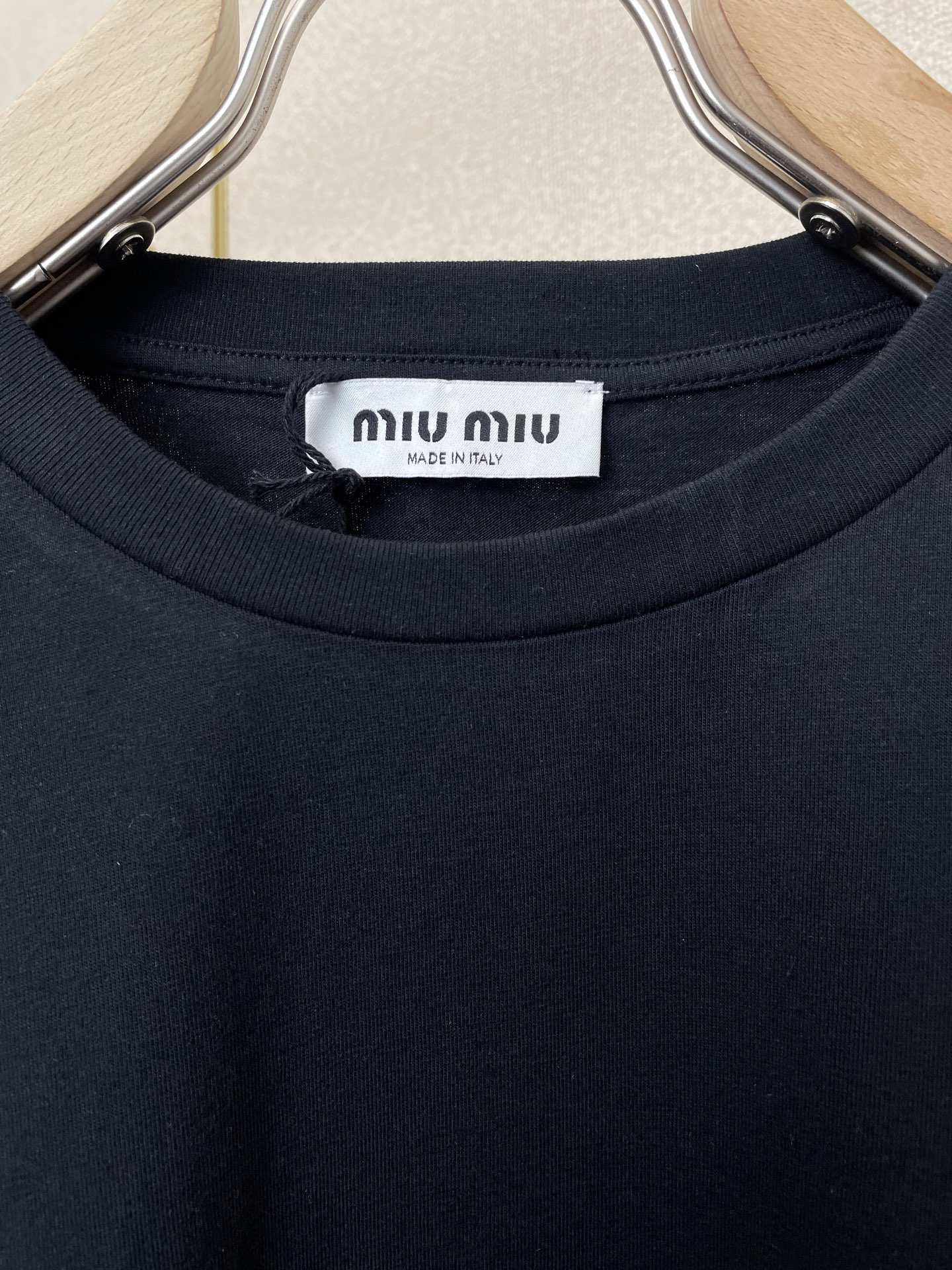 这款衣服是AAAAA 1:1 质量 (非常棒). 使用了和原版一模一样的材料. 商标部分也保持了和缪缪/Miu Miu一样. 图片拍摄是实物衣服拍摄, 您所收到的实物保证和我们图片一模一样.
