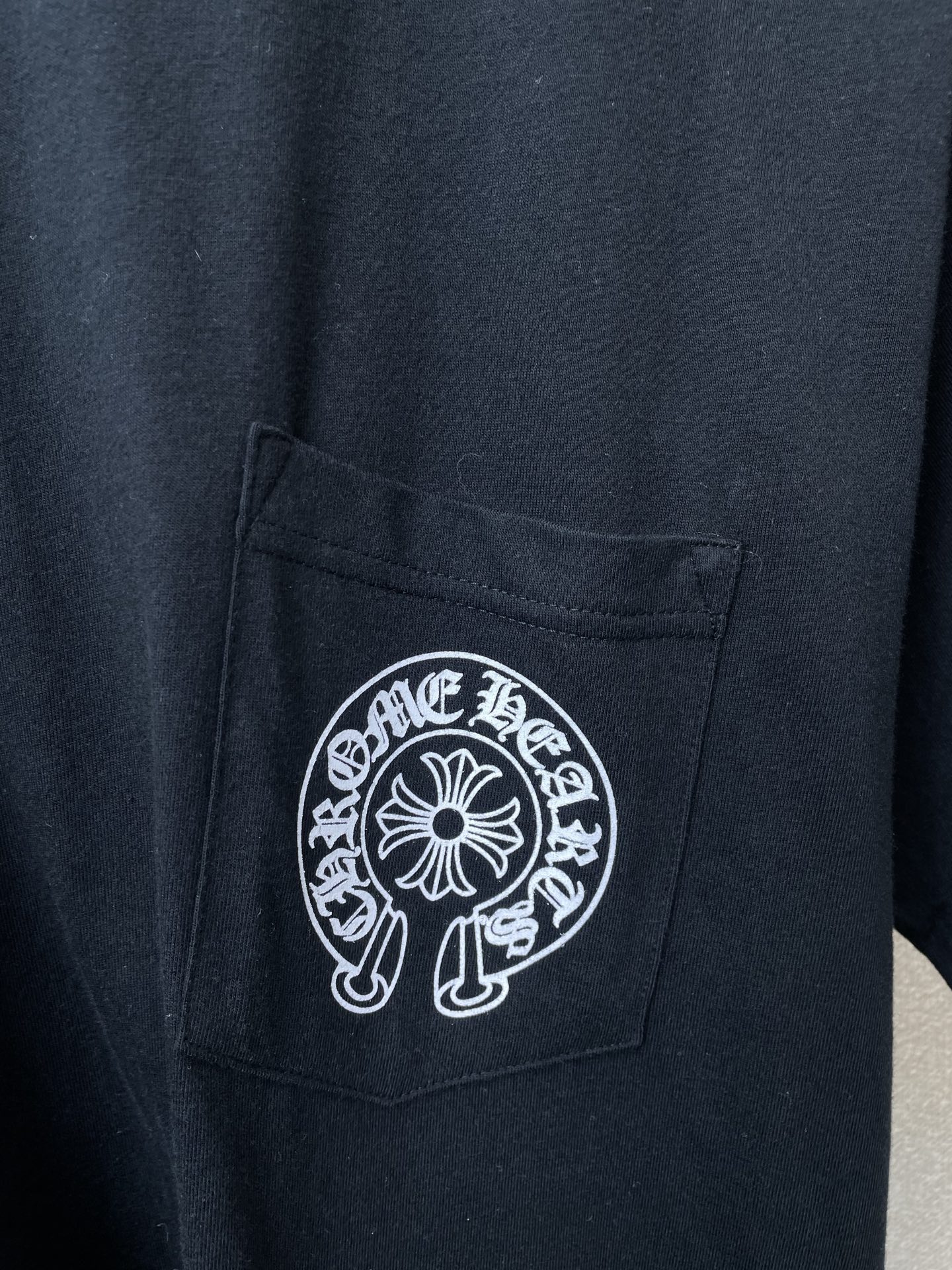 这款衣服是AAAAA 1:1 质量 (非常棒). 使用了和原版一模一样的材料. 商标部分也保持了和克罗心/Chrome Hearts一样. 图片拍摄是实物衣服拍摄, 您所收到的实物保证和我们图片一模一样.