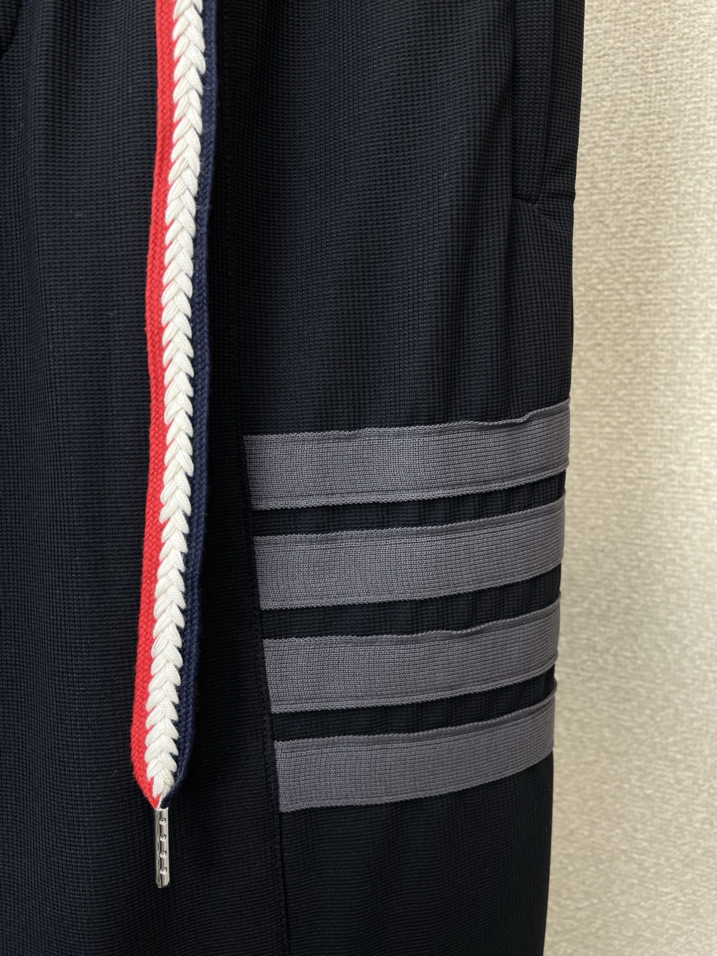 这款衣服是AAAAA 1:1 质量 (非常棒). 使用了和原版一模一样的材料. 商标部分也保持了和汤姆布朗/Thom Browne一样. 图片拍摄是实物衣服拍摄, 您所收到的实物保证和我们图片一模一样.