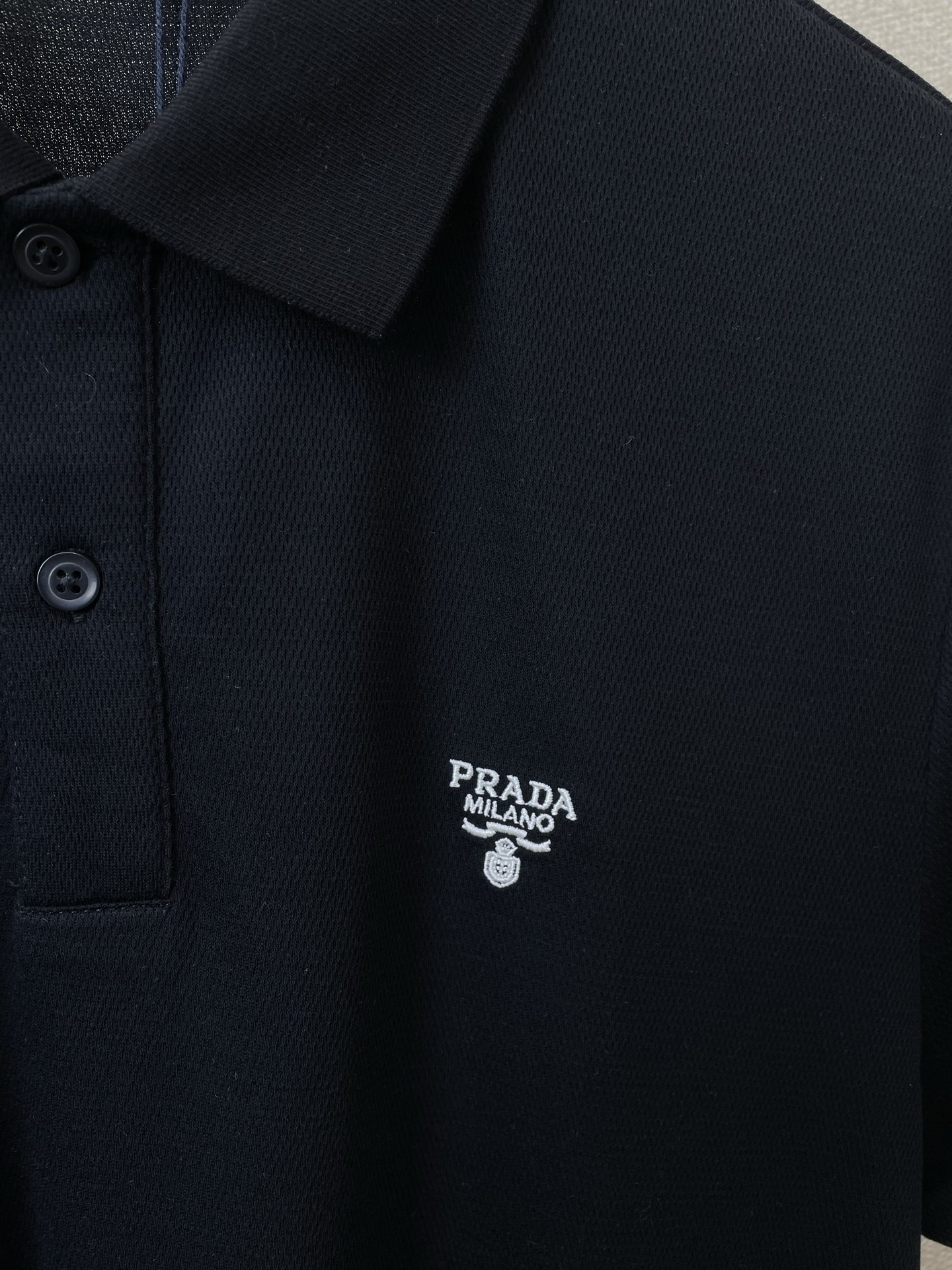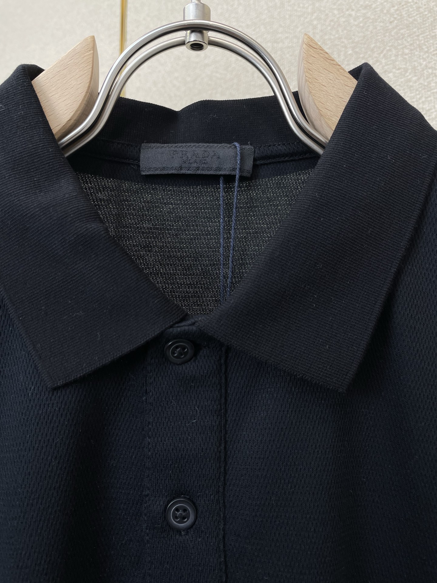 这款衣服是AAAAA 1:1 质量 (非常棒). 使用了和原版一模一样的材料. 商标部分也保持了和普拉达/Prada一样. 图片拍摄是实物衣服拍摄, 您所收到的实物保证和我们图片一模一样.